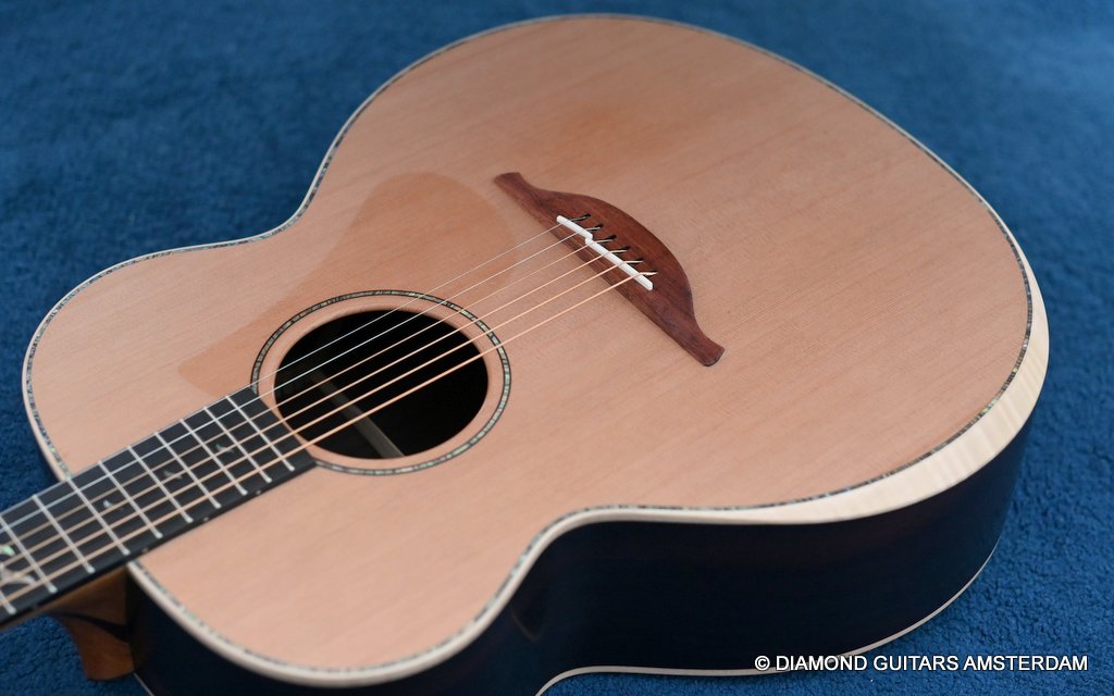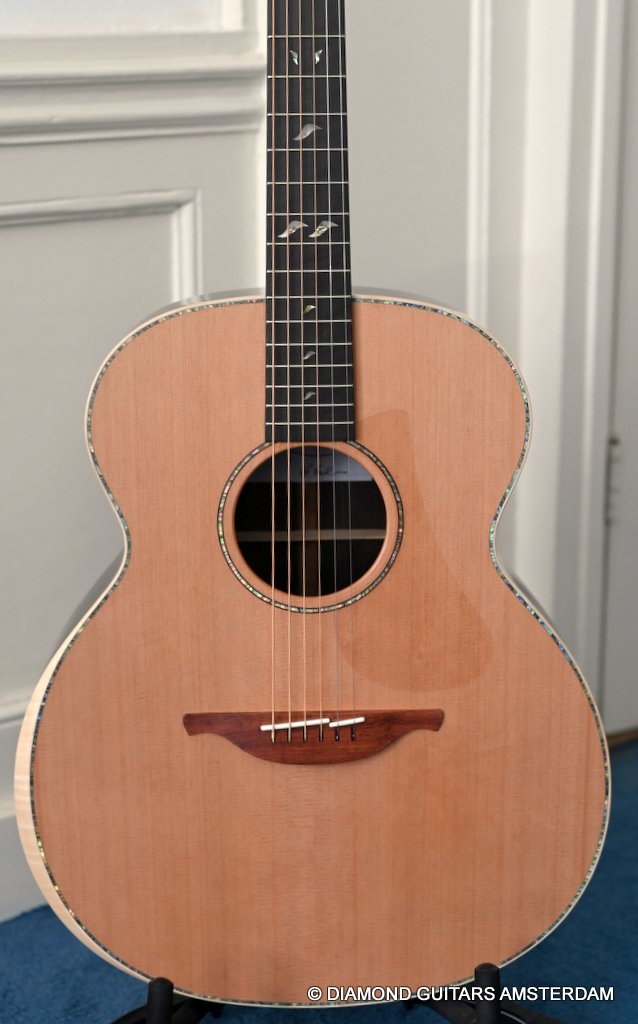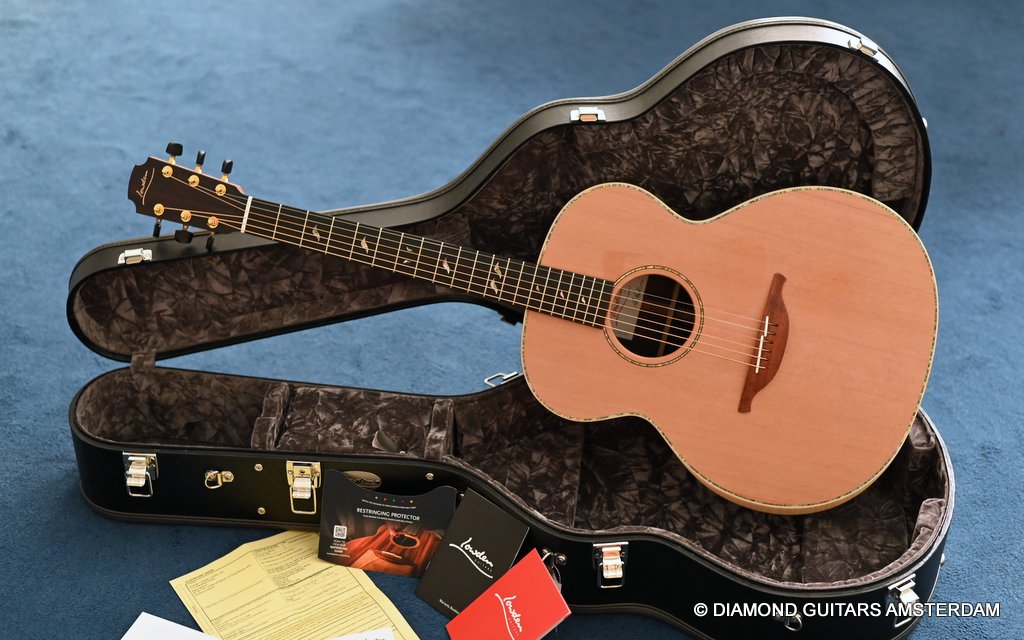 Stunning Lowden O38 Brazilian Rosewood – Red Cedar! This big gun is George Lowden’s original design for his good friend Alistair Burke back in 1976. The O-model is also Jan Akkerman’s and Eric Clapton’s favorite acoustic. She is just awesome.