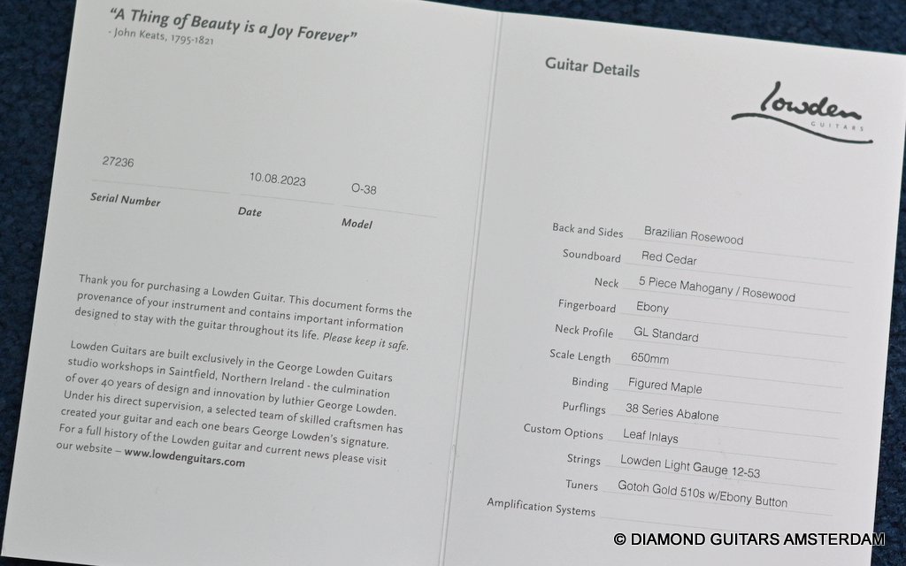 - Lowden Limited lifetime warranty