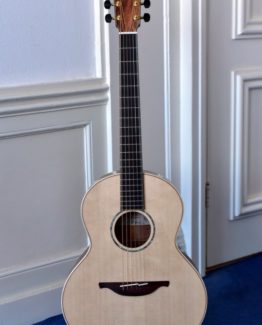 For this Lowden O38 George added a subtle use of leaf shaped Abalone fingerboard inlays and soundboard purfling combine with the ideal choice of CITES certified reclaimed Brazilian Rosewood and a Dark Cedar top. One of his preferred choices now! Nothing we can add to this. Well…except…a flamed Maple bevel! This masterfully crafted option let you play this big size guitar for hours without a problem, even if you are a little bit smaller in body size! Check out the YouTube vid where George Lowden talks about this amazing instrument and Stephen Mchale play one similar to our wonderful O38x.