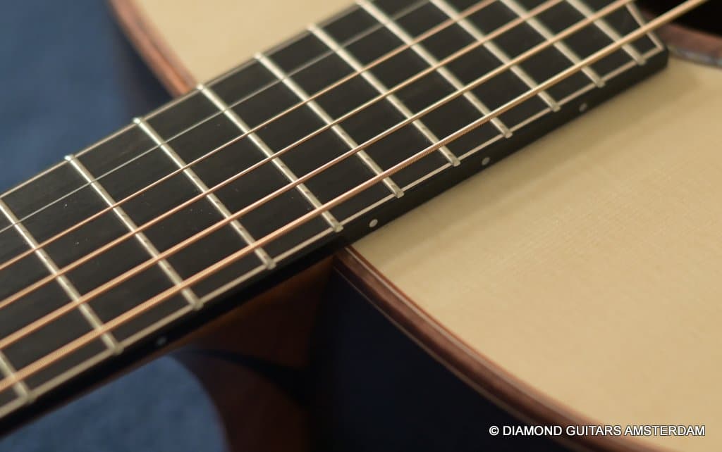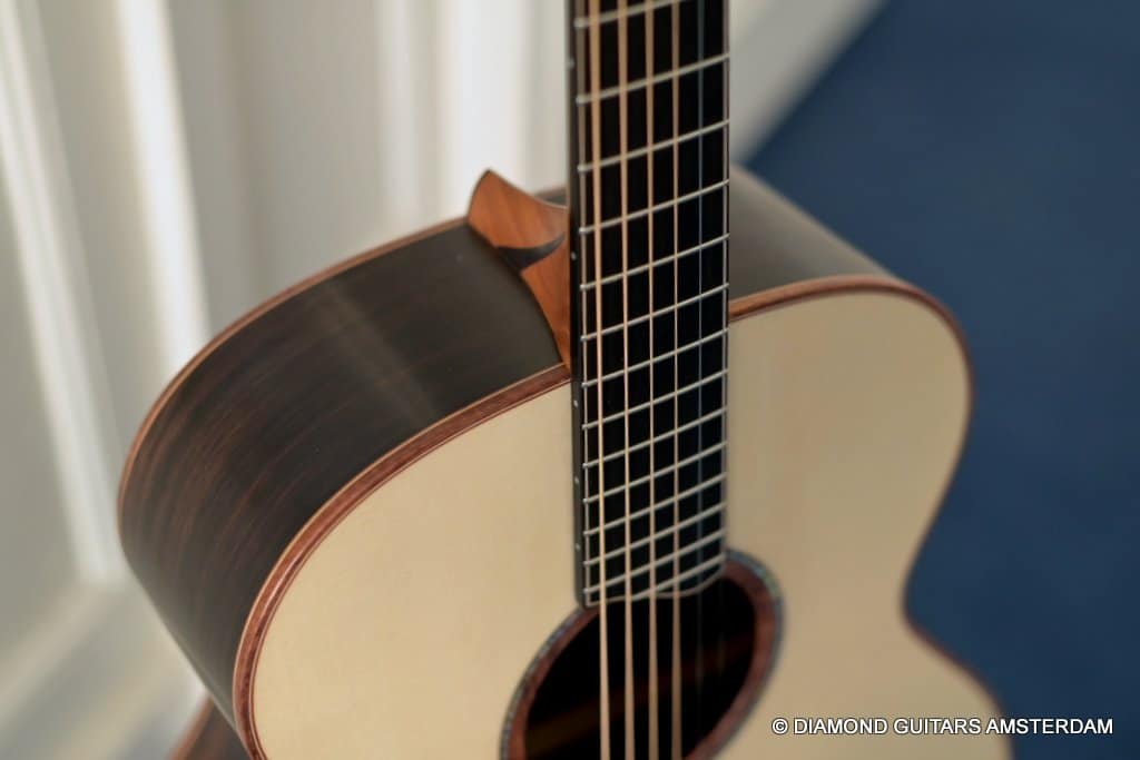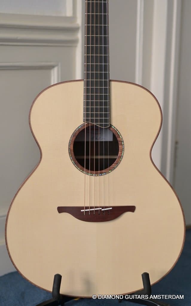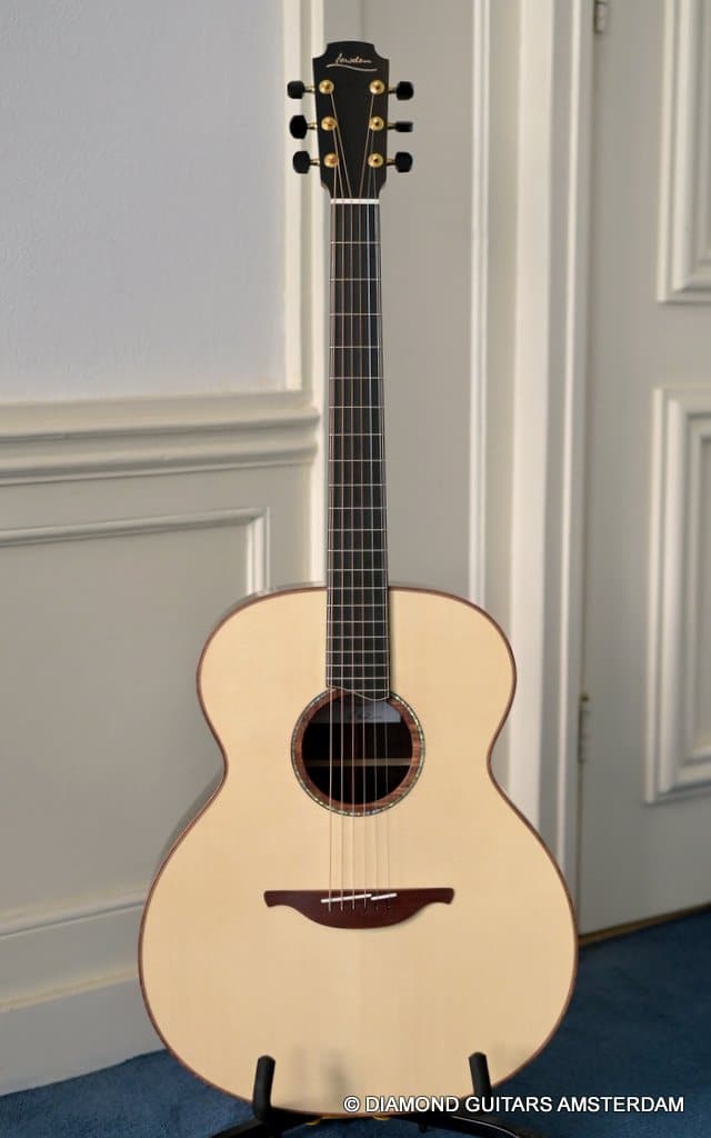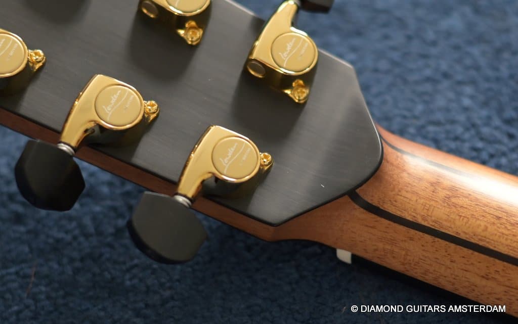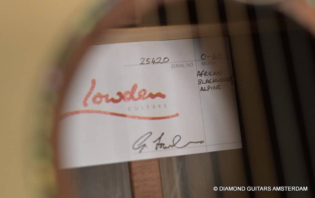 This Lowden O50 is a tone machine pus sang and a fingerstyle player’s dream. Build with beautiful African Blackwood and mastergrade Italian Alpine Spruce this 50 series Lowden is one of the best out there. The AAAAA Italian Alpine Spruce comes from very slow growing old trees and produces a very warm and clear sound. Combined with African Blackwood one get a wonderful articulation and crystal clear defined notes with massive sustain and those fabulous overtones that only Italian Alpine Spruce produces. Check out George’s story on Alpine Spruce HERE.