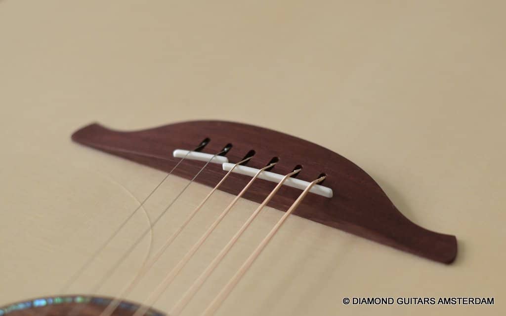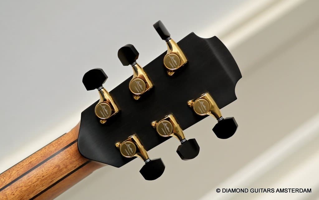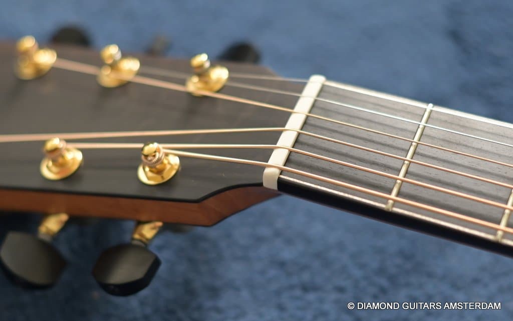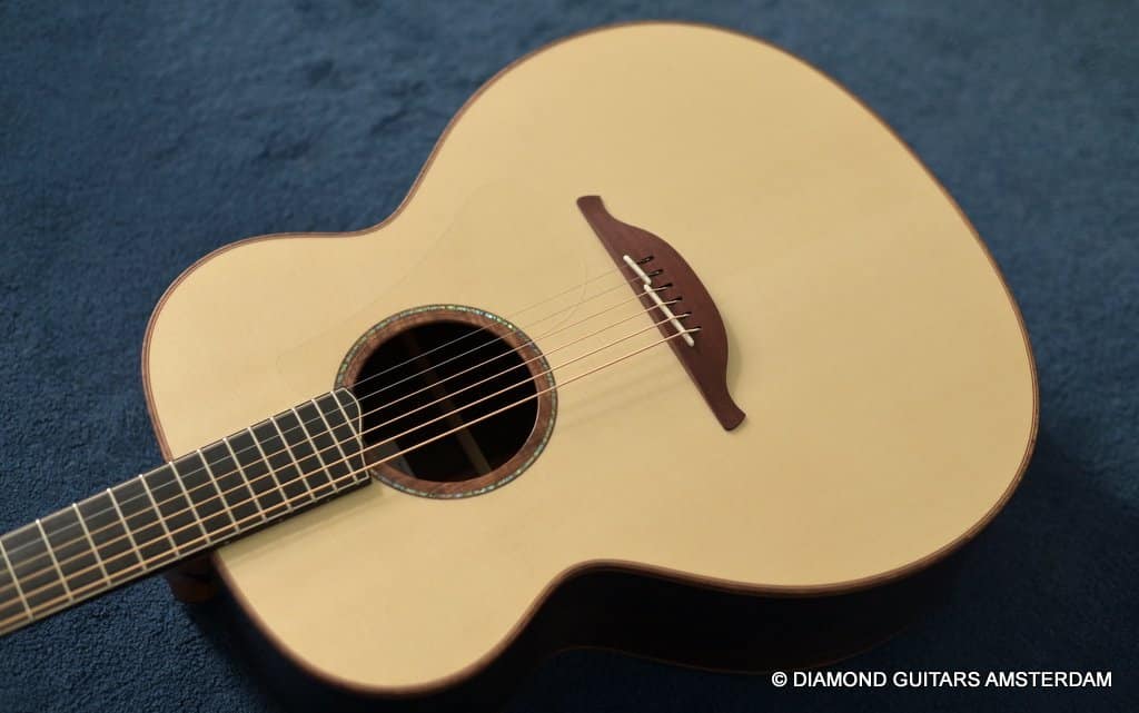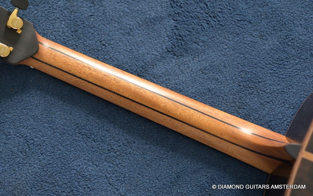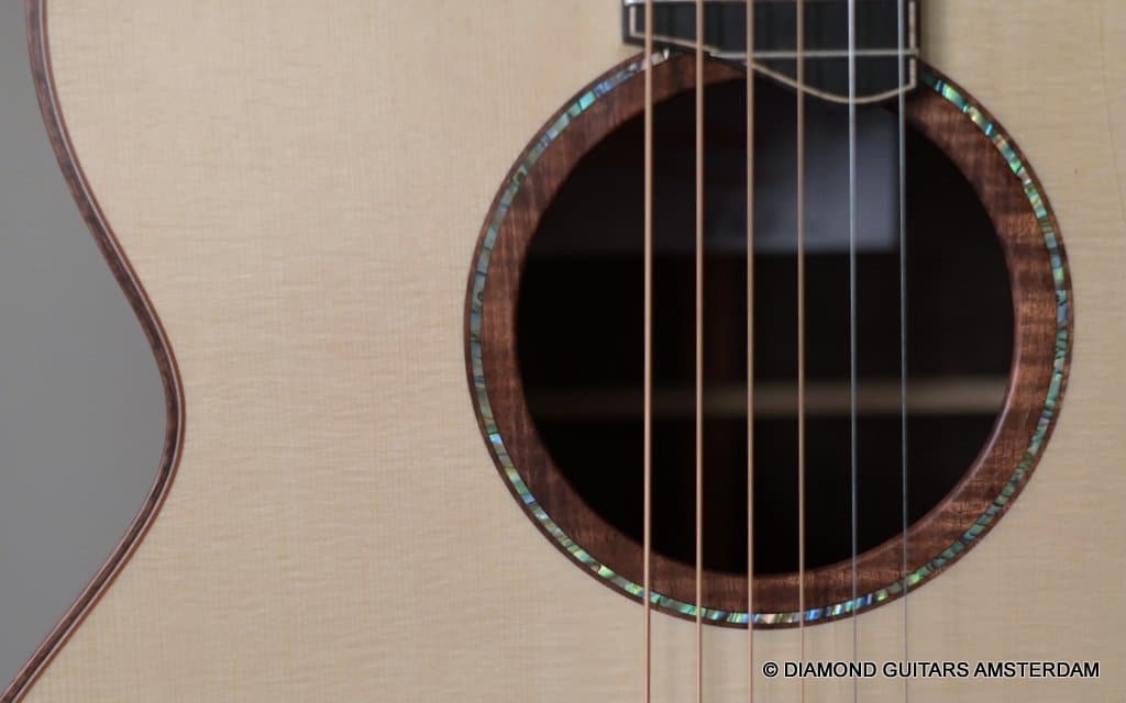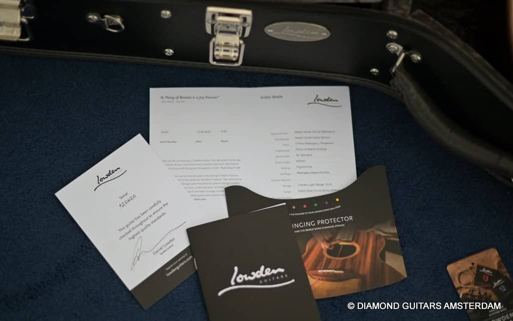 This Lowden O50 is a tone machine pus sang and a fingerstyle player’s dream. Build with beautiful African Blackwood and mastergrade Italian Alpine Spruce this 50 series Lowden is one of the best out there. The AAAAA Italian Alpine Spruce comes from very slow growing old trees and produces a very warm and clear sound. Combined with African Blackwood one get a wonderful articulation and crystal clear defined notes with massive sustain and those fabulous overtones that only Italian Alpine Spruce produces. Check out George’s story on Alpine Spruce HERE.