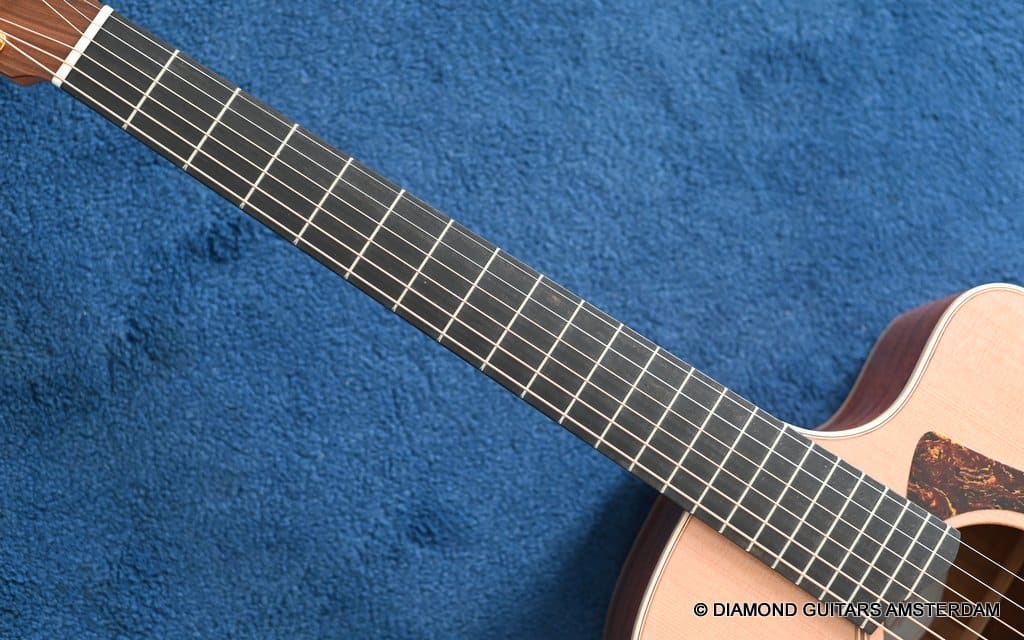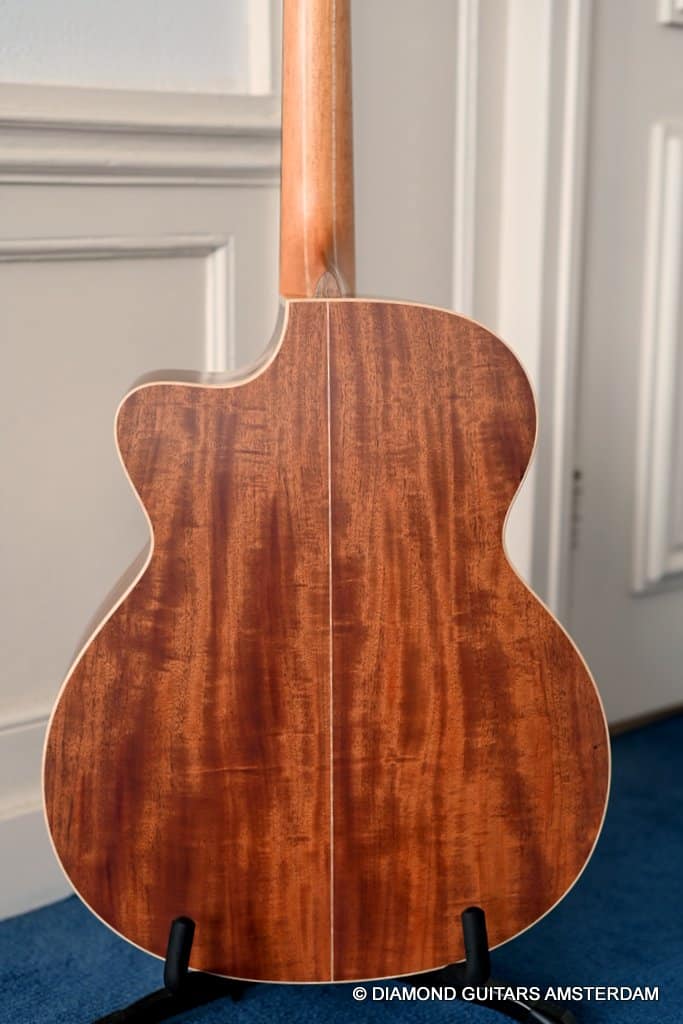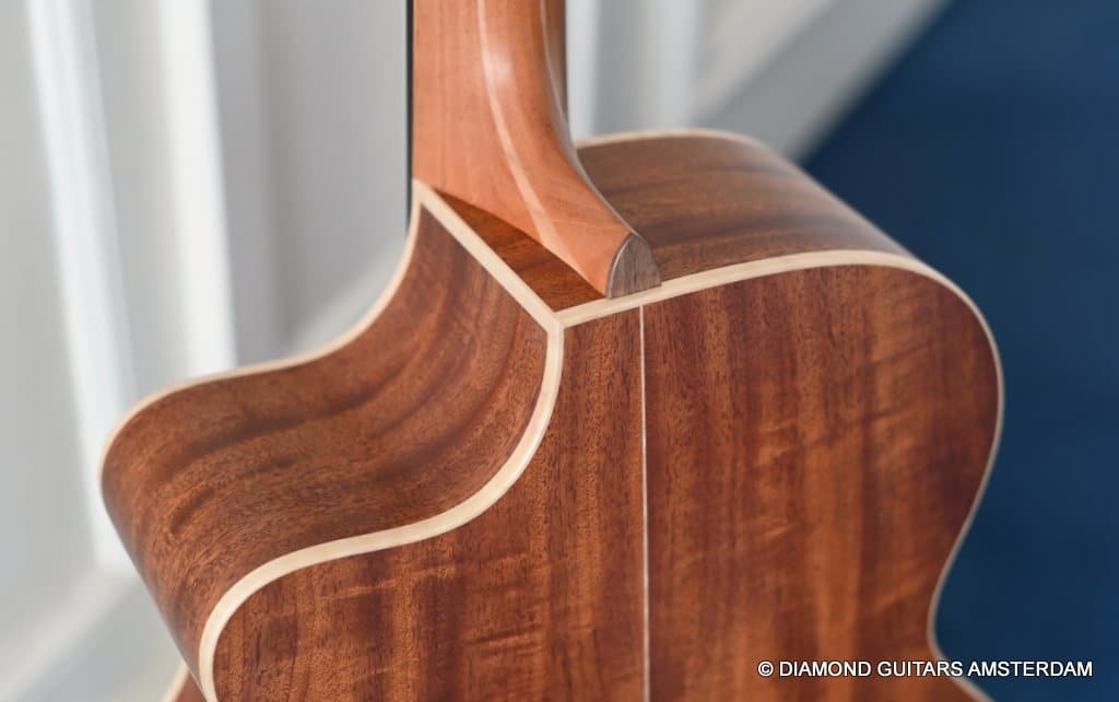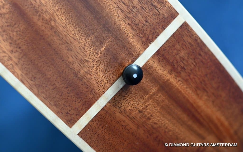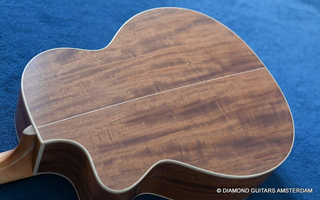 For the back and sides of this Lowden Pierre Bensusan Old Lady ancient Cuban Mahogany is used. This exquisite tonewood was used in all Mahogany pre-war guitars. But also in the lumber for building houses. Due to over-harvesting it was nearly extinct. George managed to get his hands on 18th and 19th century panels of Cuban Mahogany used for cabinetry. This brilliant tonewood produces more Rosewood-like sound qualities, with a more developed mid-range and low end. But it doesn’t have the Rosewood reverb and darkness. As a premium tonewood, Cuban Mahogany exhibits a perfect balanced tone. Cuban Mahogany adds warmth and mellowness to the tone, with pronounced lower mids, appealing high-ends, and superb sustain.
