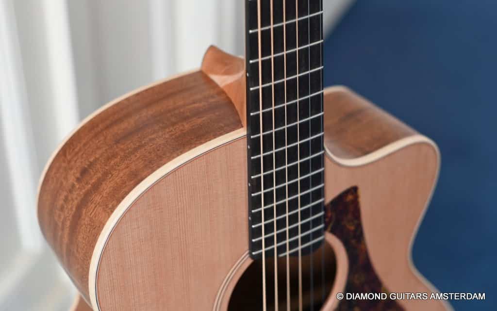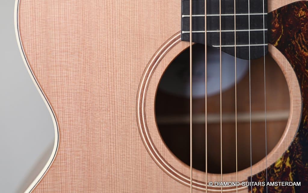 On top of that this O-size Lady offers huge volume and massive sustain. She’s also a lightweight with only 1.98 kg / 4.37 lbs. On top of that of course excellent craftsmanship! George and his team really know how to build great guitars. Play her and you know what I mean. She has a strong, warm, and brilliant sound which evolves like a carpet, being especially perfect for folk, country flat picking and strumming. The cutaway provides comfortable use of the higher frets.
