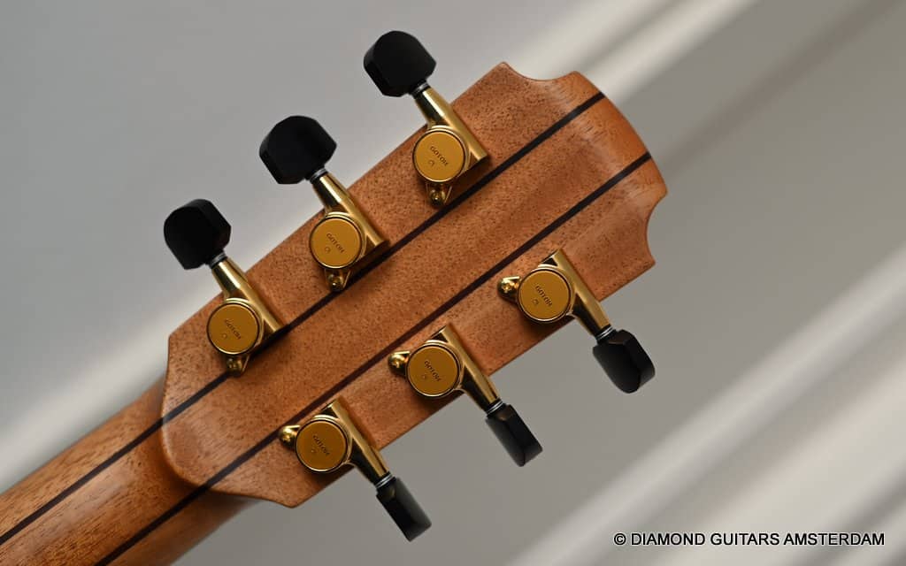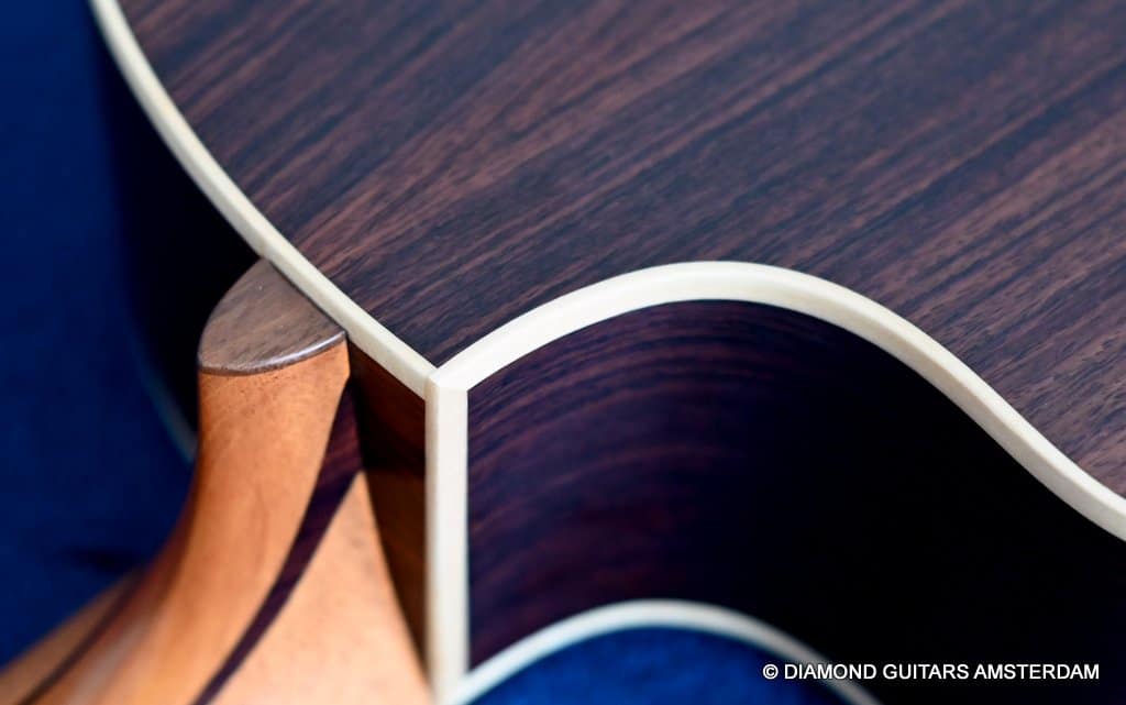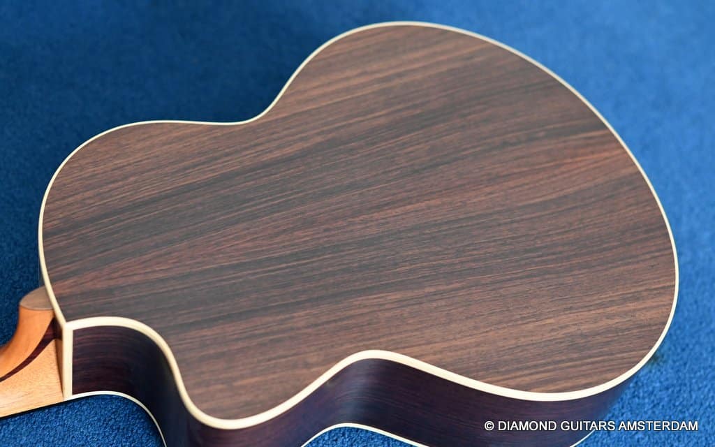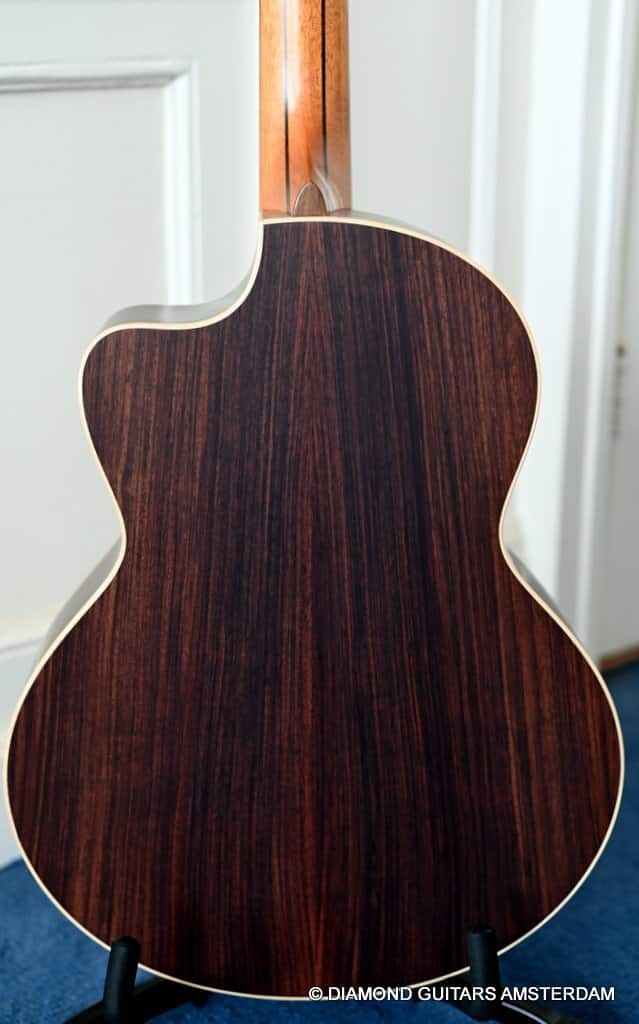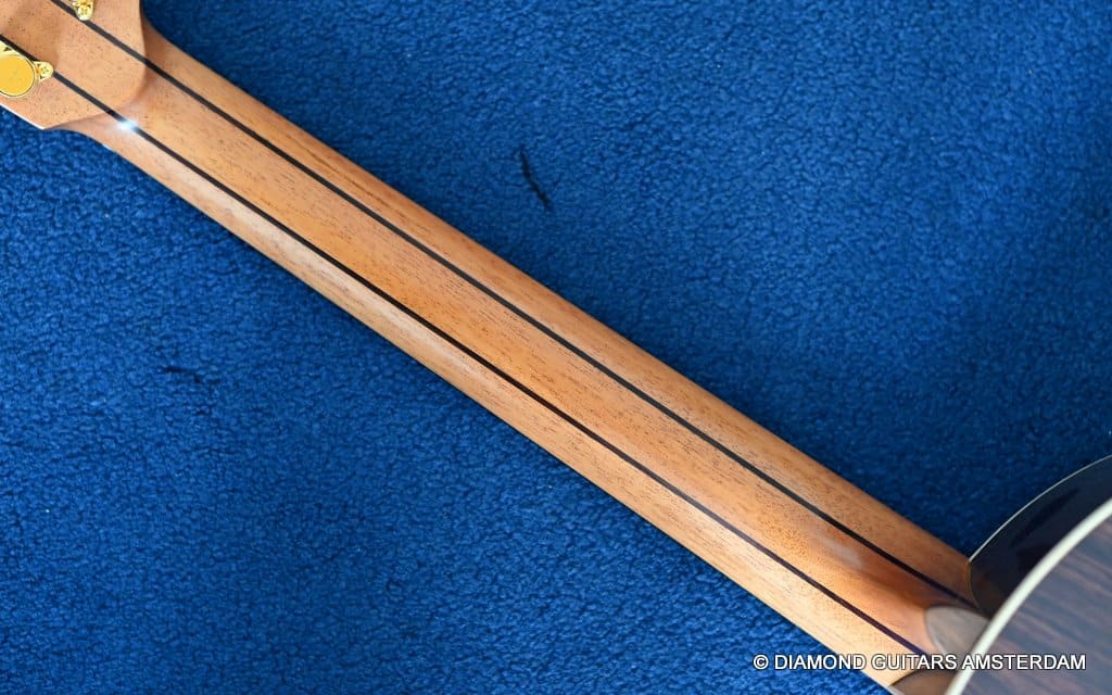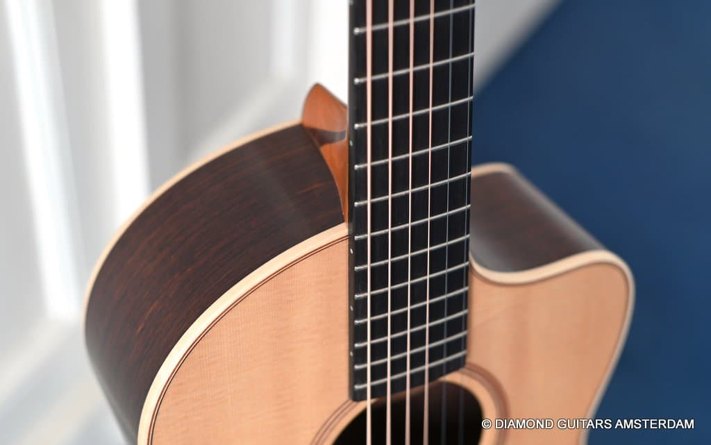 A Lowden S32c has her own distinctive voice and are definitely a class in their own next to the old Martins and Gibson’s. Clarity, sustain, articulation and definition are all what you will find in a Lowden Guitar. This Lowden S32c has a gorgeous Sitka Spruce top with a nicely figured Indian Rosewood back and sides. The Lowden team also added a cutaway for easy access to the superb sounding upper regions of the fretboard. A great small body, short scale guitar that offers surprising power and projection in a guitar that’s a joy to hold en easy to play.
