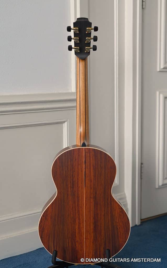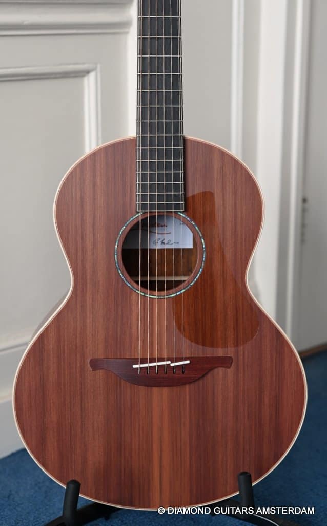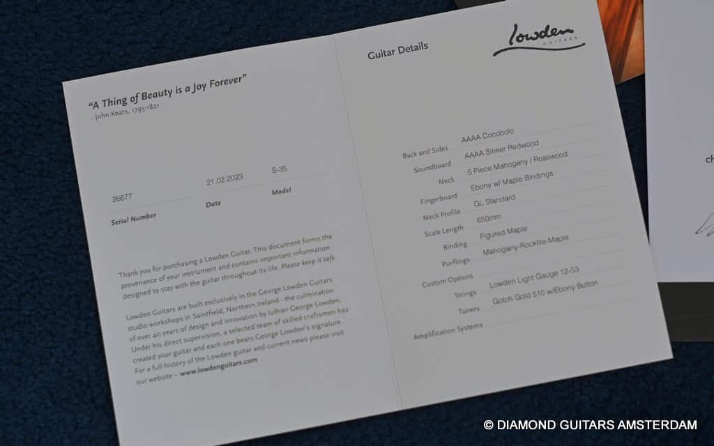 This Lowden S35 CO/SRW guitar is another perfect example of how much love and care goes into every Lowden. The Sinker Redwood top is absolutely fantastic, and the Cocobolo quality is fabulous. Straight-grained with no knots at all. The Lowden S35 is the ultimate small-bodied guitar, bringing out the mid-range punch as well as a great response and feel. Despite the compact body size, there is no sacrifice in tone, clarity or projection. And that sustain! Incredible!!.
