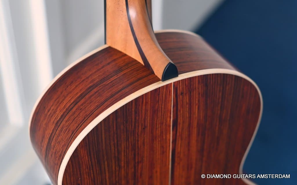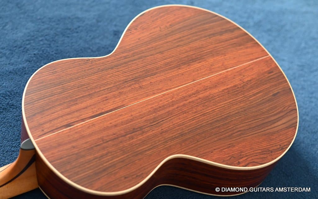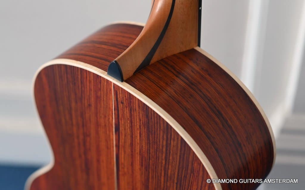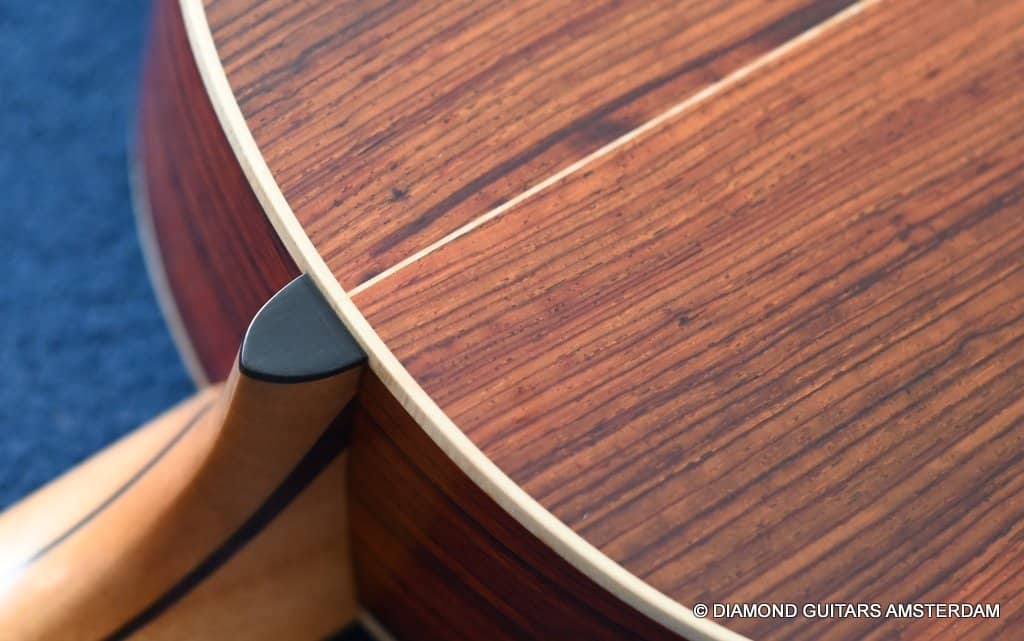 Redwood is a superb tonewood. It projects thoroughly and offers a bright tone with rich overtones in the mid/upper-midrange and a resonant bass response. Sinker Redwood is sonically more dynamic, sensitive and expressive than its non-Sinker equivalent. Notes bloom faster, harmonics are more pronounced, and it often has a brighter, chimier high-end. Cocobolo, or Dalbergia Retusa, has been used in guitar building since the late 60-ties, and there is a good reason for that. Cocobolo is related to the widely used Indian Rosewood and offers many of the same qualities, such as beautiful, clear highs and deep lows and combines that with the delicious, natural reverb. Cocobolo does all of the above and adds pronunciation and power.