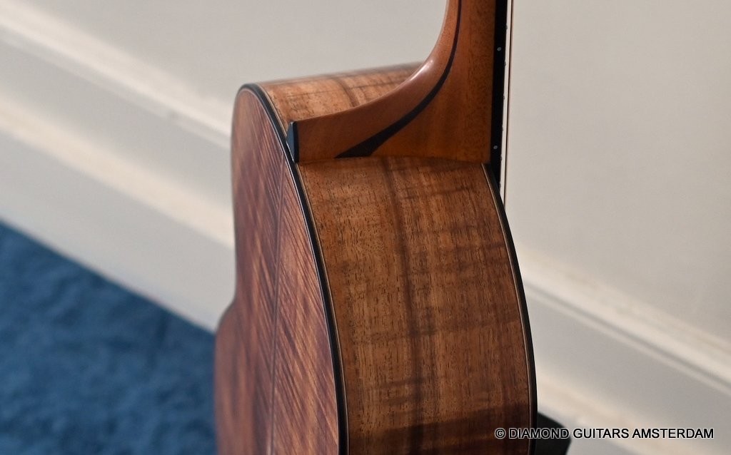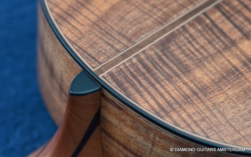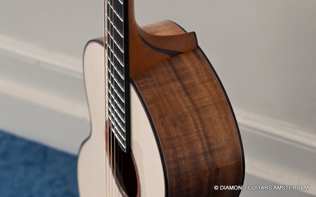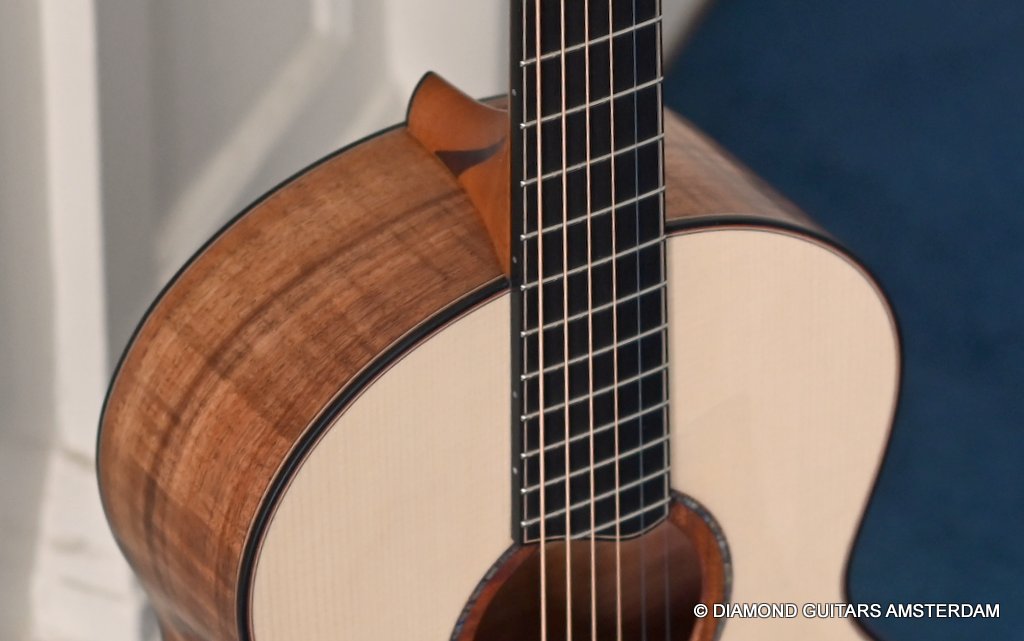 The S-body shape provides perhaps a more intimate Lowden experience and has a slightly shorter 630 mm scale. Thus, the string tension is slightly lower, which allows for even easier playing (vibrato). The Lowden 12-fret design doesn’t change the scale, but the bridge has been relocated. The soundbox is uniquely voiced to create a guitar that offers sweetness, depth, rounded trebles, impressive projection and a natural tonal balance that lends itself equally well to strumming and fingerpicking. Without sounding in any way lacking in vibrancy or dynamics, there’s an easygoing softness and warmth to this guitar that draws you right in. Due to its size, it is an especially great instrument to play while sitting on the couch or playing for a longer time. This guitar will deliver you a lifetime of pleasure, and over the years the tones will even grow in complexity. This superbly build instrument is more individual than any other compact instrument and on top of that the handpicked her looks are just awesome. Listen to a sound impression here: