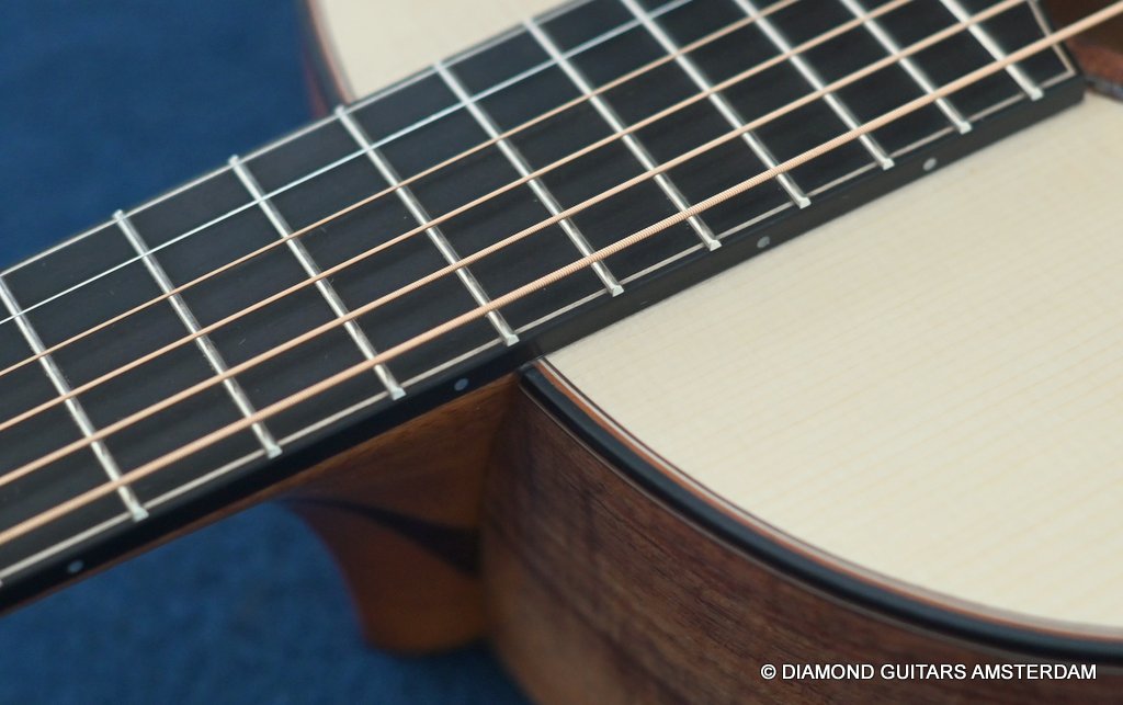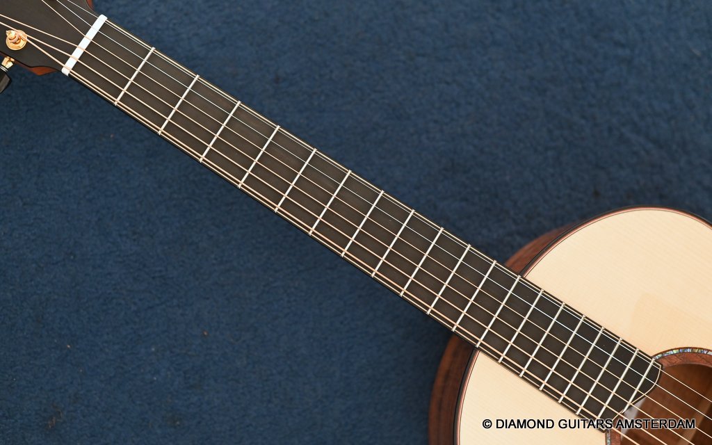 The Lowden S50 12-fret Tasmanian Blackwood – Alpine Spruce delivers bass, mids and highs big time considering the small body. No, it does not have the volume of an O or an F-model. But man, this is very good sounding guitar. Strumming, flatpicking, fingerpicking or tapping. She does it all. Tasmanian Blackwood’s tone profile resembles that of Koa in general and Mahogany in its midrange focus. Dry, clear yet also warm — with an added splash of top-end shimmer and richness found in Rosewood. Alpine Spruce dominates the magic of this compact body that is comfortable both sitting down and standing up. This tonewood is unanimously considered the best wood for the soundboards of acoustic instruments.