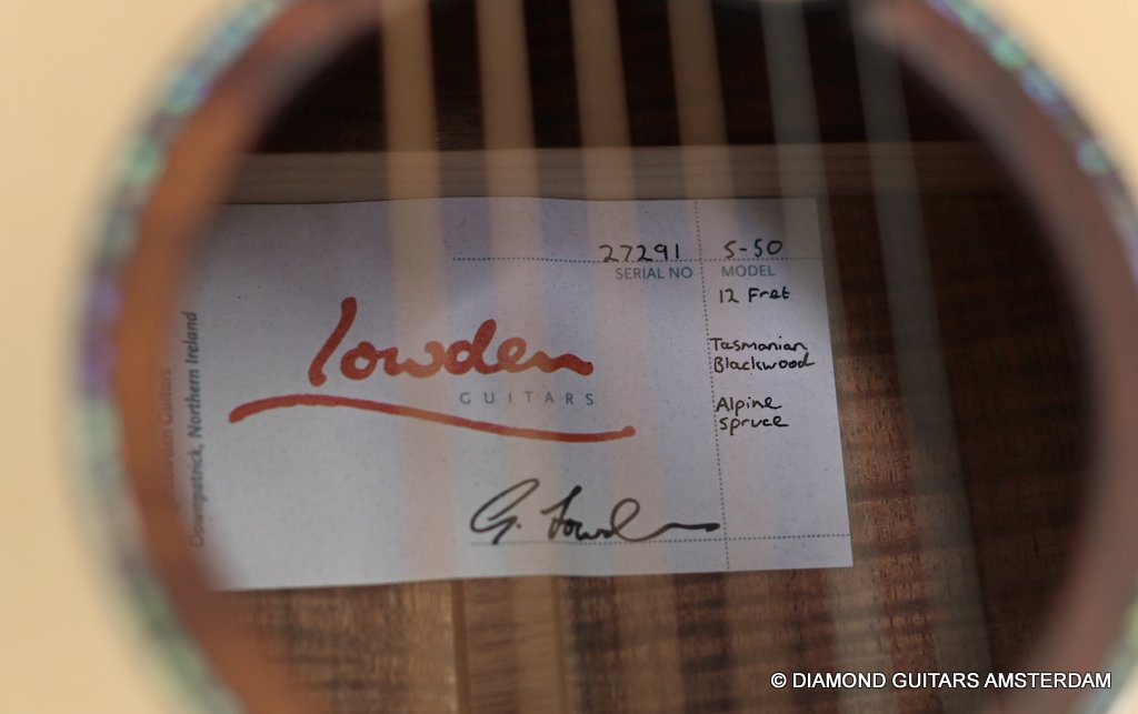Absolutely brilliant, this awesome Lowden S50 12-fret Tasmanian Blackwood – Alpine Spruce! Clear, open sound with a huge dynamic range. This combination of tonewoods is unbelievably good for this small body Lowden!