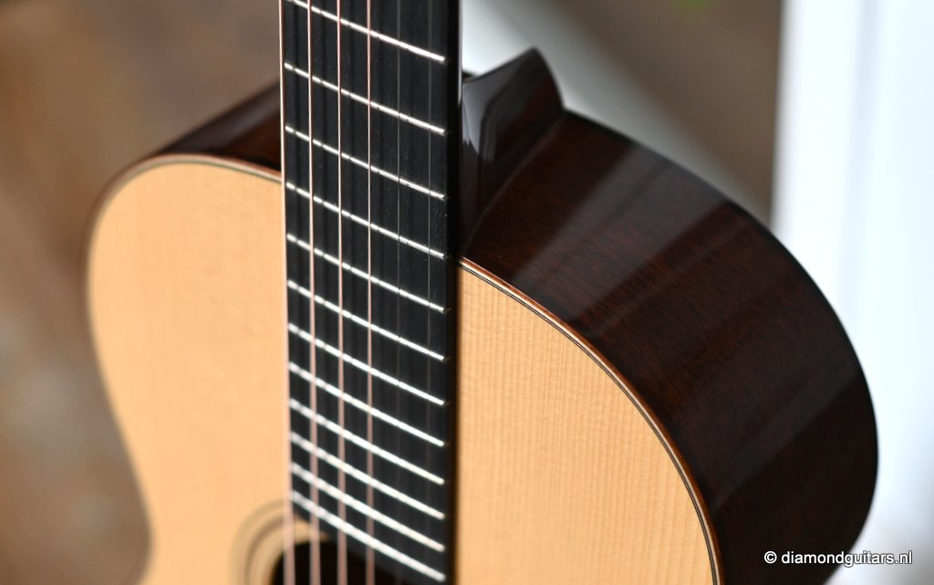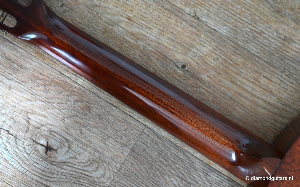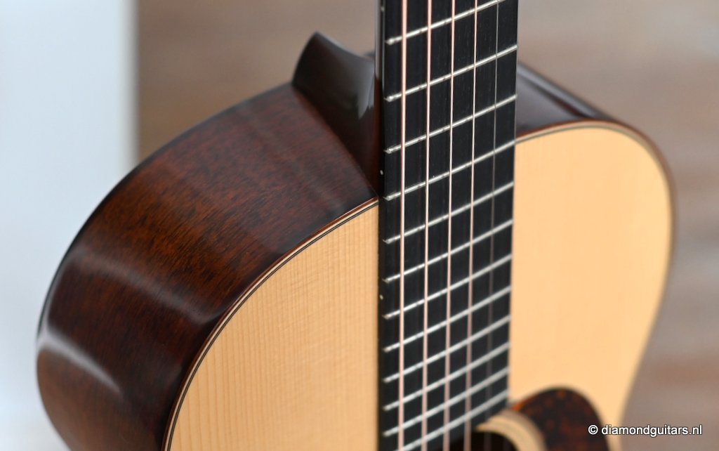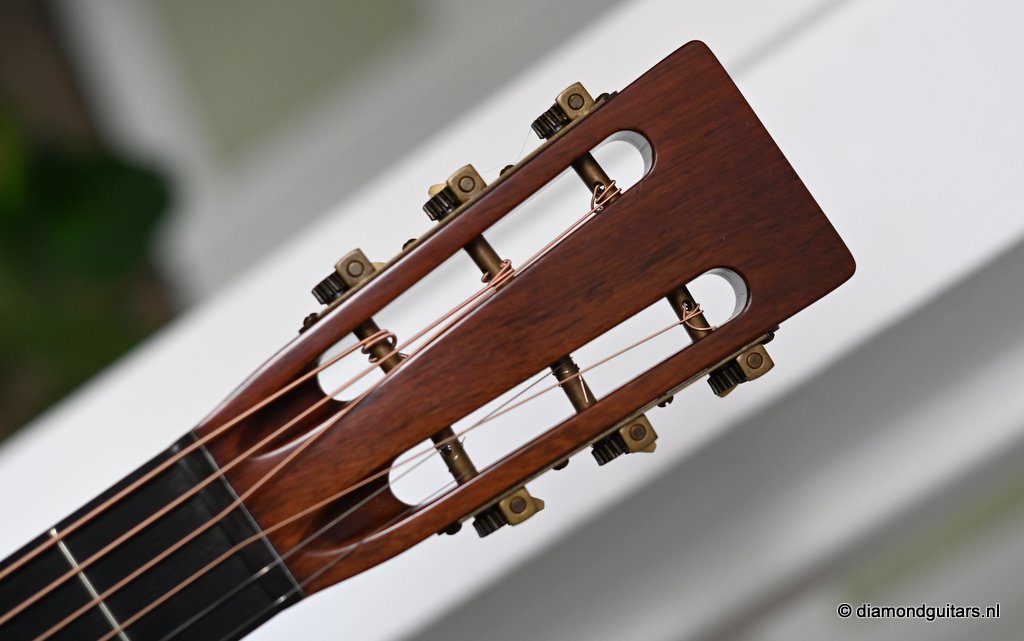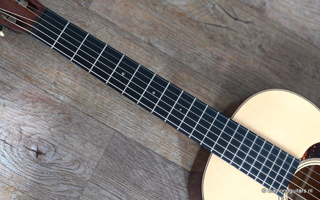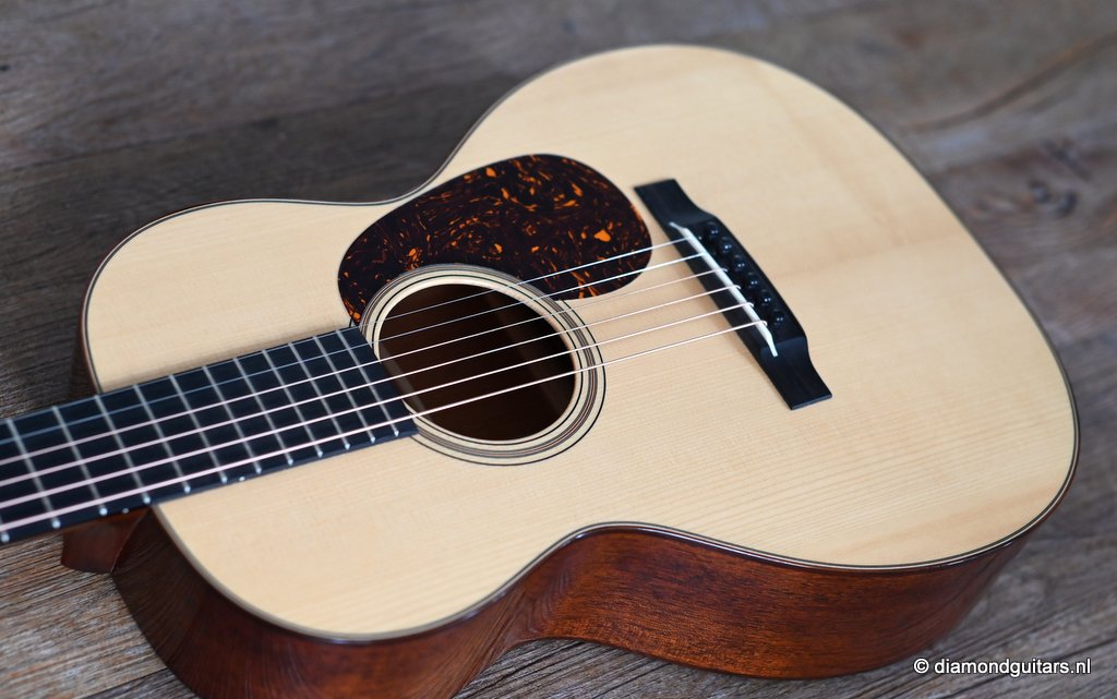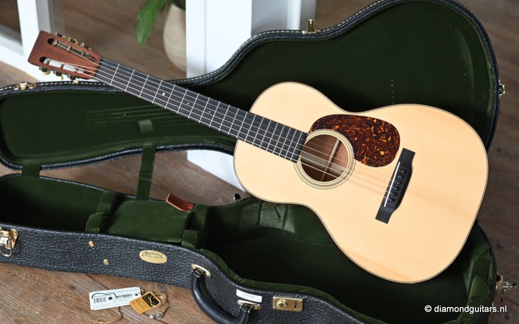Martin built the 00-18 Authentic 1931 in a period-correct fashion, using hide glue, and painstakingly replicated all of the details on the original instrument, from the ebony nut to the rosewood binding to a 1930s-style hang tag. The 00-18’s neck has a subtly V shaped profile whose moderate girth should appeal to a wide range of players. The nut is relatively wide at 1-7/8 inches, and though I tend to prefer narrower nuts, it somehow doesn’t feel all that wide. It’s just as easy to play barre chords and even thumb-fretted shapes on the 00-18 as it is on a guitar with a 1-7/8″ – 47,6 mm nut. The combination of a short scale”(24.9″ – 632 mm) and generous string spacing (2 3/8″ – 60 mm) feels terrific on both hands. And with only 169 guitars built this is a rare and collectable sweetheart too.Her condtion is near MINT. Listen to the sound impression here: