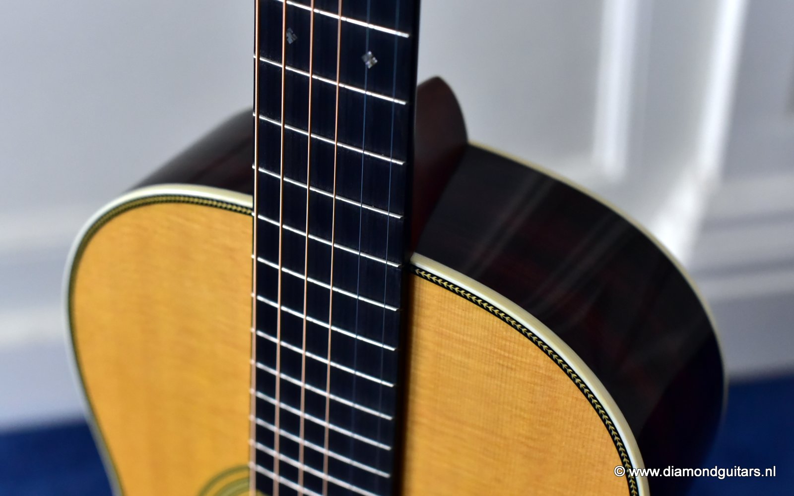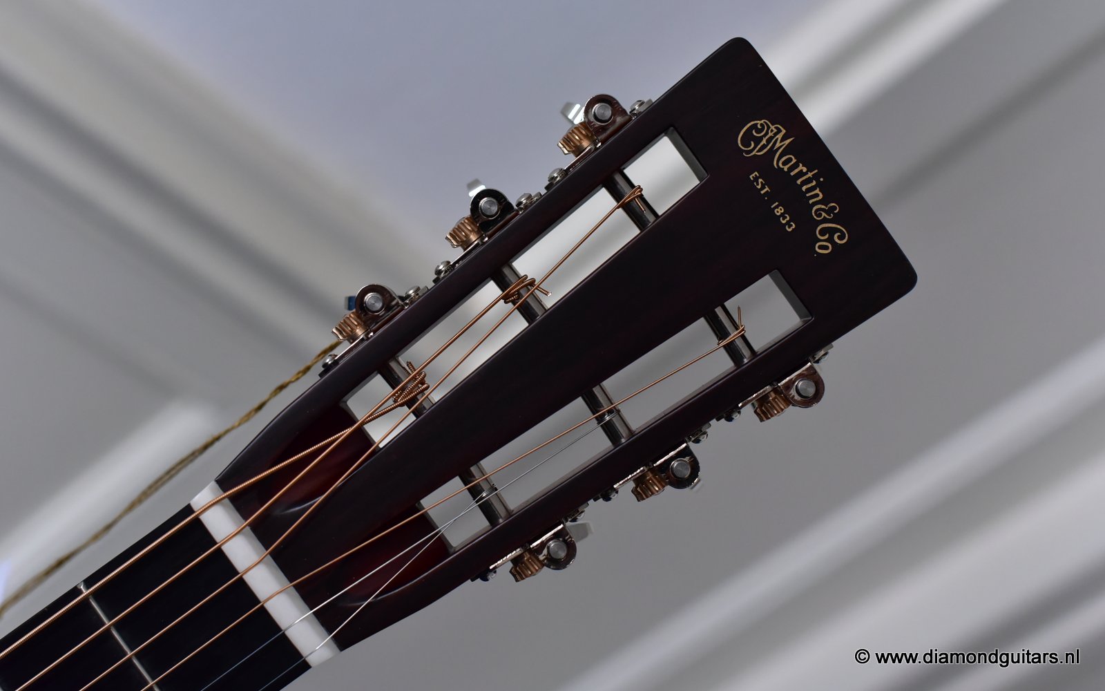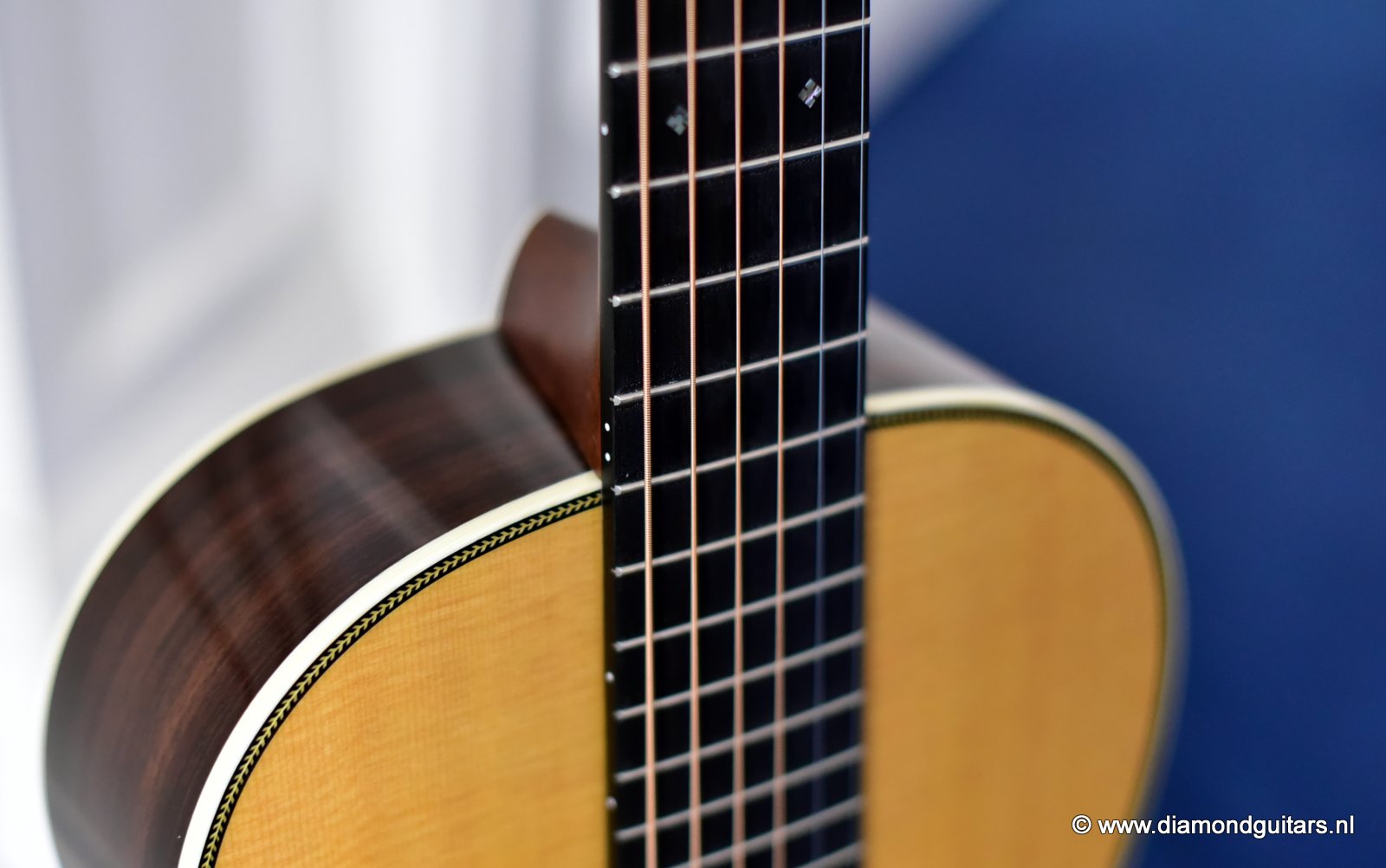 A Martin 00-28VS Vintage Series guitar gives guitarists the opportunity to experience the sound and feel of Martin’s most sought after vintage instruments without breaking the bank. Simply playing this sweet tone machine will benefit your playing in ways you could never imagine. This guitar has a standard short scale neck (632,5mm nut to saddle), a 47,6mm nut width and a 58,75mm string spacing at the bridge. She has herringbone top border, three concentric rings around the soundhole; a rectangular ebony bridge with twin pyramids, and crème color bridge pins with black dots with a matching end pin. She also has grained ivoroid side binding, crème and ebony back purfling and a zipper wooden backstripe. Her heel cap and end graft are grained ivoroid and there is a diamond carved behind the nut.