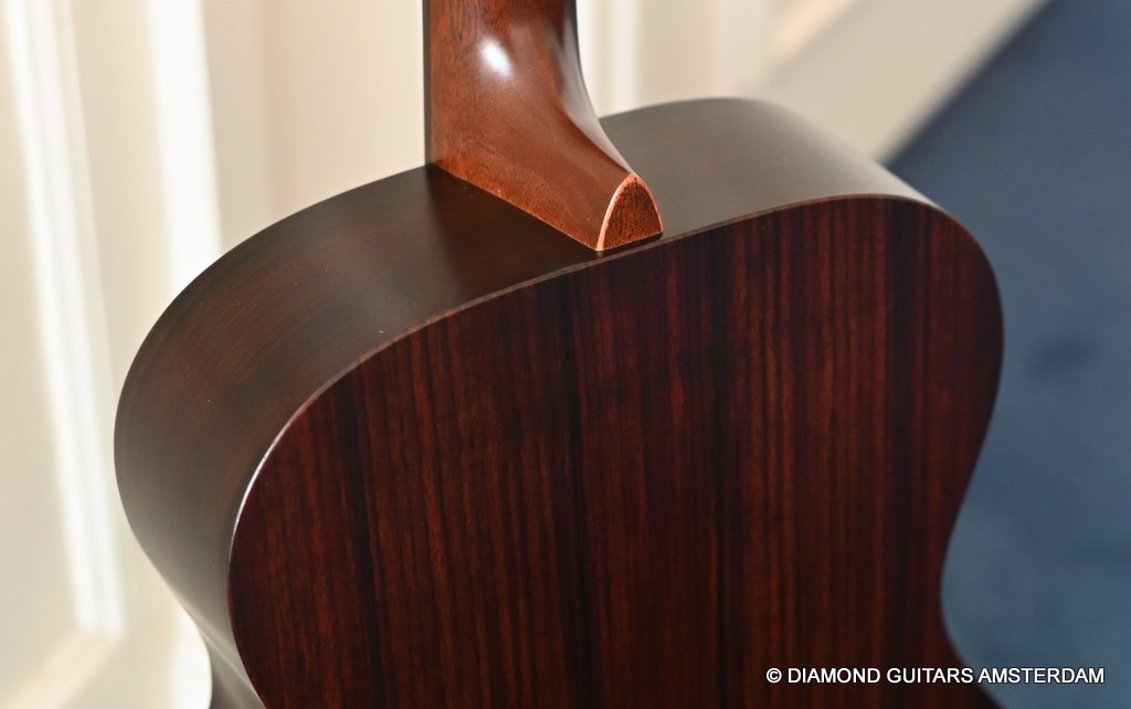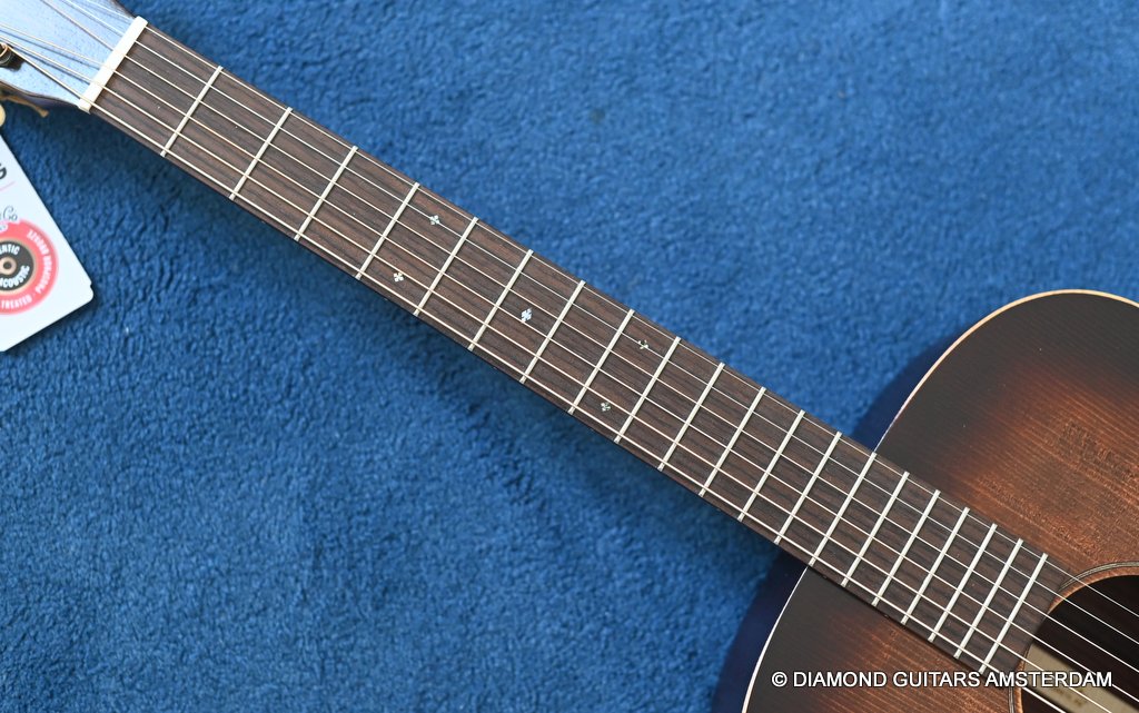 The Adirondack Spruce top offers a big guitar sound for its medium size. Solid bass response and low-end thanks to the Indian Rosewood back and sides, as well as balanced sounding mids and highs. Adirondack spruce tops are known for their ability to produce a large dynamic range, and on the 000-16 StreetMaster, this was definitely the case. The guitar pumps out respectable volume when pushed hard and displays a rich tonality when played softly. Looks and appointments aside, it wouldn’t be a stretch to compare it to a 000-28, and while I didn’t have one on hand to play side-by-side, I’ve played enough 000-28s to say that this StreetMaster compares favorably. She’s in near MINT condition. Check out the Peghead Nation review and sound impression HERE.