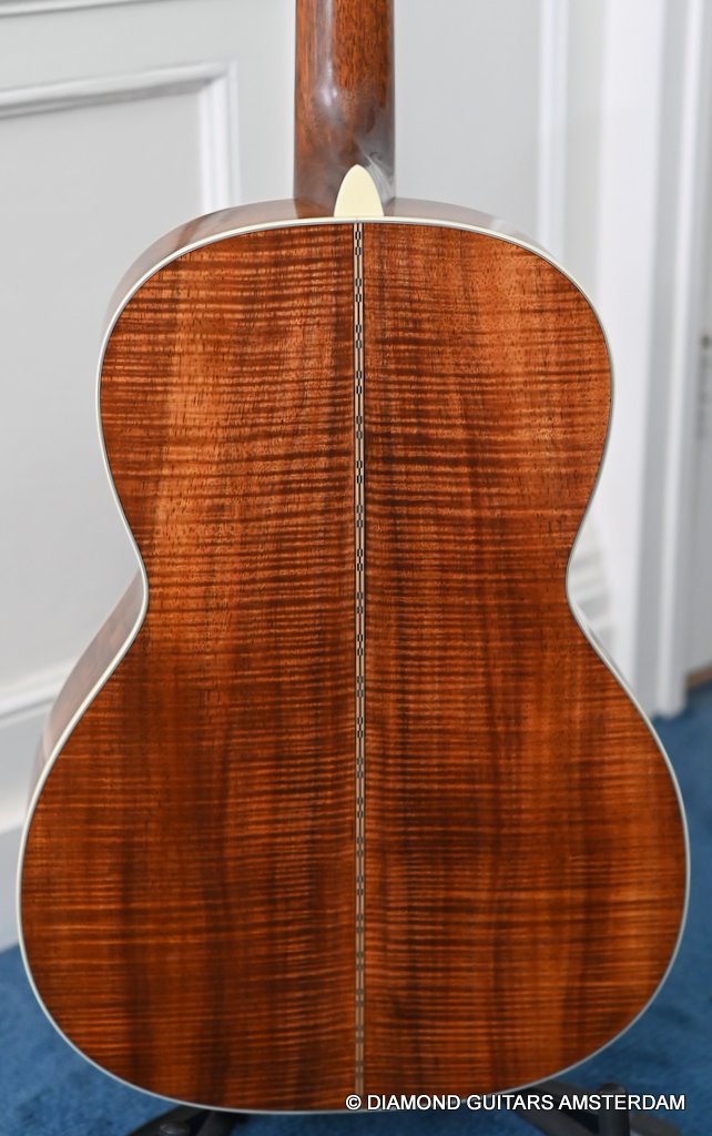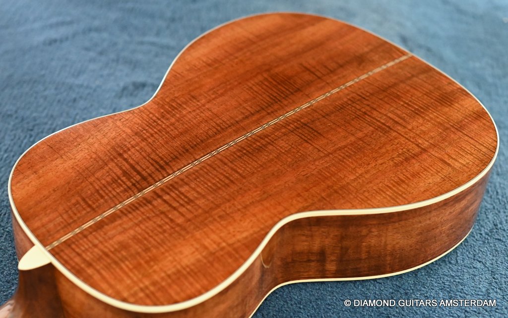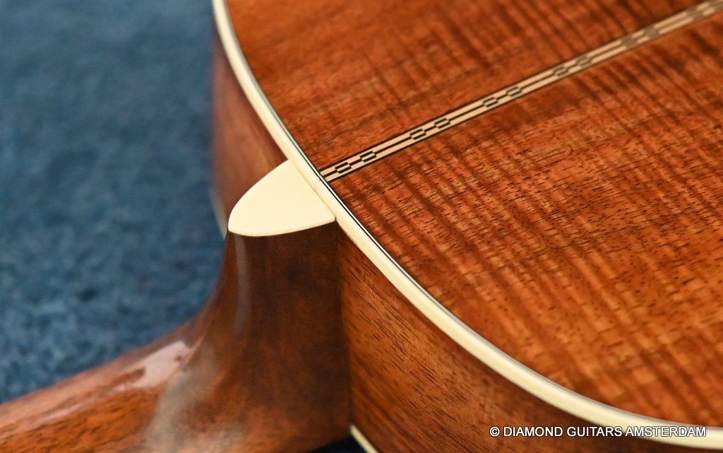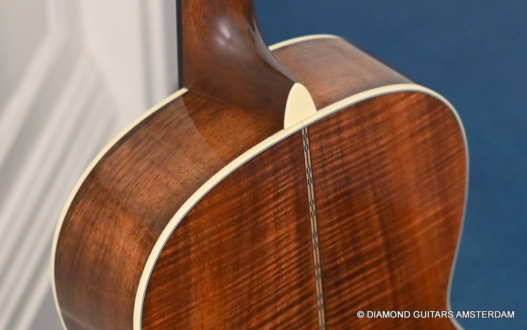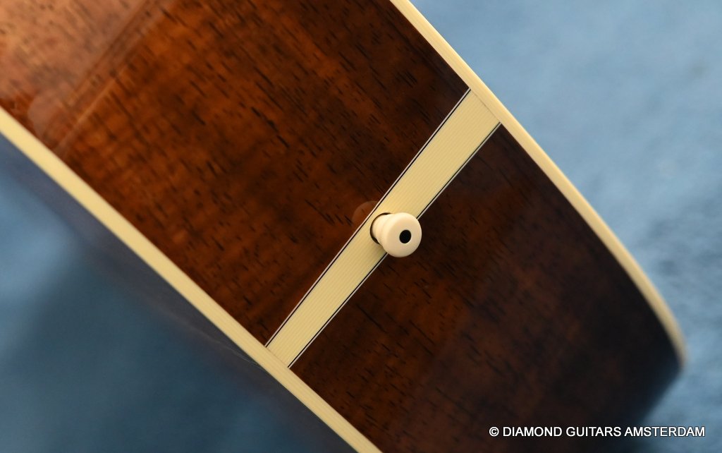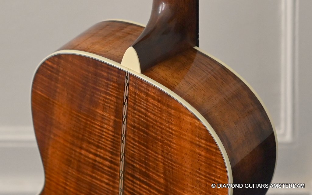 This Martin 000-28S Custom is build with a premium and VTS Sitka Spruce top and Premium flamed Hawaiian Koa. And PREMIUM this baby is! What a tone! Warm sound with complex overtones. And awesome dynamics going from almost silent to very loud accompanied by an awesome sustain. Notes just keep on ringing! She shows the level of tonal enhancement when Martin uses premium tonewood. And moreover, the Hawaiian Koa is beyond spectacular with the book matched Tiger stripe pattern.