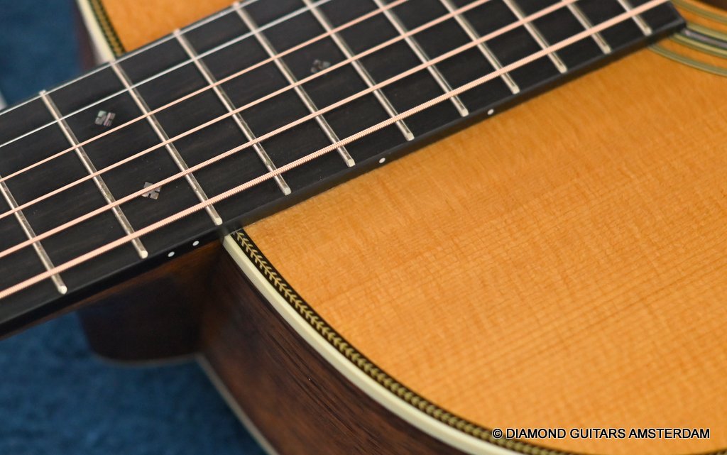 The Martin 000-28S Custom is just stunning! These 12-fret models are a fingerpickers dream, from a player’s perspective and also tonally. Due to the 12-fret construction, the bridge moves into the “sweet spot” of the top and increases volume, sonic depth and sustain!