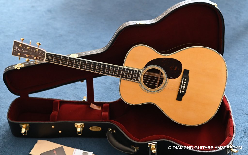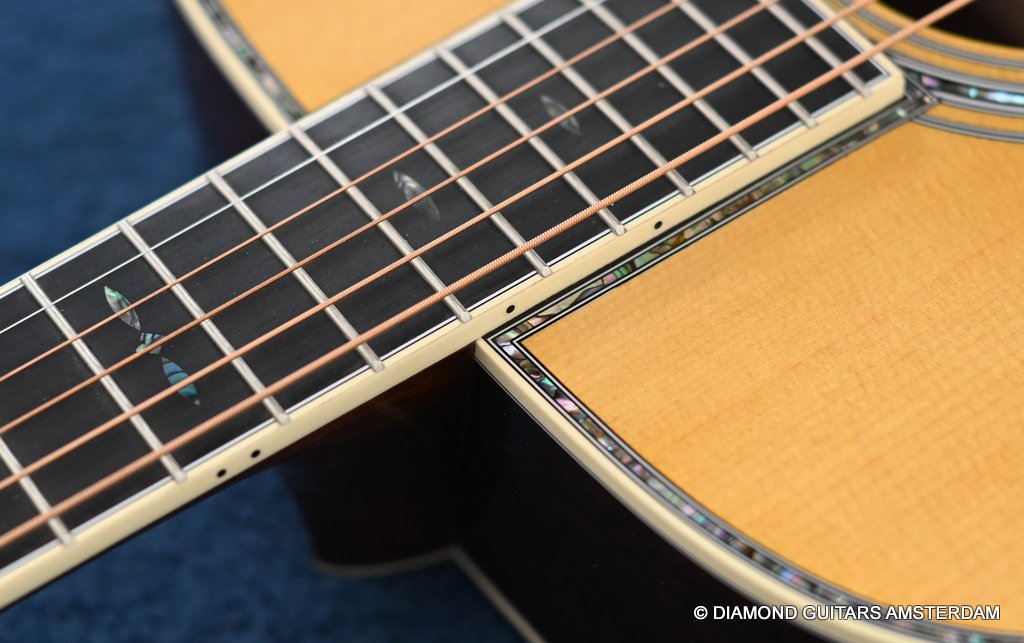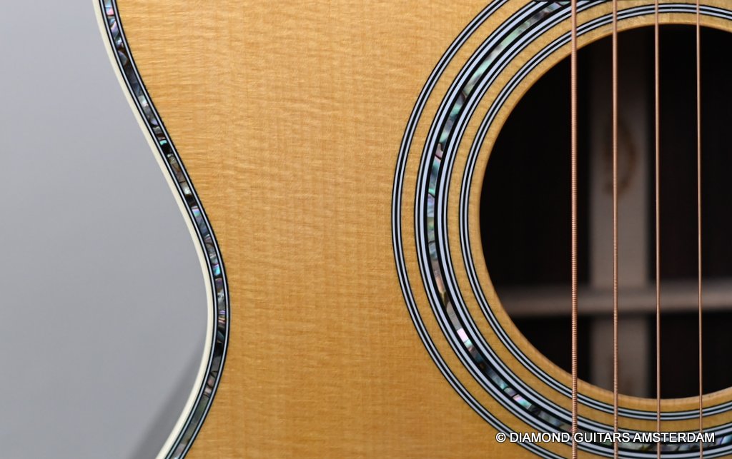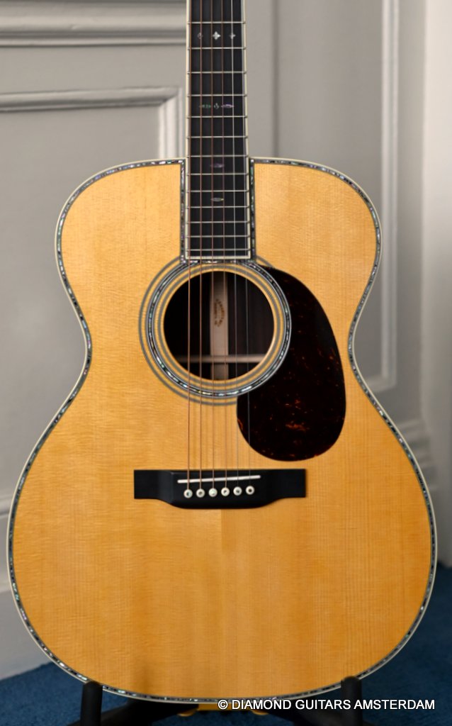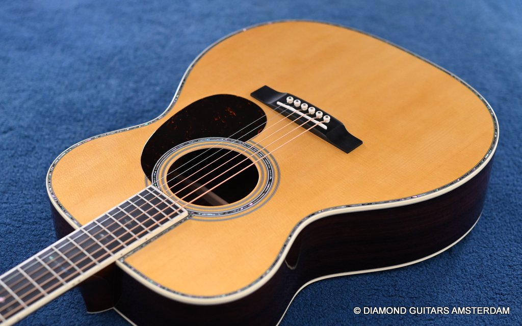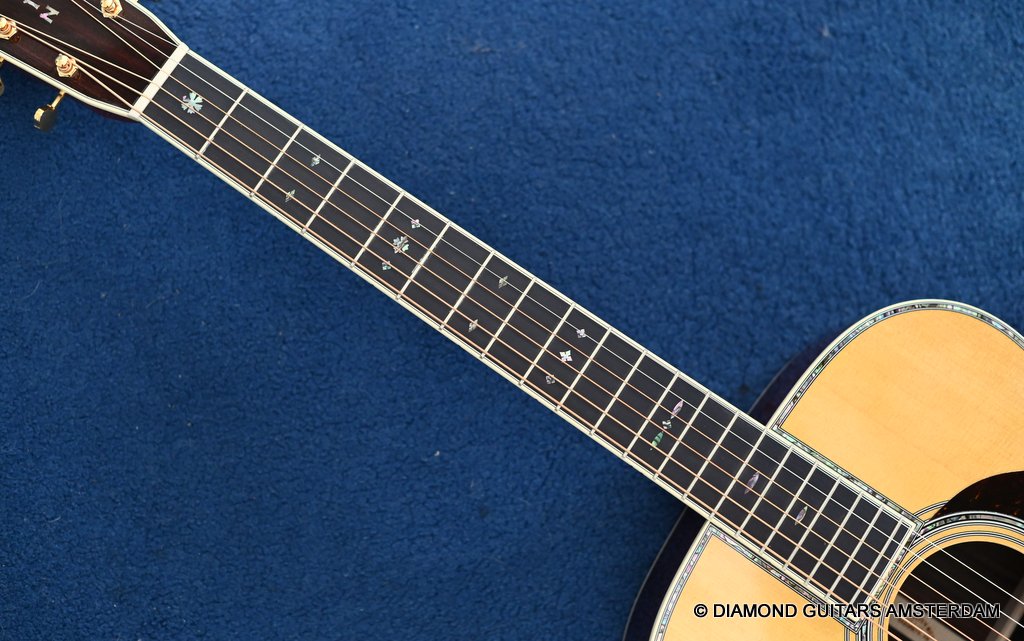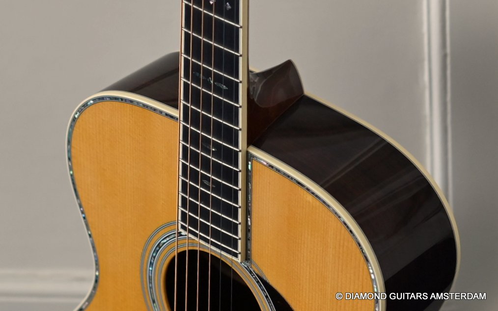 The Martin 000-42 resembles the vintage style 000 guitars and is like a hammer in your toolbox. She is versatile enough to be used in blues, folk, or just about any other acoustic genre. This Martin 000-42 has forward-shifted, scalloped 5/16″ bracing for an almost perfect balance in volume of low, mid and high notes. This 000-42 has a top-grade Sitka Spruce top that is more responsive than Adirondack tops you may find on most custom shop models. While Sitka doesn’t produce the same roar as Adirondack, it is far more articulate, making it an exquisite guitar for fingerstyle. The Sitka top is paired with an Indian Rosewood body that gives the guitar those rich overtones that speak to a lot of guitarists. The 000 or also called Triple-O has the shorter 24.9″ / 630 mm scale length compared to her OM sister making the tone is a little less loud but softer and sweet. That is why guitarists like Eric Clapton and John Mayer love this model! This is definitely an all-rounder preferring not only fingerstyle but also flatpicking and strumming. One’s hands will appreciate the short scale’s lower string tension or her slightly laid-back character when pushed with a strong attack.