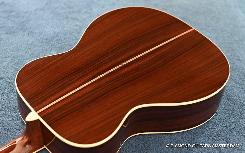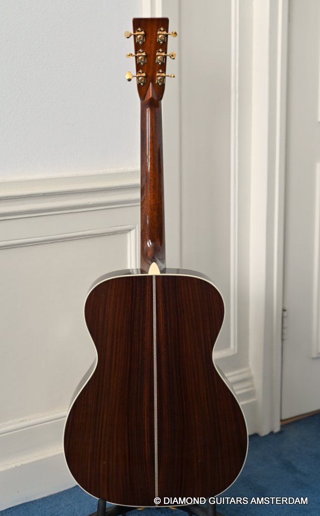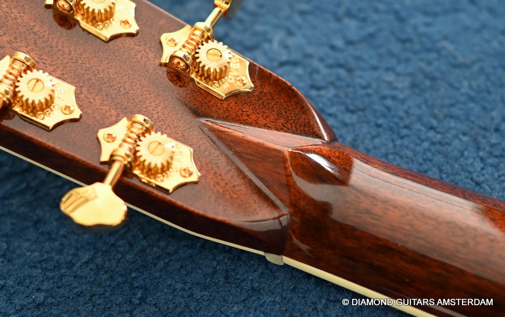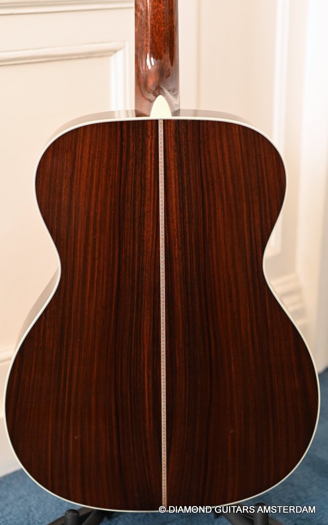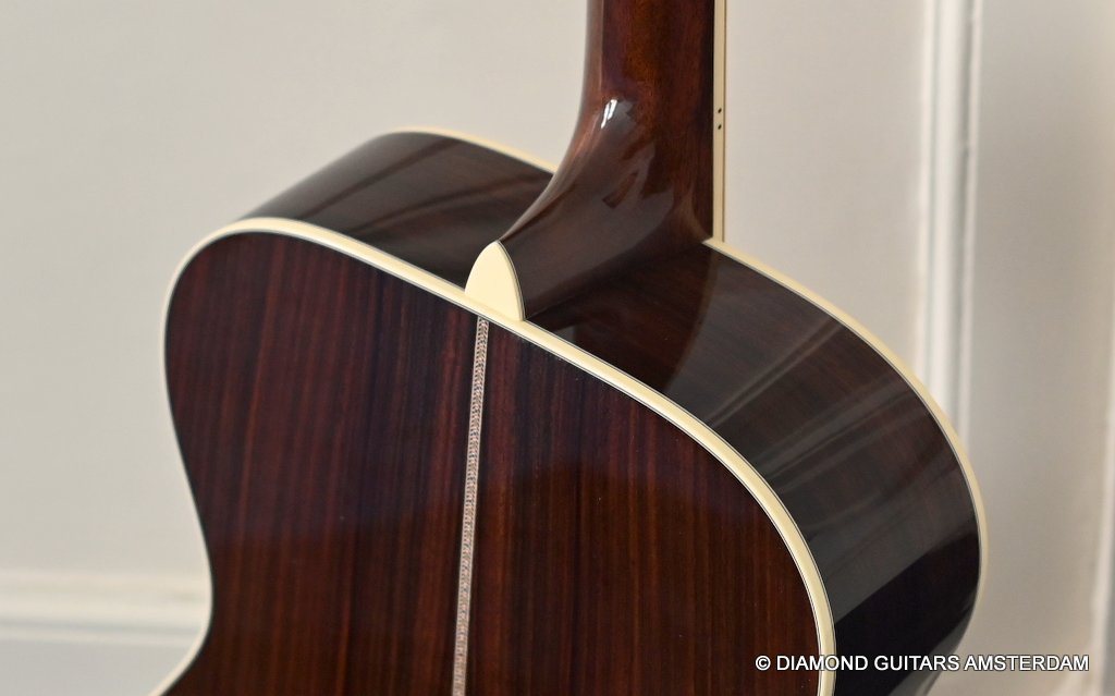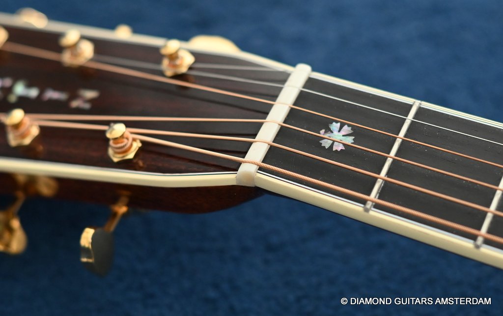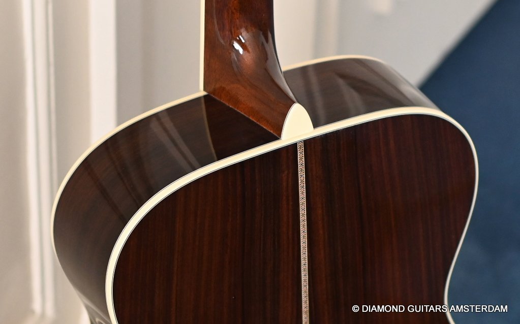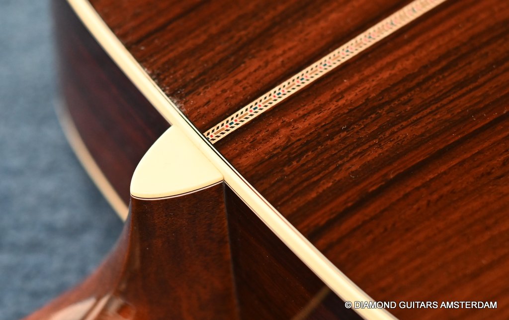 The Martin 000-42 resembles the vintage style 000 guitars and is like a hammer in your toolbox. She is versatile enough to be used in blues, folk, or just about any other acoustic genre. This Martin 000-42 has forward-shifted, scalloped 5/16″ bracing for an almost perfect balance in volume of low, mid and high notes. This 000-42 has a top-grade Sitka Spruce top that is more responsive than Adirondack tops you may find on most custom shop models. While Sitka doesn’t produce the same roar as Adirondack, it is far more articulate, making it an exquisite guitar for fingerstyle. The Sitka top is paired with an Indian Rosewood body that gives the guitar those rich overtones that speak to a lot of guitarists. The 000 or also called Triple-O has the shorter 24.9″ / 630 mm scale length compared to her OM sister making the tone is a little less loud but softer and sweet. That is why guitarists like Eric Clapton and John Mayer love this model! This is definitely an all-rounder preferring not only fingerstyle but also flatpicking and strumming. One’s hands will appreciate the short scale’s lower string tension or her slightly laid-back character when pushed with a strong attack.