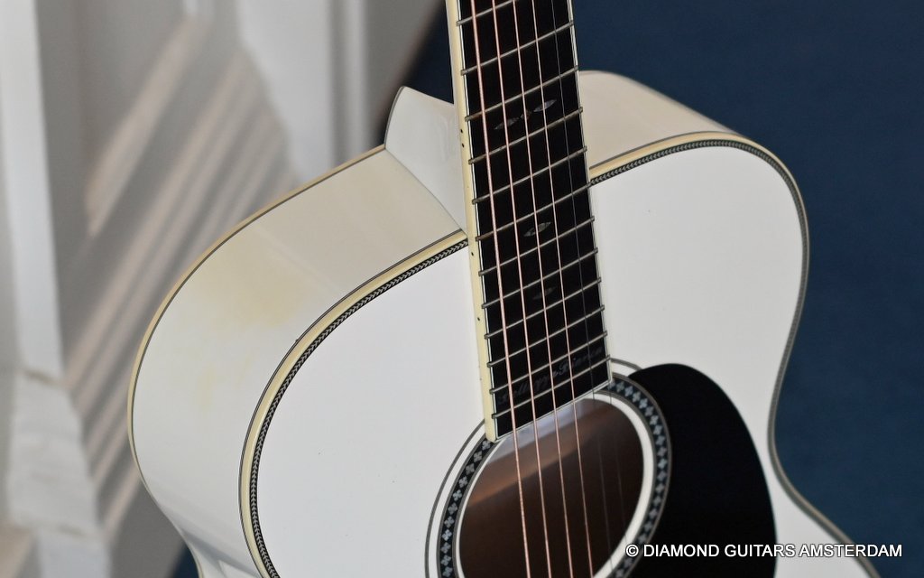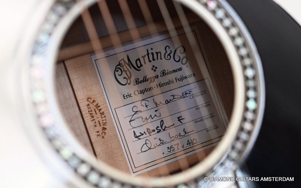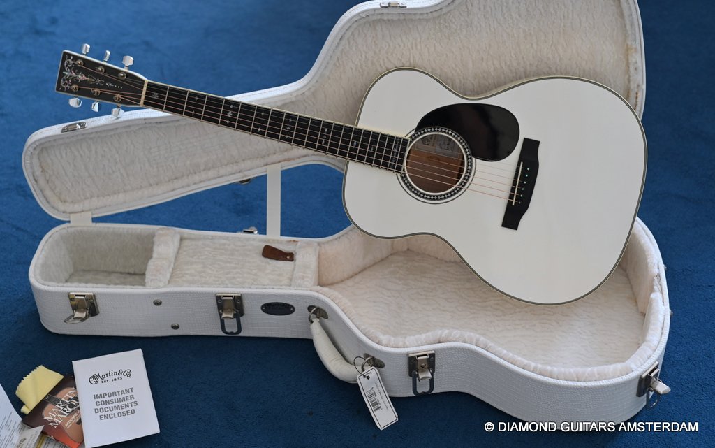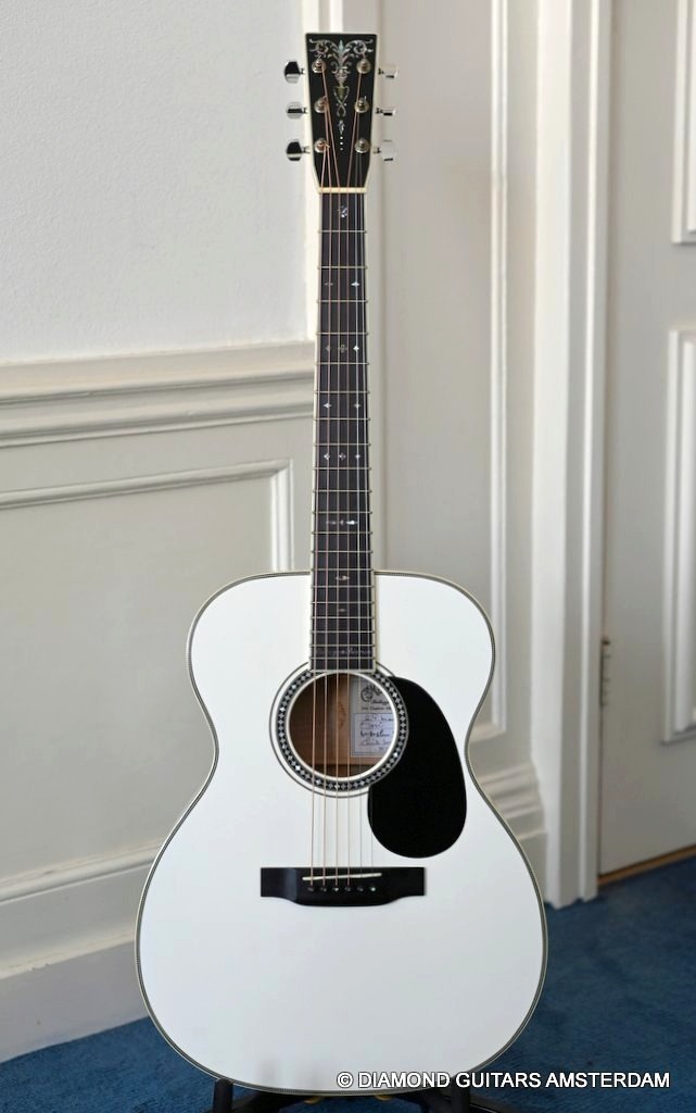 Awesome Martin 000-ECHF Bellezza Bianca Eric Clapton Limited Edition built in 2006 with a white nitro finish on an Engelmann Spruce top, Big Leaf Maple back & sides and a Honduran Mahogany neck! This ‘White Beauty’ would fit perfect in Eric’s white room!