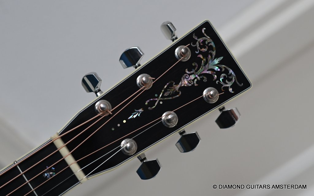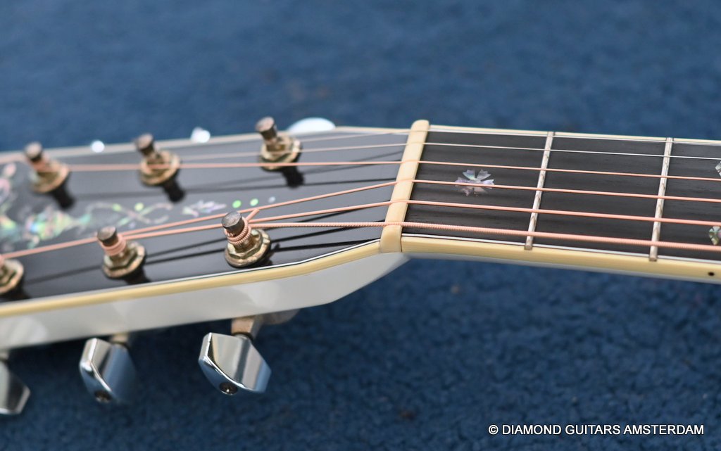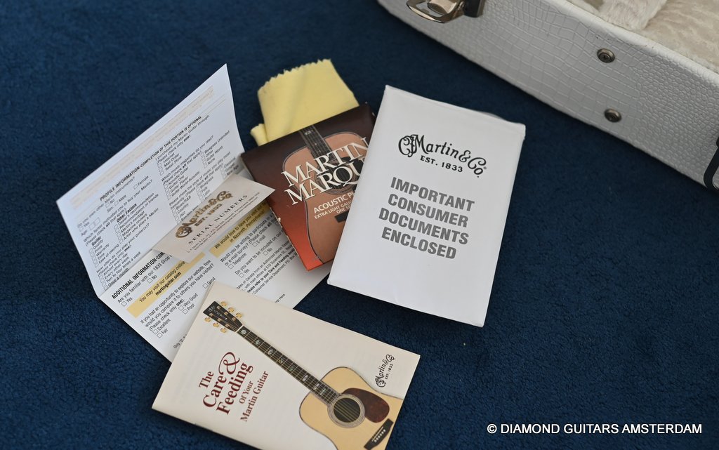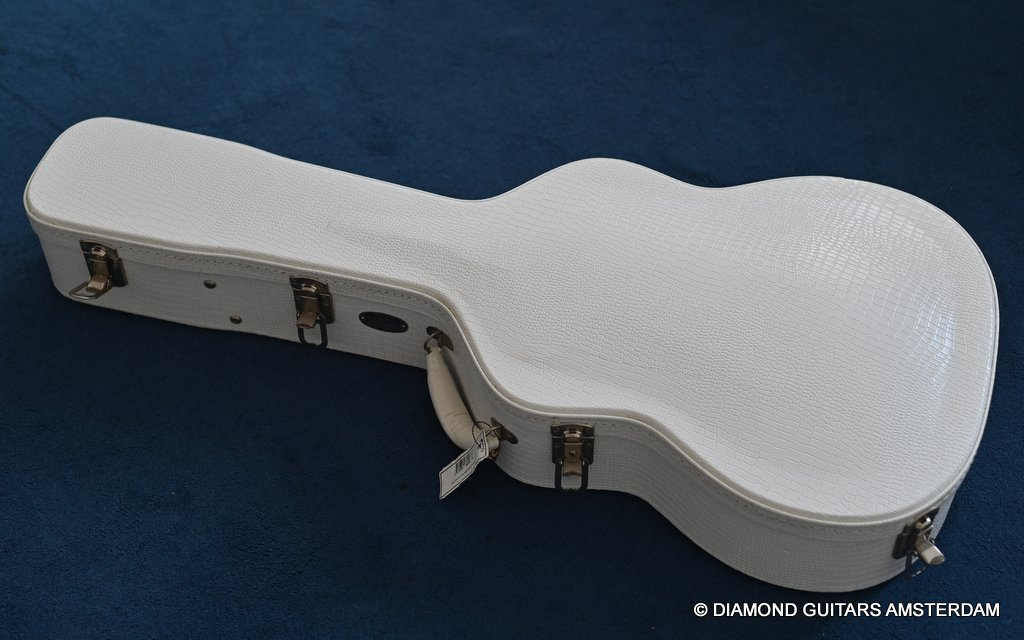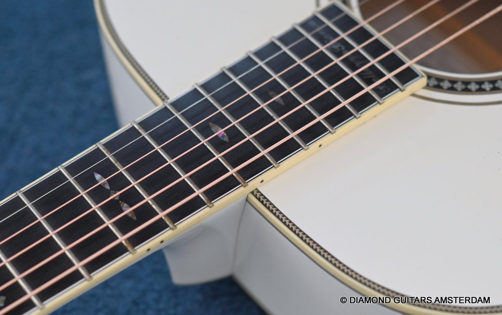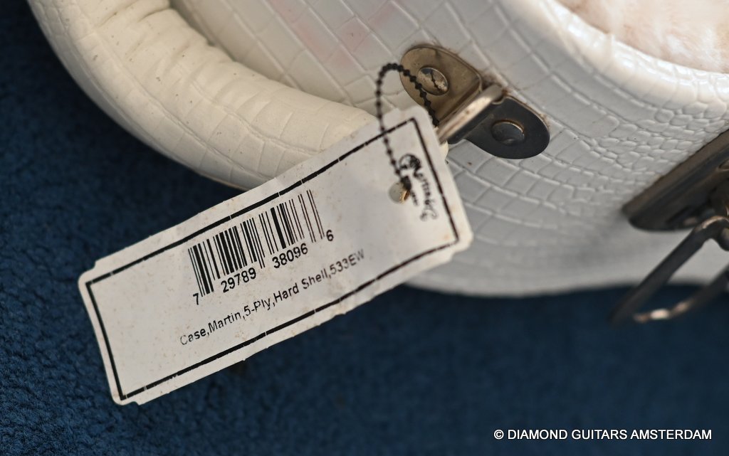 The idea for this guitar came to life in 2005. Martin got with Eric Clapton & guitar designer Hiroshi Fujiwara to make two different series of Eric’s 000-28 model. They came up with a Black Edition in 2005. And given Clapton’s history with the white room, they also designed the White Series in 2006. This one will take you straight into Cream’s white room, having many beautiful added trim options added to the regular Clapton model. Her Ebony fingerboard has all the ornate abalone inlays of the 30s. Eric Clapton & Chris Martin IV signed the guitar. Also, her designers & builders, Hiroshi Fujiwara & Dick Boak, both long time Martin employees, were given the honor to co-sign. She comes complete w/its original White gator/white lined Martin supplied hard case. She shows some minor play marks and some discoloration of the nitro lacquer. Action is medium. Brilliant guitar, excellent condition!!