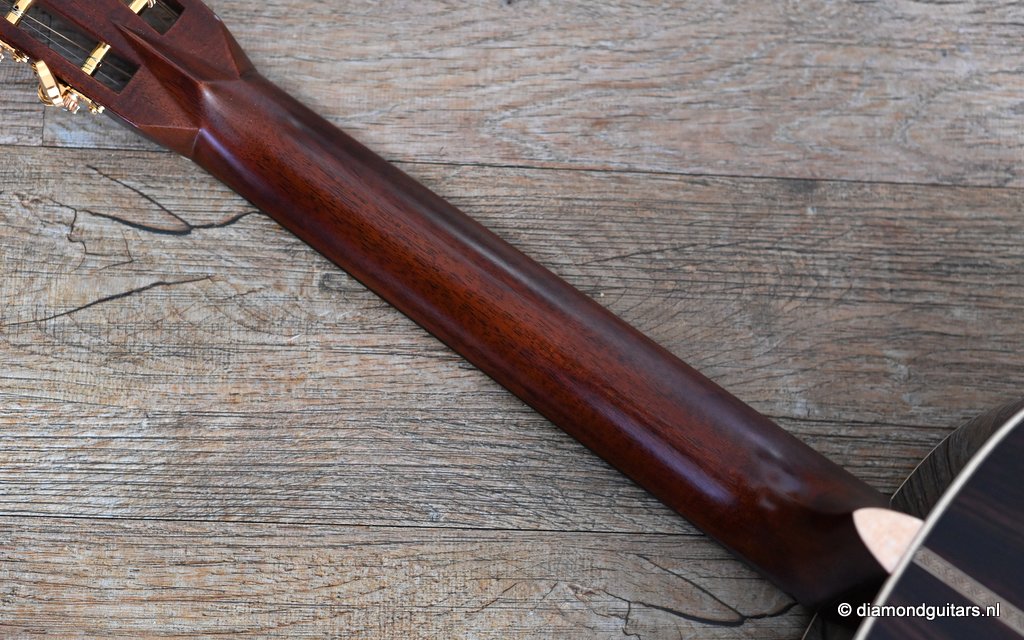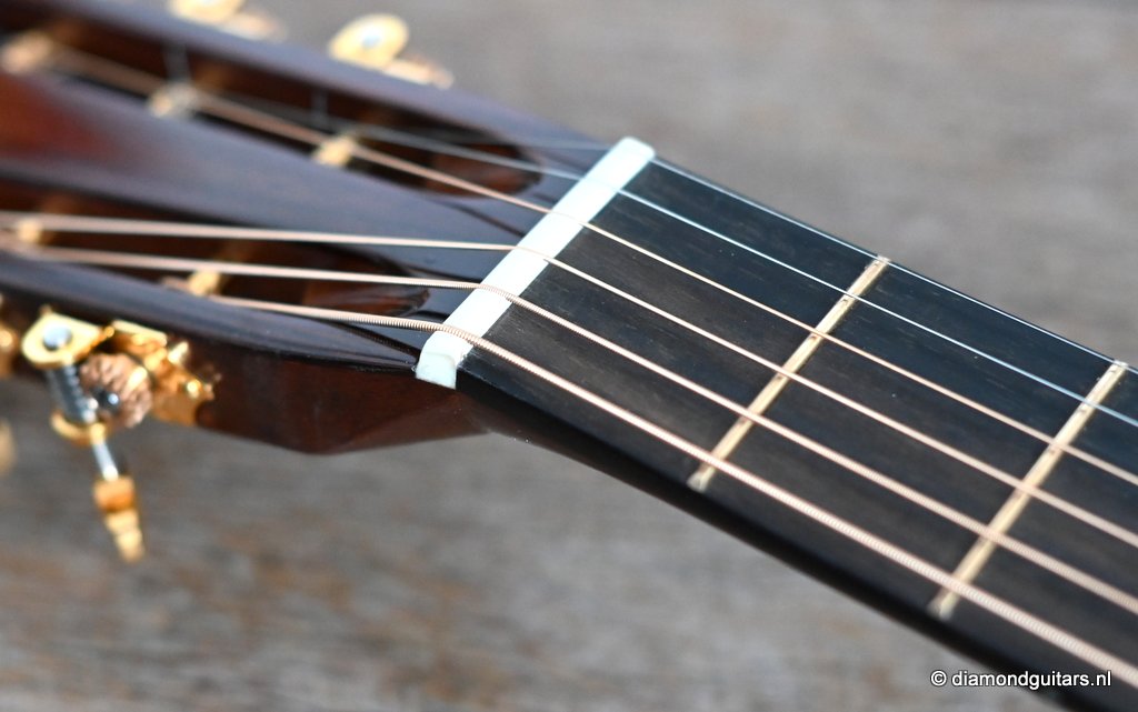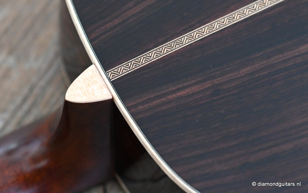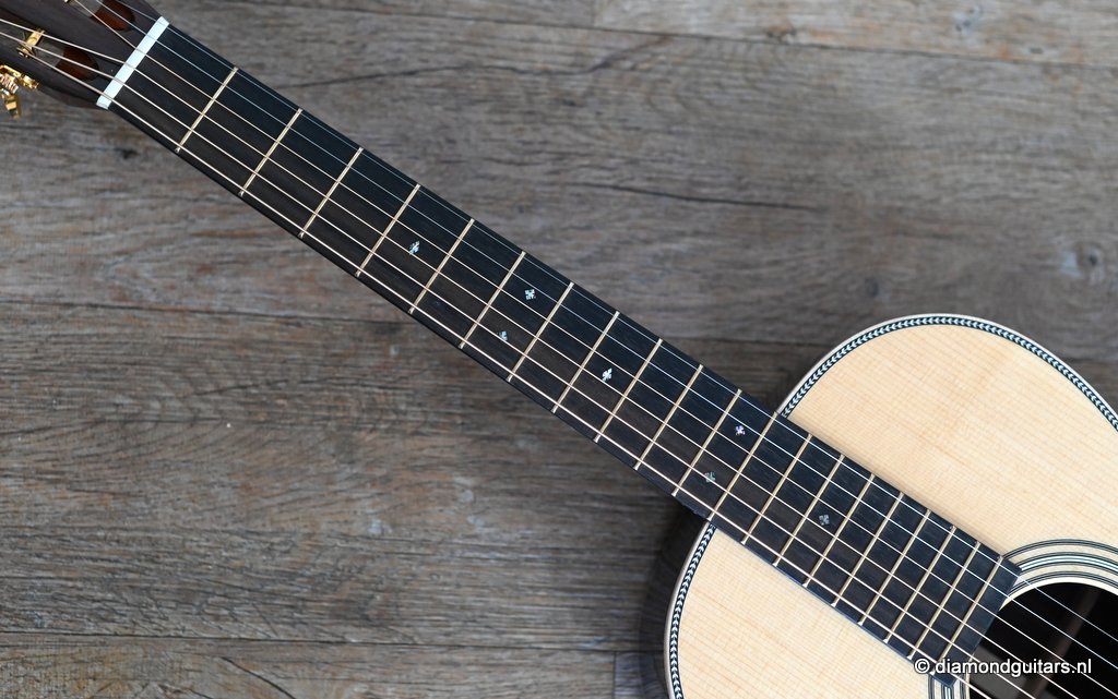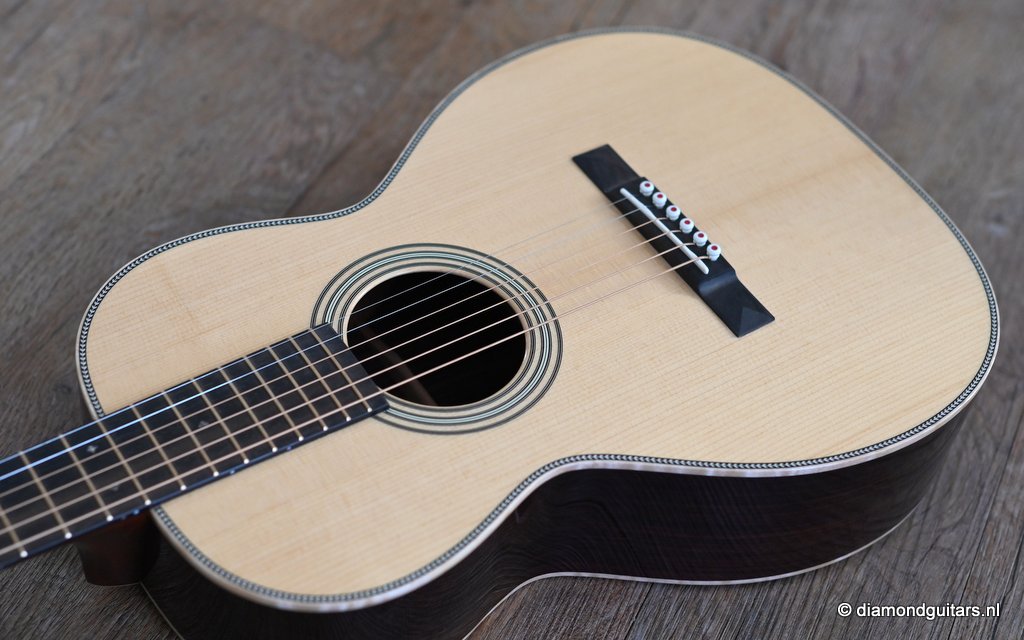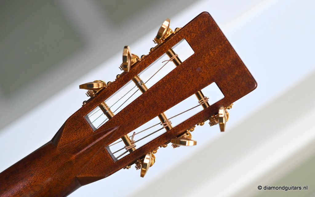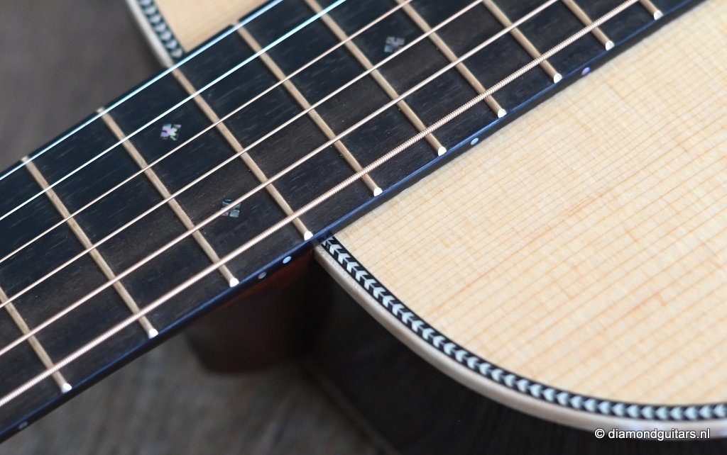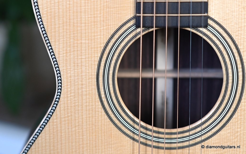 Compared to the fine Martin Standard Series, the Modern Deluxe Series features a torrefied Sitka Spruce top with scalloped, 1/4″ torrefied Adirondack Spruce bracing attached with natural protein glue, carbon fiber/torrefied Adirondack spruce bridge plate; short-scale neck with Vintage Deluxe profile, two-way adjustable titanium support rod, fretboard with High Performance Taper, Diamonds and Squares long pattern fretboard inlay, abalone position markers, EVO Gold frets, Liquidmetal® bridge pins, European flamed Maple binding and an Abalone script logo in the headstock. She is also a lightweight, adding to the resonance of this beauty. Impressive guitar!! Listen to a sound impression here: