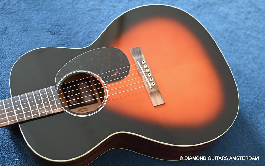 The Martin CEO-7 is a tribute to a time when flat top steel string acoustic guitar design was evolving very quickly. The market was extremely competitive as demand for fourteen fret neck instruments was rapidly growing. At that time the Dreadnought was not yet the dominant shape and the smaller tight waist models influenced by the parlor guitars of the prior century were still quite popular.