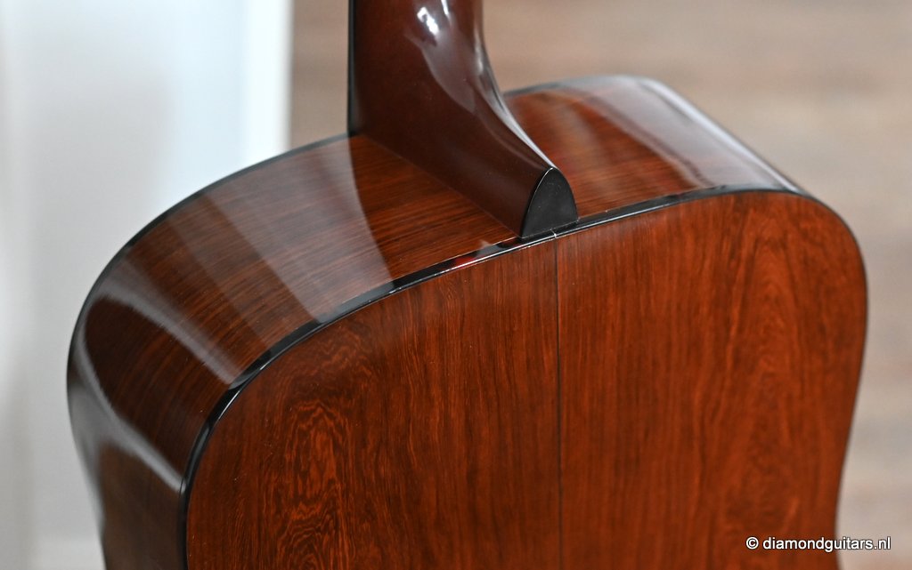 This fine Martin CS D-14 is built with Madagascar Rosewood and a fine grainedmagnificent premium Adirondack Red Spruce top. The Madagascar Rosewood used for the back and sides of this dreadnought provides a rich, resonant tone with a balanced response. Adirondack Red Spruce adds clarity and dynamic range, enhancing the guitar’s overall sound. This combination of woods is favored for its ability to produce a powerful yet nuanced tone. This guitar pays homage to the revered Pre-War era instruments that have inspired countless musicians and shaped the sound of modern music. Reflecting on the legacy of these iconic guitars, Martin has again incorporated the finest materials and time-honored techniques to create an instrument that stands as a testament to their journey and craftsmanship.