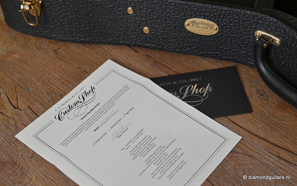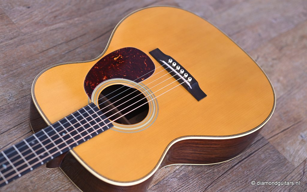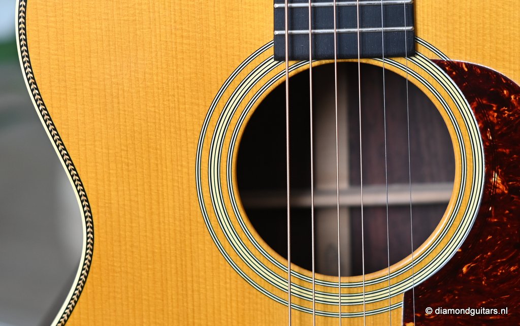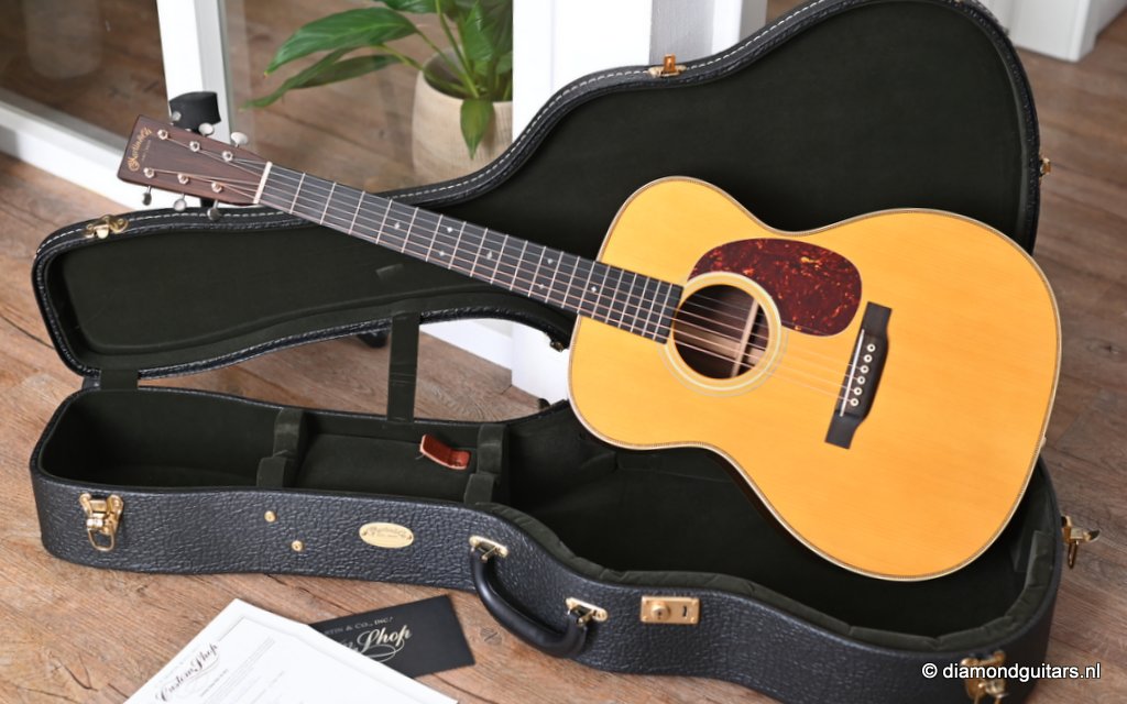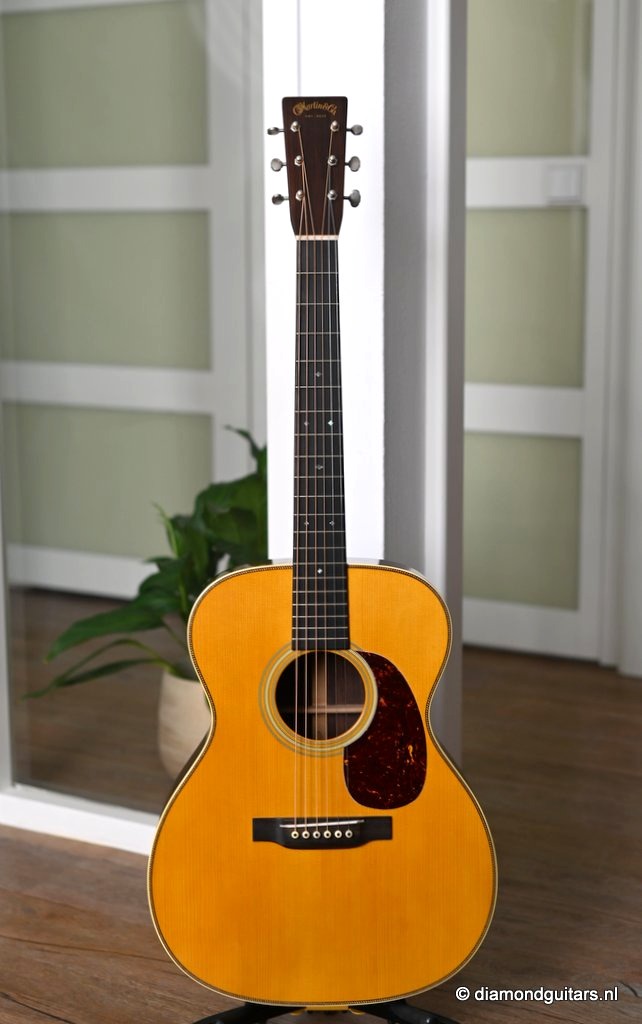 But this guitar isn’t just about vintage mojo: she’s built to perform. Even the new laquer formula adds to that. More indept info on the Gloss Finish proces HERE. The V-shaped neck mirrors the pre-war feel, while modern craftsmanship ensures flawless playability, exceptional intonation, and long-term stability. Whether you’re playing in a studio, on stage, or at home, this baby sings with a powerful low-end, shimmering highs, and a beautifully open midrange. This 000 is actually insane. Incredible overtones and something about the neck feels so right. Martin did a great job with the stage 1 aging as well. Her condition is excellent. No dings or scratches. Listen to a sound impression here: