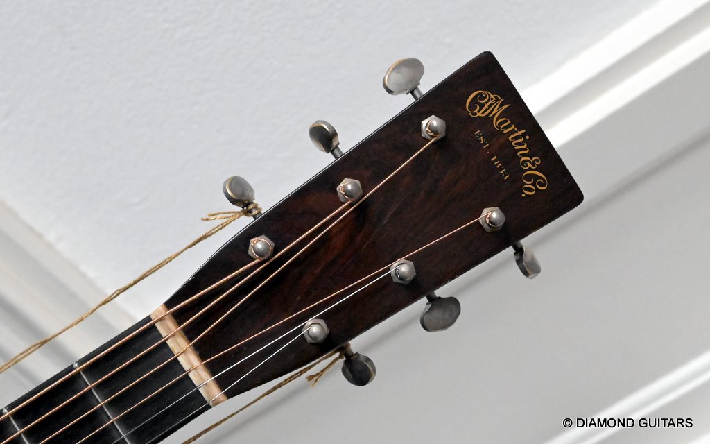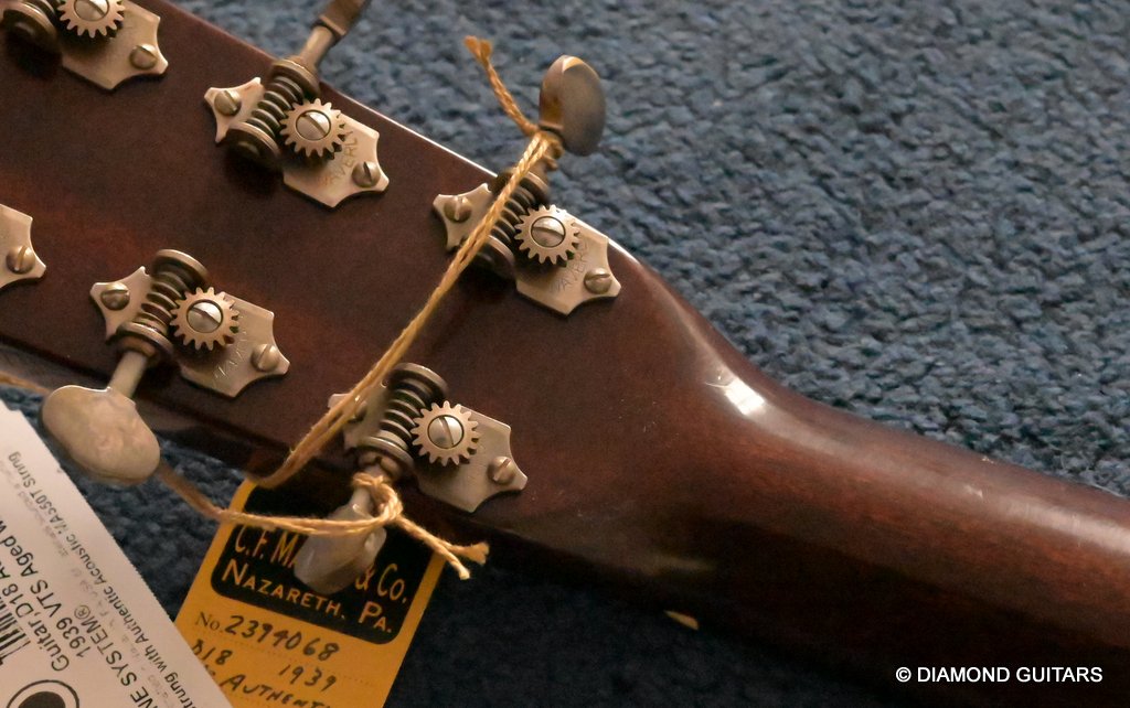 The neck of this 1939 Aged is spot on with its 1 11/16″ / 43 mm nut width and C-shaped barrel and heel neck shape. The barrel/heel name refers to prewar shaped necks that get thicker when getting closer to the body. This not only contributes to the sustain and tone, but also the feel of this ‘oldie’. I can tell you that this Aged 1939 feels and sound phenomenal. Very loose, resonant, rich tone. Click HERE to hear what Martin says about this beauty!