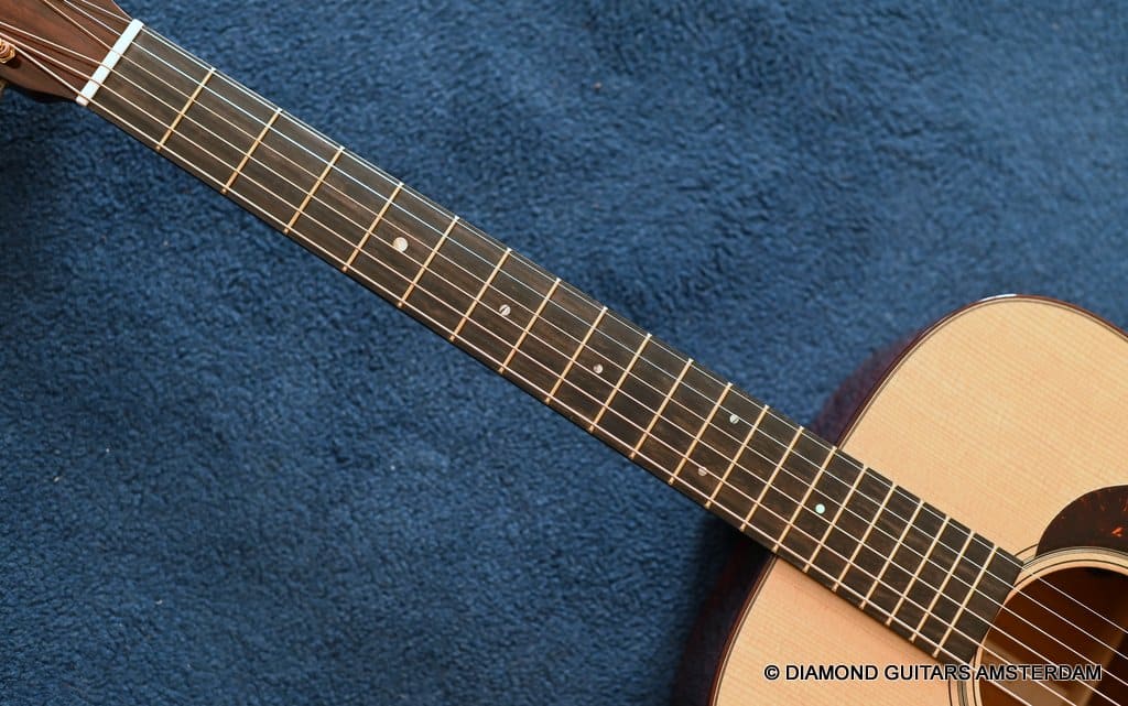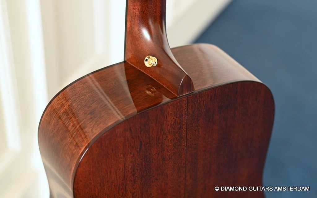 The new Vintage Deluxe neck profile is publicly referred to as “slightly skewed.” Rather than having the apex of the carved profile running straight and directly at the center of the neck, with identical shaping on either side, this new neck shape is slightly asymmetrical, to fit the shape of the human hand in a more-natural way. Or rather, it is a new neck shape inspired by old Martin neck shapes from the 1920s and 1930s. Marvelously comfortable! Without a question, the D-18E Modern Deluxe would be a great choice for many contemporary dreadnought players. With a great acoustic sound and the ability to plug-and-play onstage, the guitar just might be the one-guitar solution that many have been waiting for! Mint condition.