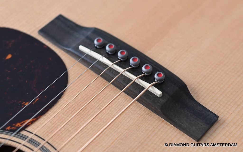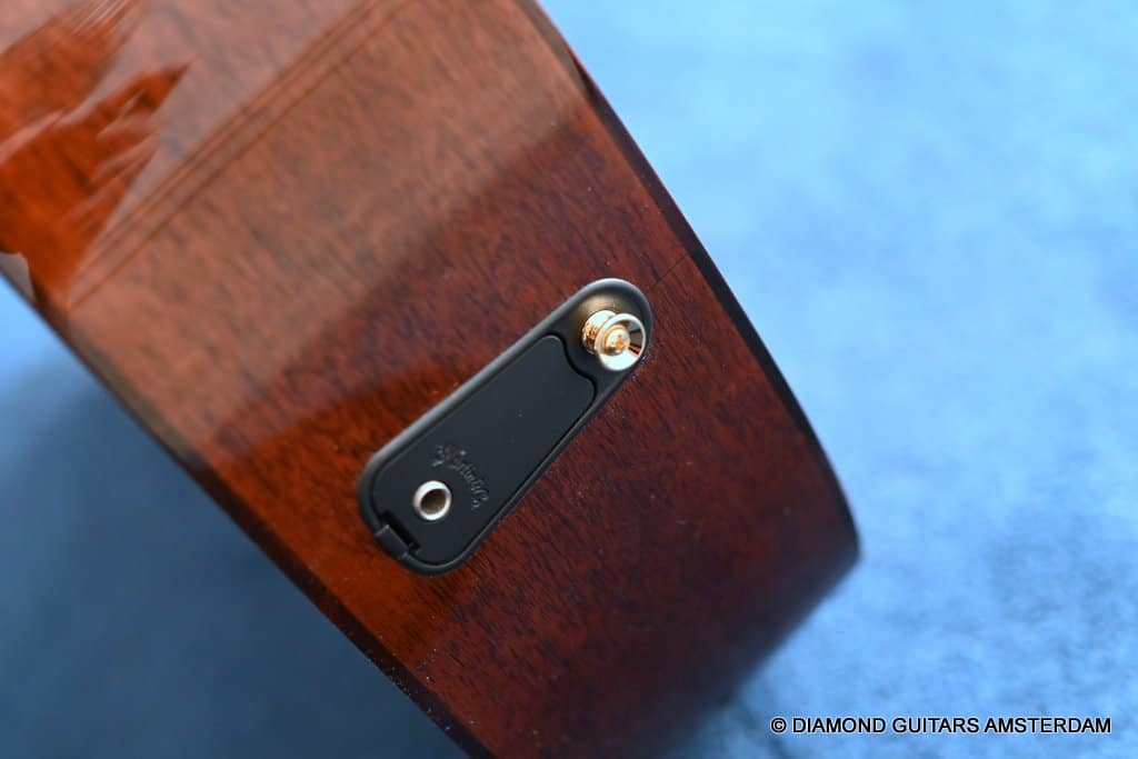 Martin’s D-18E requires little introduction. This Mahogany dreadnought and her Rosewood sister are the most iconic flattop models ever made. The Mahogany Dread is preferred by many pickers because of her bright, clear, and balanced tonality. Suitable for all kinds of music, including fingerstyle in dropped-D tuning. The D-18E MD includes Fishman’s Aura VT Blend electronics. Incorporating Fishman’s latest Aura HD technology, the package uses a custom Aura “image” created using recordings of an actual D-18 Modern Deluxe guitar, which is used to process the tone of the Acoustic Matrix undersaddle pickup. “VT” refers to the system’s volume and tone controls, which are mounted unobtrusively in the bass side of the soundhole, facing the “Blend” control (used to adjust the amount of Aura signal) that is installed in the treble side.