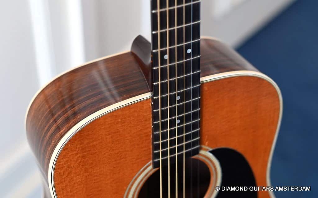 A Martin D-28 is by far the world’s most popular Dreadnought dating back to the 1930-ties. Her classic styling and aged beauty is legendary as is the tone!