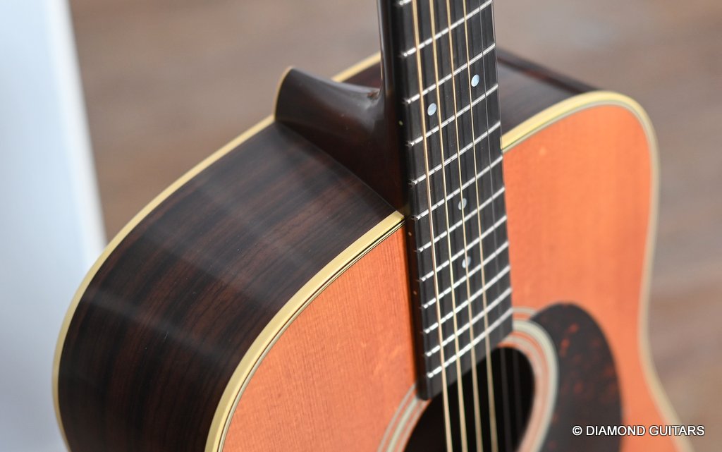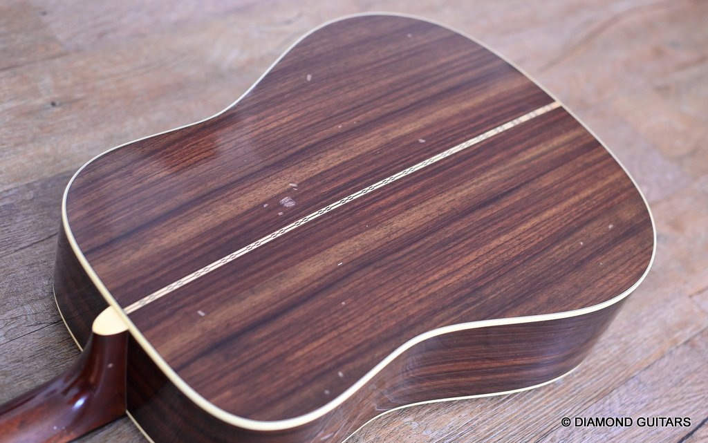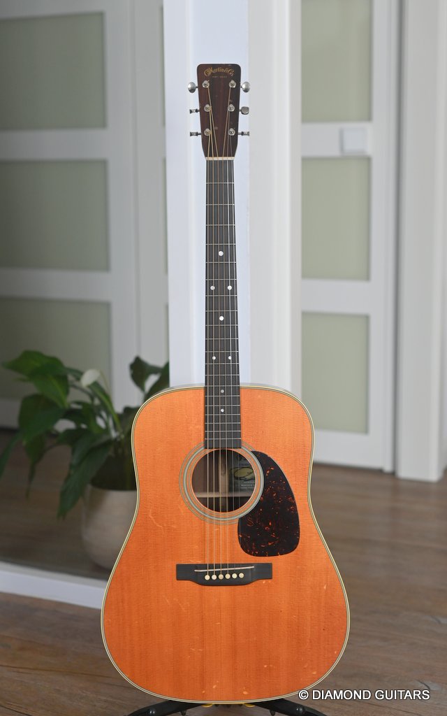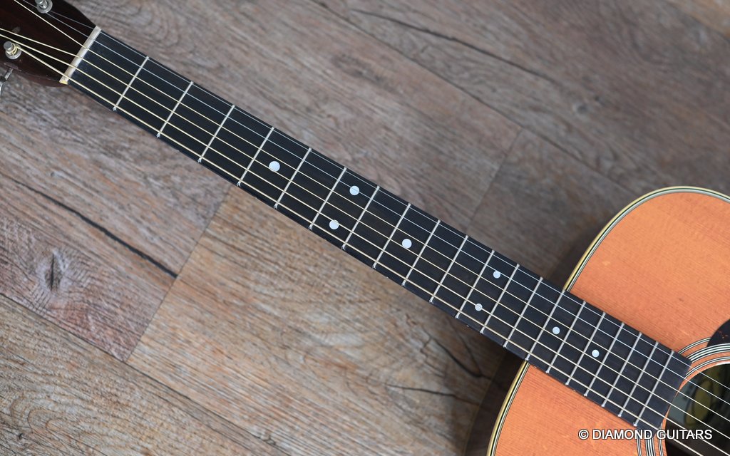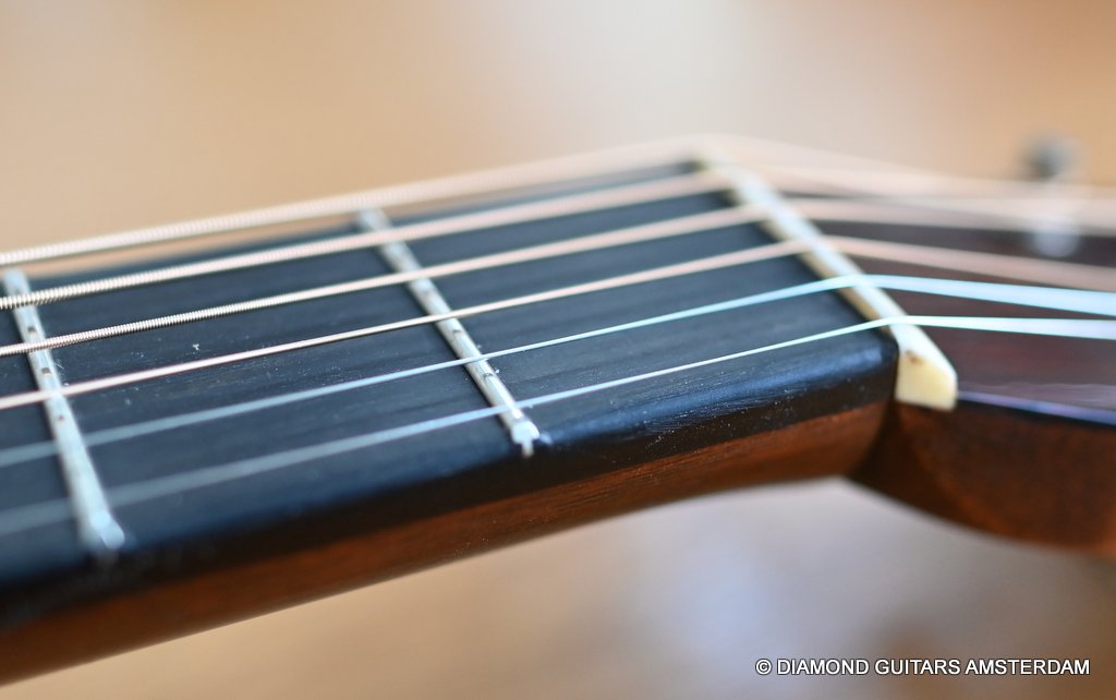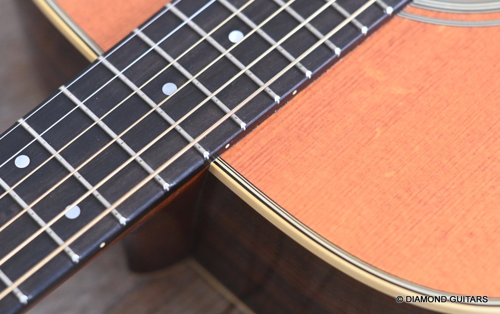 The action is pretty low and easy, and unlike a ’54, this guitar has an easily adjustable truss rod. I didn’t need to touch it, though. Although my hands are not large, I found barre chords surprisingly manageable and had no problem executing pretty much anything I felt like playing, up and down the ebony fretboard. Her voice is lively and loud due to the rearward-shifted non-scalloped bracing, which offers added volume and balance. While the D-28 is a sonic boomer, this babe is all about balance. The focus is more in the middle range, balanced nicely with a present top and a snappy low end. Give her a strong strum and the whole guitar resonates, with sweet, enduring sustain. Her body feels alive, vibrating against your own. Martin did a remarkable job creating a kick-ass new guitar that looks like a road-worn 70-year-old. Listen to a sound sample by Manos Ploumidis here: