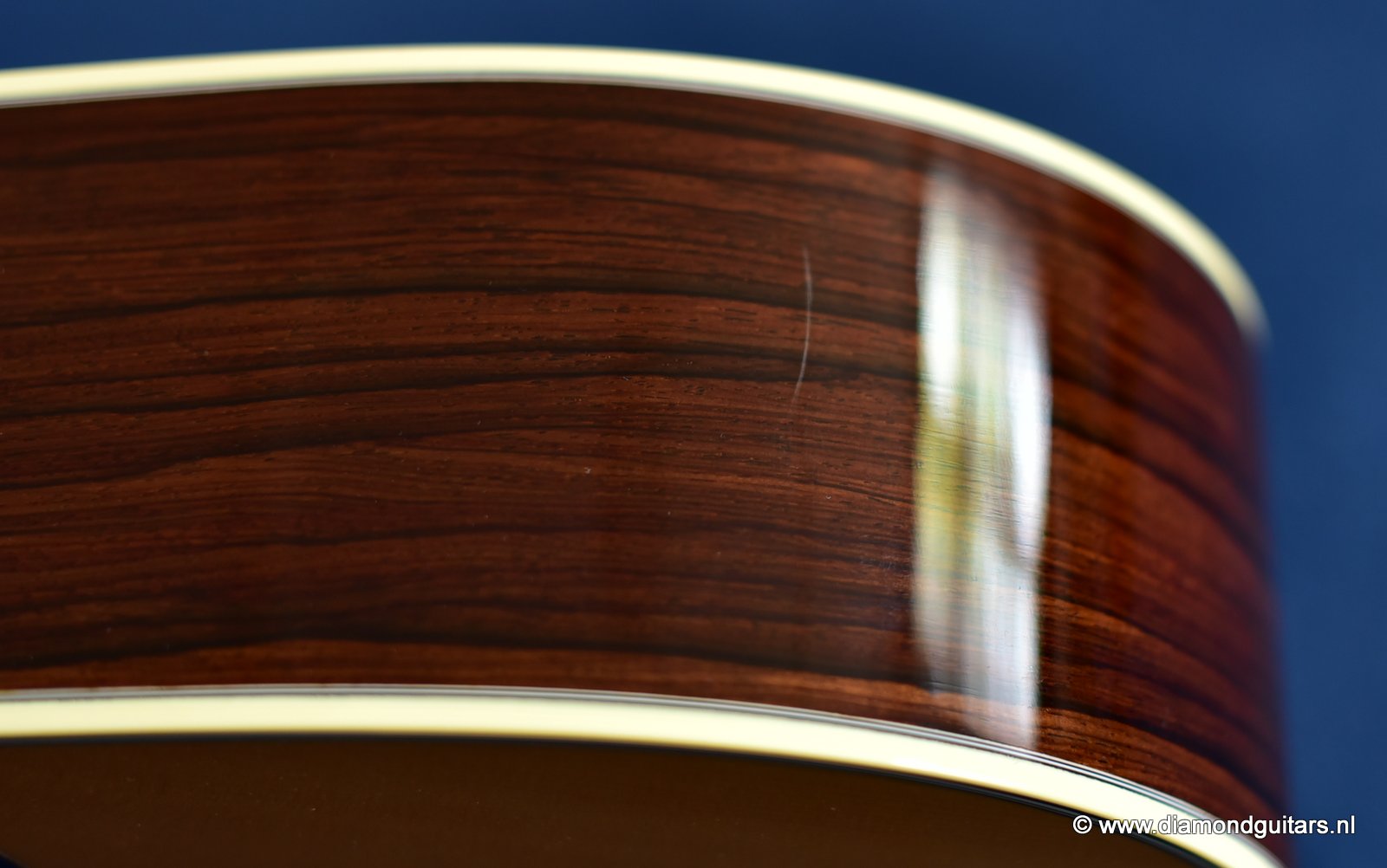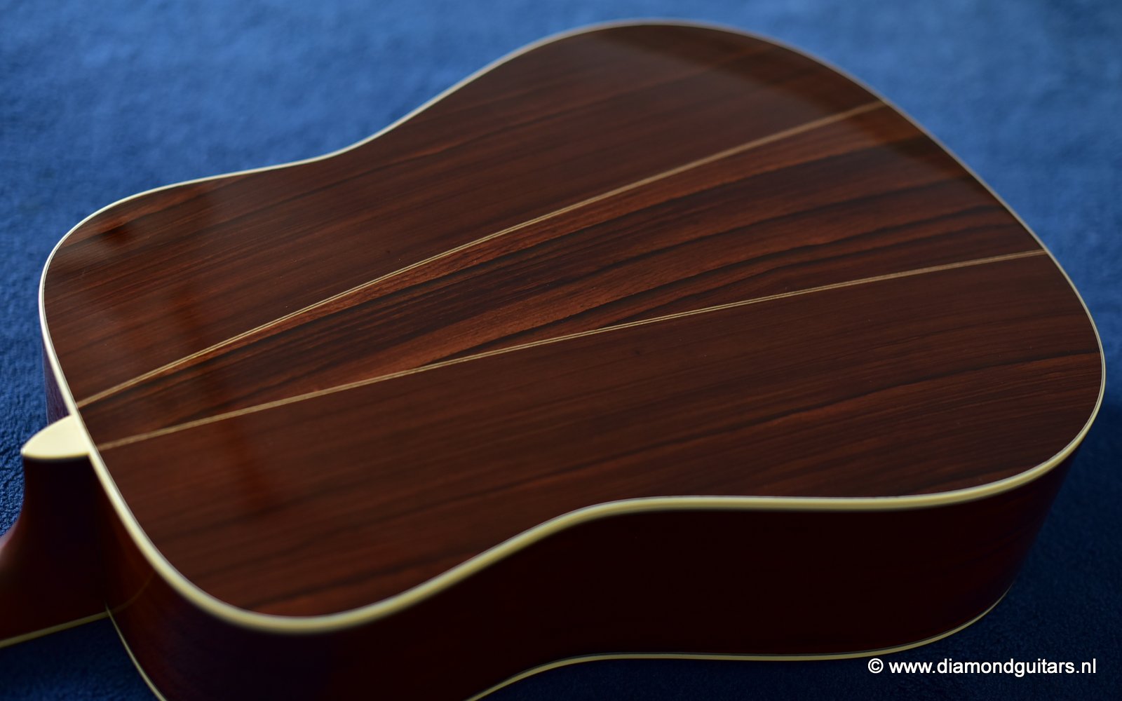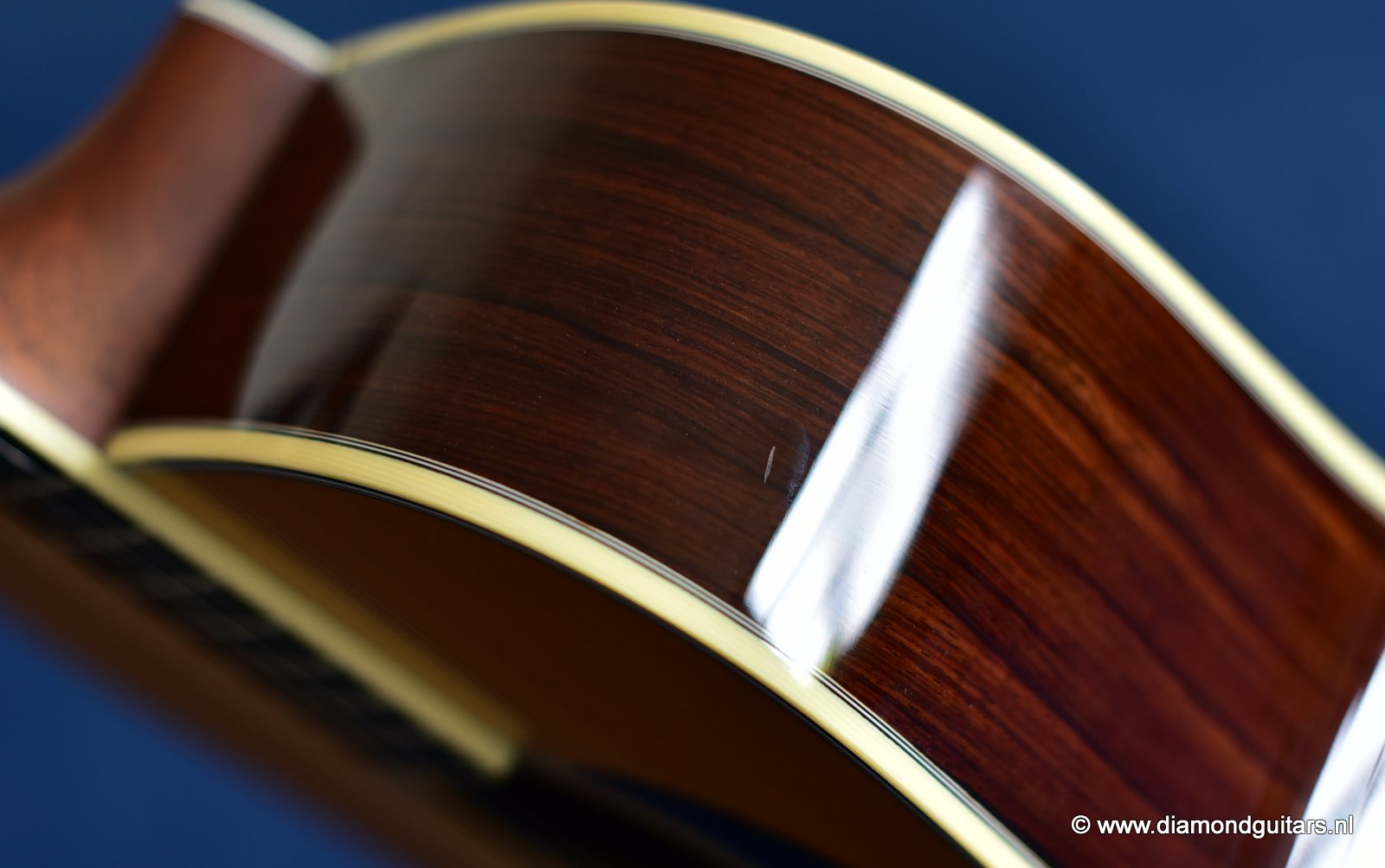 This D-35 Custom Shop is also tonewise a beauty. Very well balanced, lots of overtones, sparkling high notes and a tight bass. Excellent guitar for a singer songwriter or picker/strummer. Guatemalan Rosewood (Dalbergia Tucarensis) is a Central American Rosewood and is one of the best alternatives to Brazilian Rosewood.