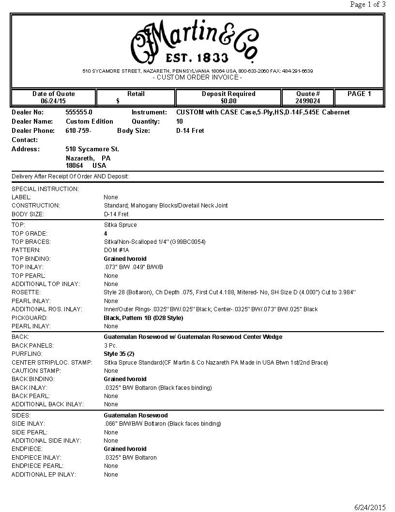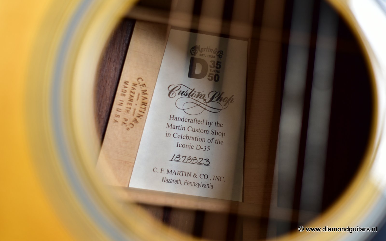 This MINT Martin D-35 Custom Shop is as part of a the limited run of guitars commemorating the model’s 50th Anniversary in 2015. Martin Custom Shop build only 10 of these with premium Guatemalan Rosewood back & sides. Very rare: only 1o instruments in this wood combination were build!