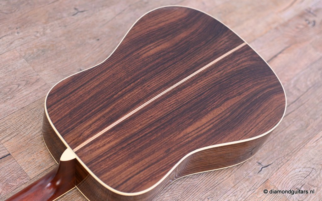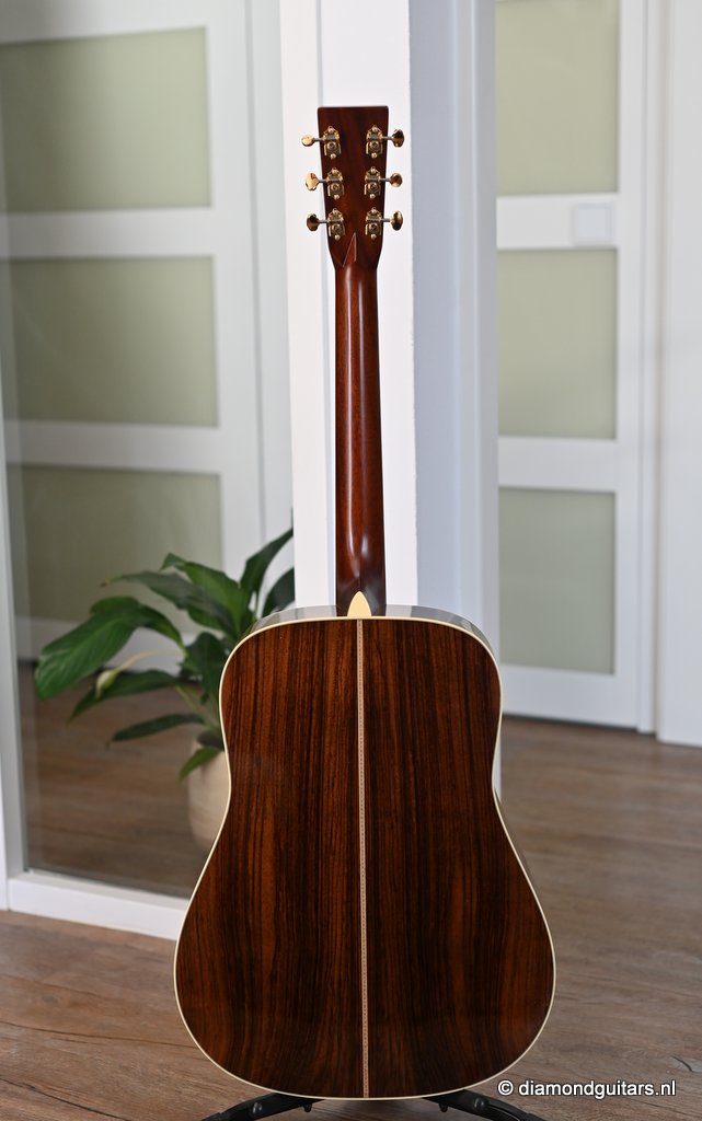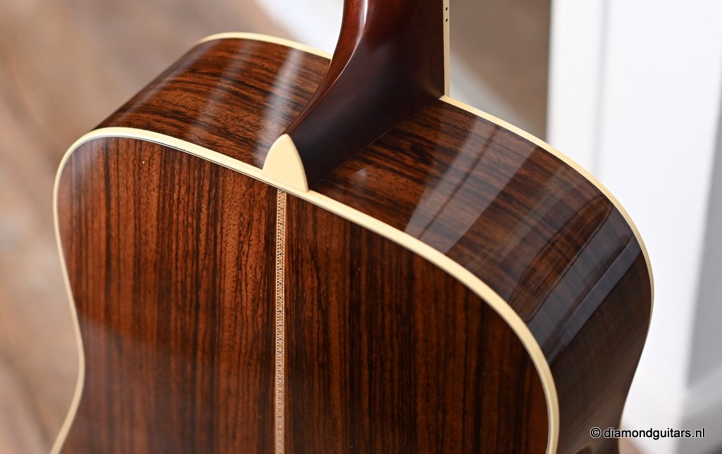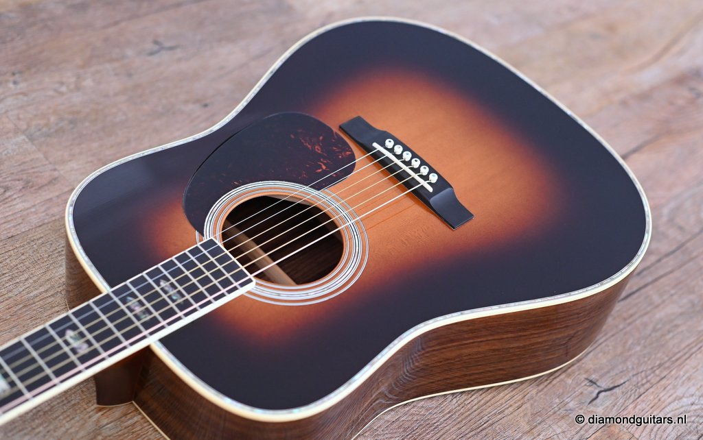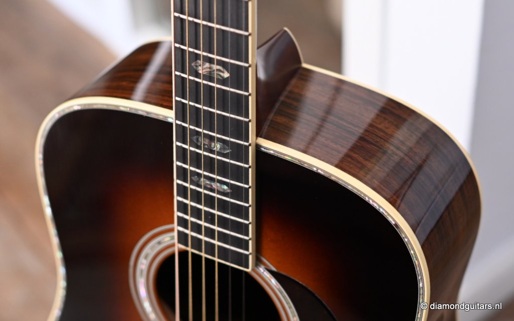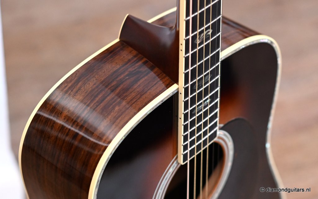 With this mint Martin D-41 SB Reimagined, the Pennsylvanian luthiers have delivered a clear statement of intent to deliver the highest standards of acoustic guitar possible. With the scalloped, forward shifted braced top, this Martin D-41 maintains excellent clarity and articulation throughout, even when played hard. The bass response is strong and tight, always under control. The mids are bouncy and the highs ring like a bell. This is the perfect rosewood canon. Singer/songwriters will love her and she would also do very well in studio recording sessions. And on top of all this that wonderful 1935 Sunburst top lacquer!