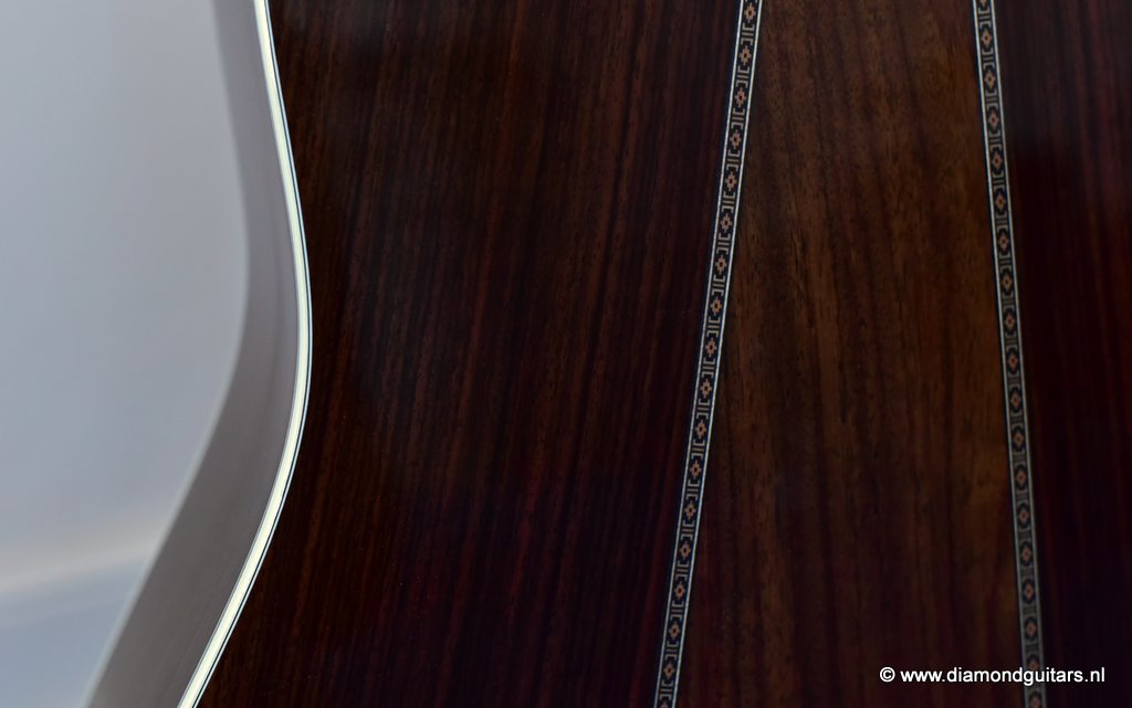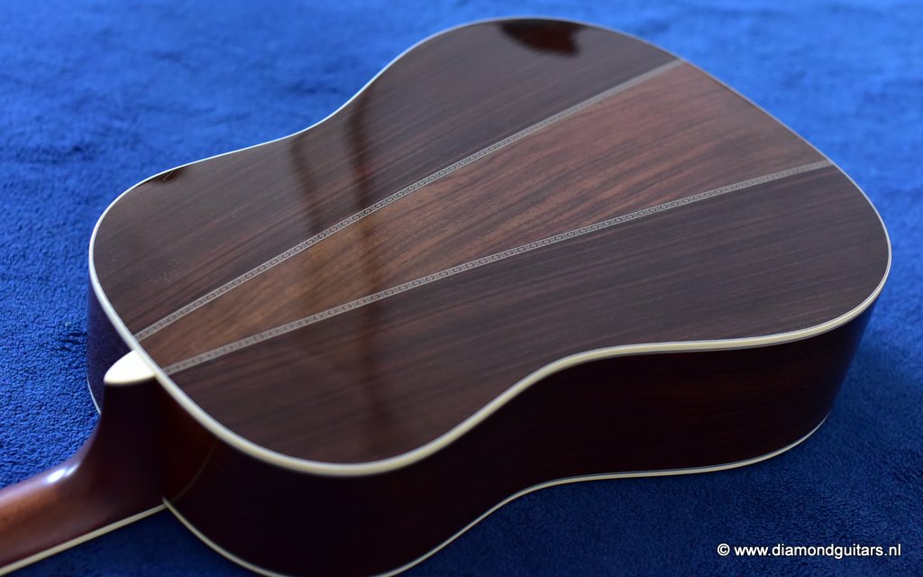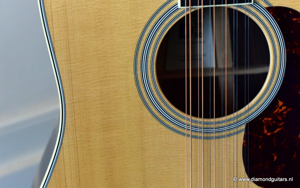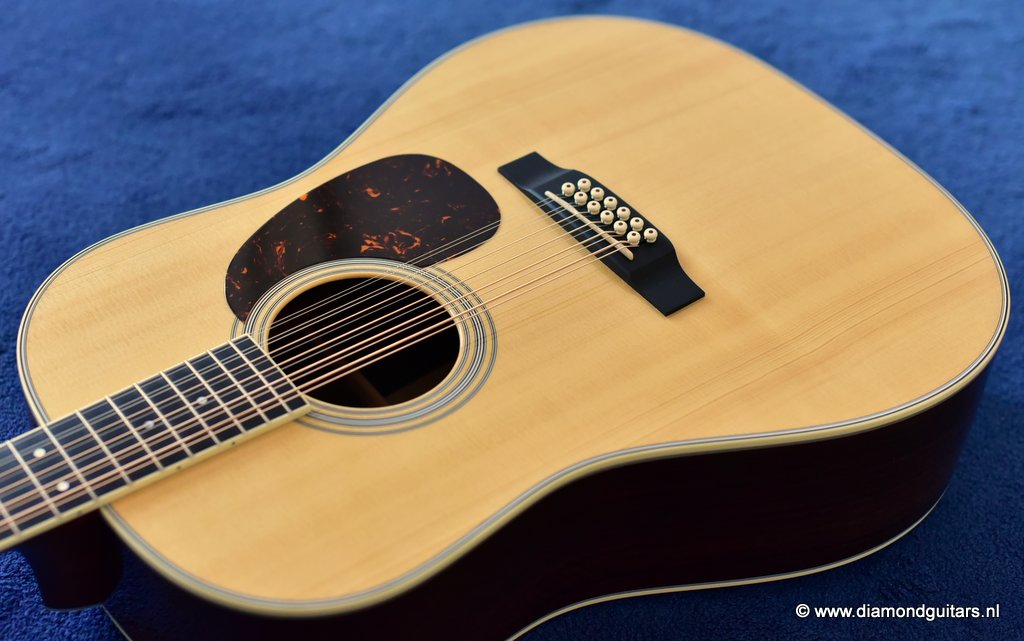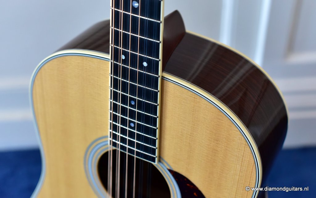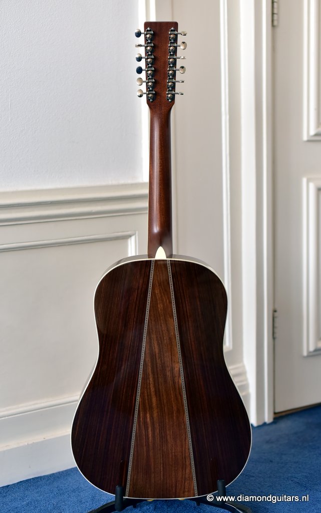 This is everything one could wish for in a Rosewood 12-string: meaty and grand . The massive sound chamber of a 12-fret dreadnought amplifies the rich harmonic complexity, with the lush rumble of Indian Rosewood topped by the bright peaks that European Spruce projects above a textured undertone. The voice is saturated by a warm and creamy glow that radiates softly. The open, responsive dynamics of the special VTS treatment provide so much definition to the notes popping off the strings, and such incredible detail down inside the busy voice, that she dares you try interesting chord voicings, just to hear them hover there in the room. The original retail price was 5.995 Euro. There are a few very minor dings on the top so I rate her condition as high excellent.