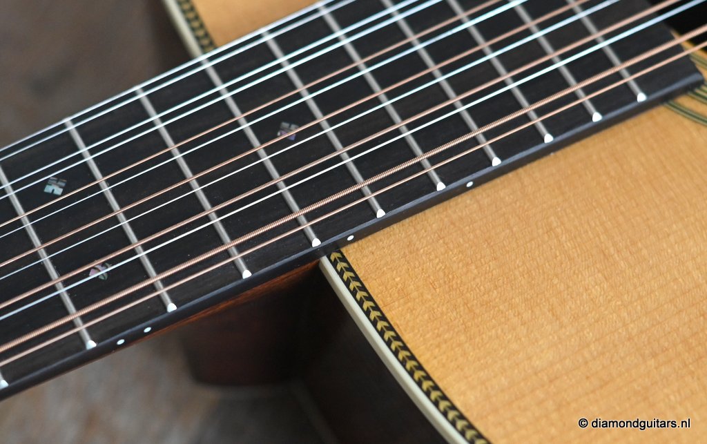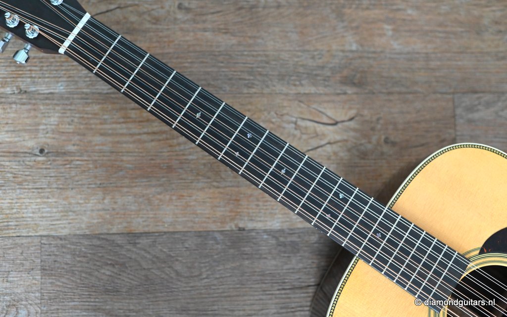 While most people generally associate the 12-string with folk music, acoustic blues on the 12-string guitar is far from rare with some of my favorite players being Leadbelly, Blind Willie McTell, and of course, Stevie Ray Vaughn. Definitely worth listening to Ritchie Sambora on his Martin 12-string in the all-time favorite ‘dead or alive‘ or one of my favorite Rush songs ‘closer to the heart‘ with a majestic-sounding arpeggio picking pattern played by guitarist Alex Lifeson on a 12-string Martin. Our luthier redid the setup to make her play like butter. Listen to a sound impression here:
