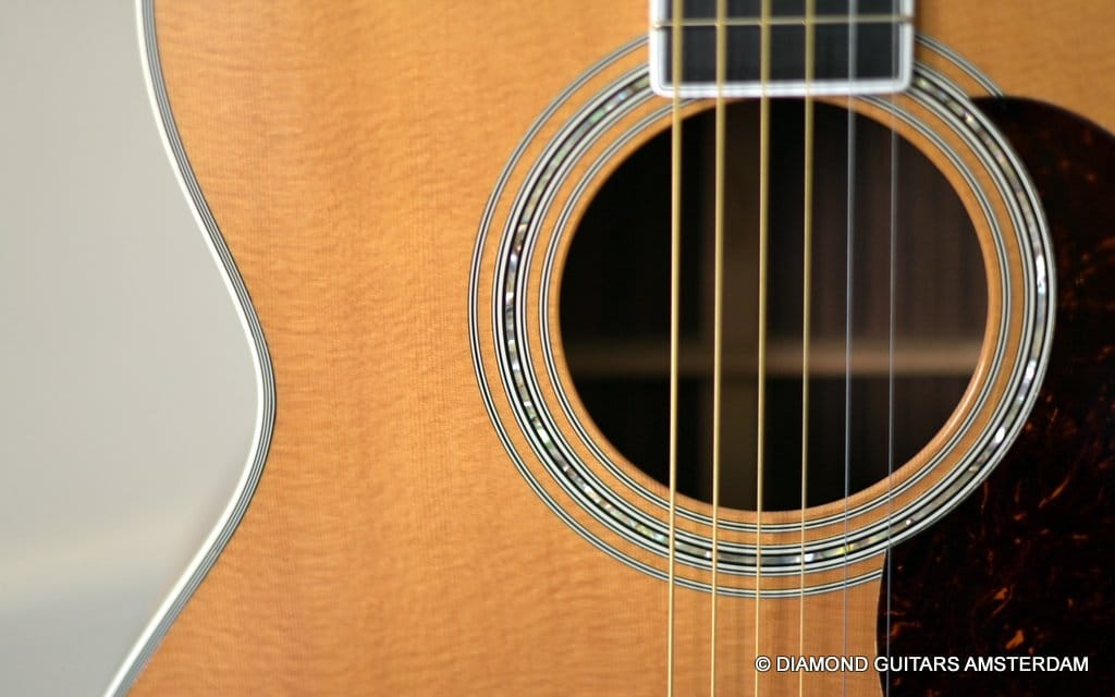 The Martin J-40 was Martin’s first design for a jumbo guitar as the next step in the great quest for more volume. She offers a lot of bass that balanced with the upper register as well.
