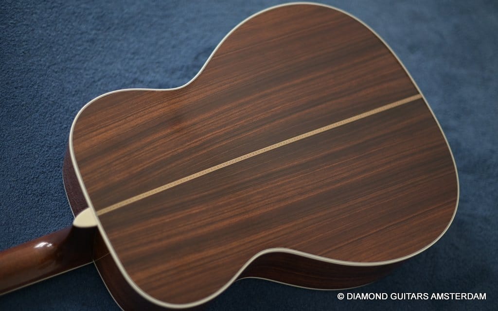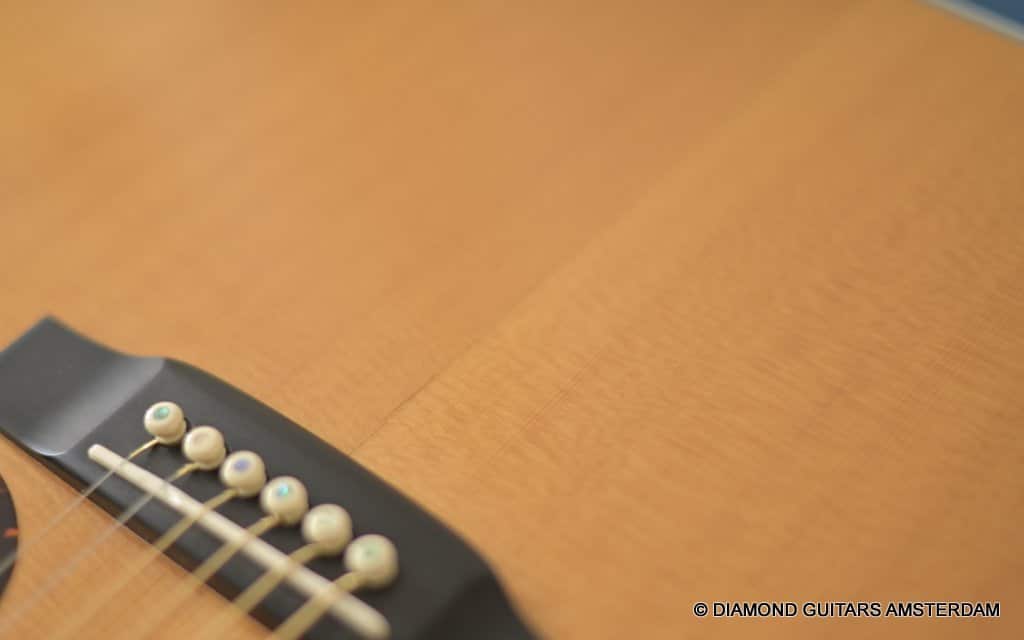 Her condition is very good. Minor play wear and one repaired centre seam top-crack. This does not – in any way – affect the tone or durability. She is a classy guitar at an easy-going price. Check out a sound impression of the beauty below: