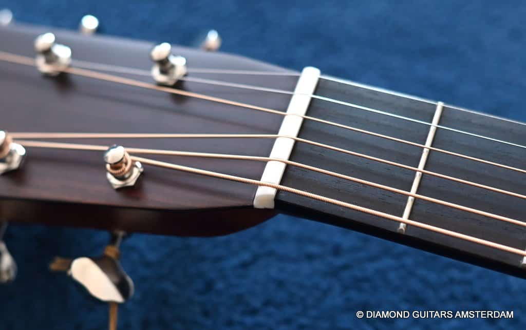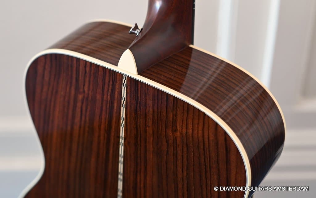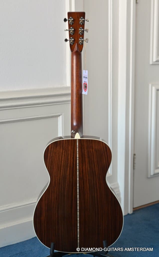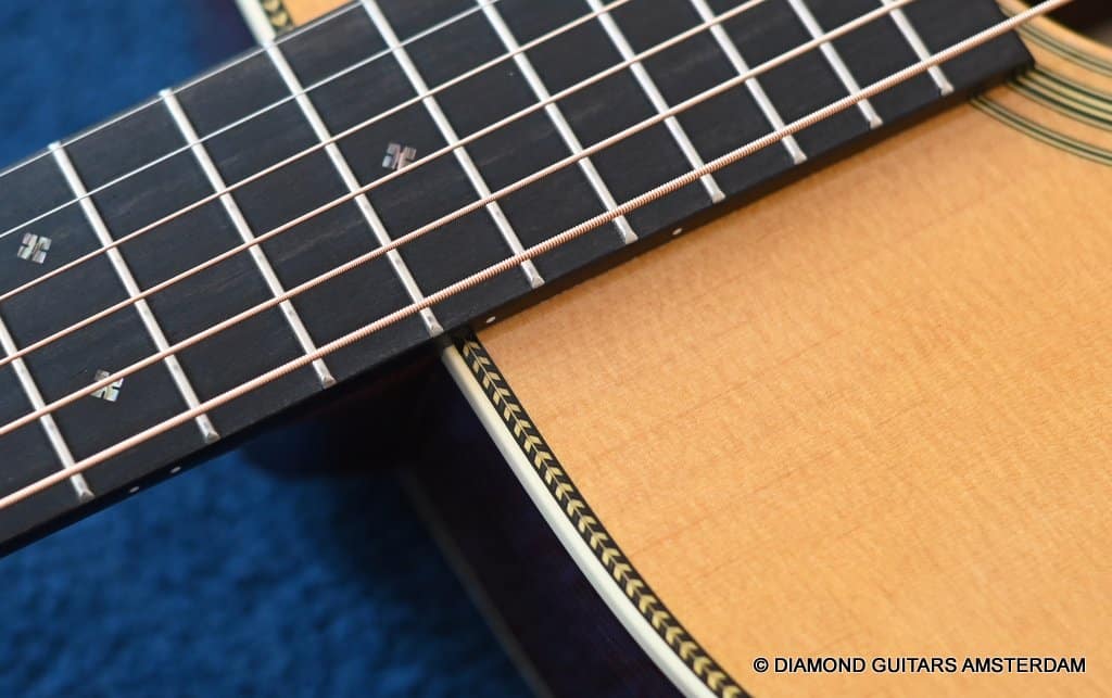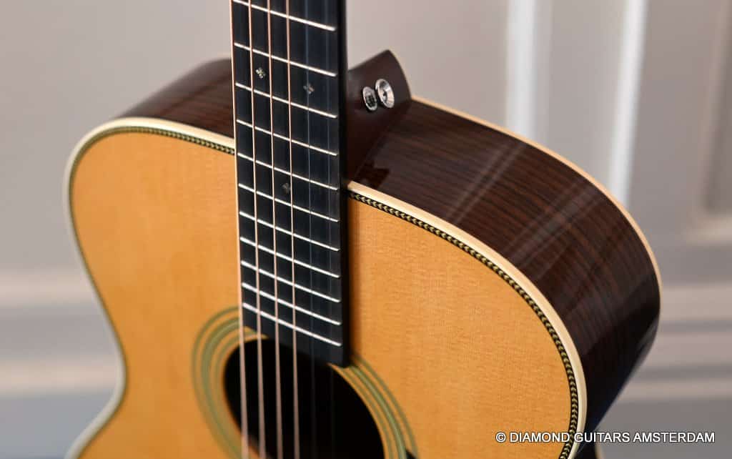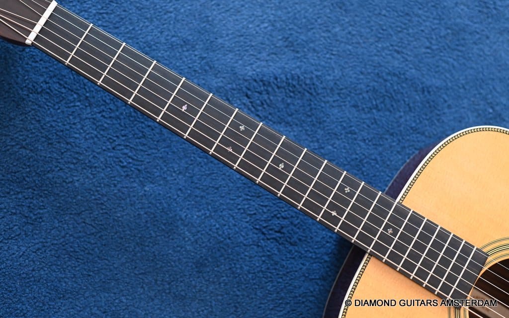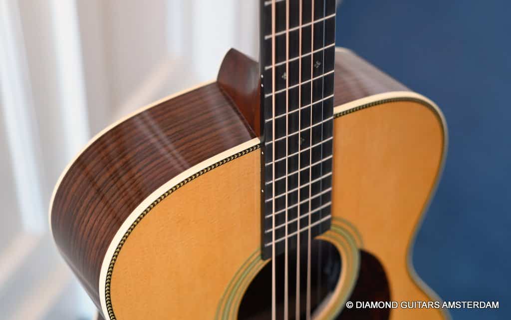 This exquisite Martin OM-28E Reimagined comes with scalloped bracing, impeccable balance and Martin’s superb Modified Low Oval with High Performance Taper neck. This neck has a fast feel, perfect for chording up and down the neck, or taking a solo in a live application. A very well-thought-out design by Martin. The longer scale provides a bit more tension under the pick hand, great for harder strumming and projection.