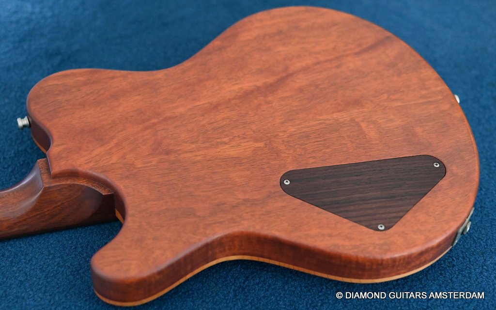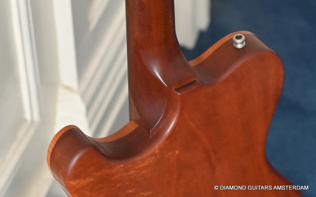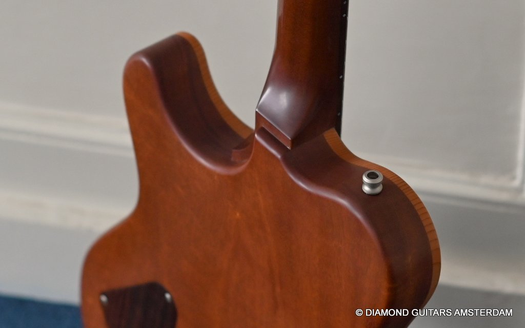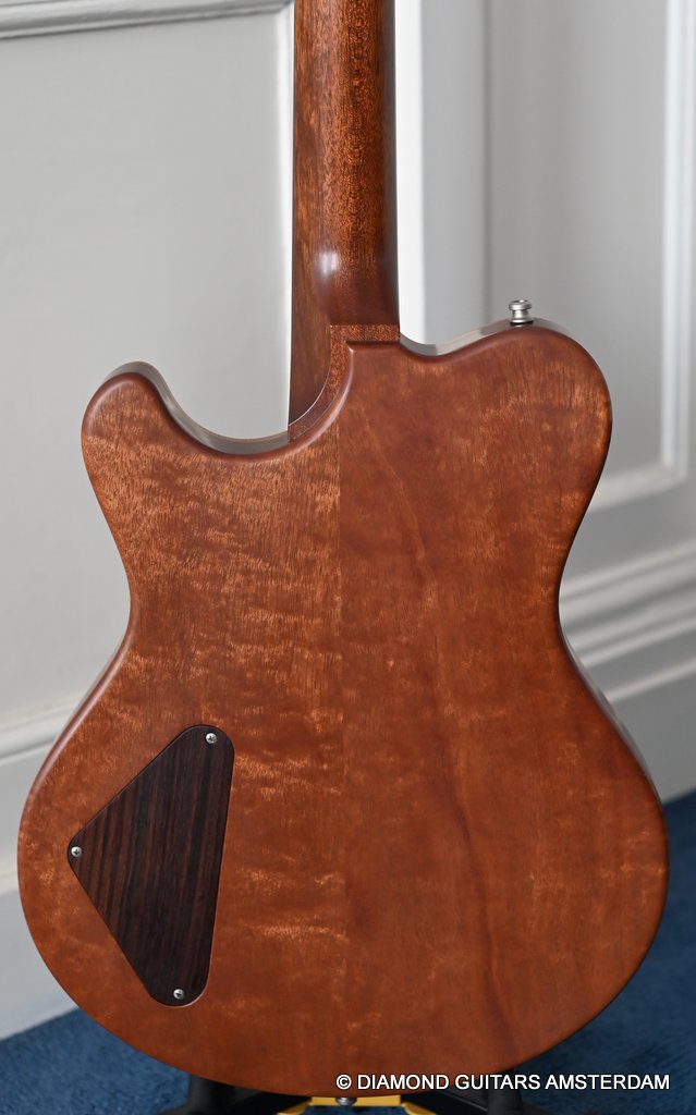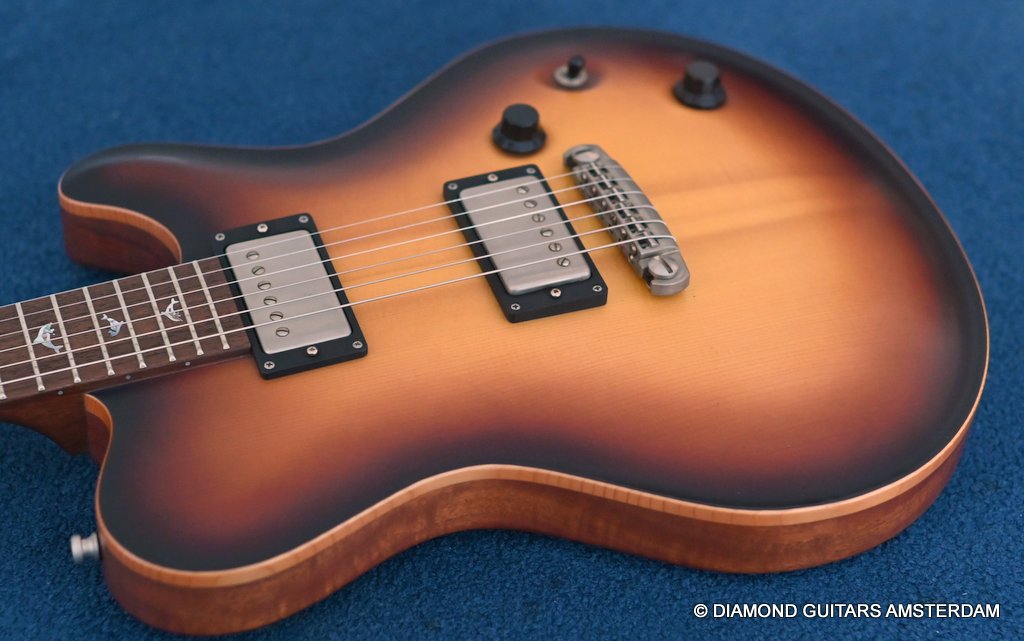 The guitar is equipped with Haussel Vin-N and Classic humbucker pickups, offering versatility through a push-pull coil-tap feature. The VIN+ Neck is equipped with a ceramic magnet and, in combination with its powerful winding, impresses with a higher-output sound that always remains clear and defined. The 1959-B offers the classic PAF sound and measures about 8.4k Ohm. Designed for stability and precision tuning, the Nik Huber Adjustable Stoptail wrap-around bridge with brass studs ensures optimal performance. Additionally, the Schaller M6 Mini tuners with Ebony buttons contribute to the guitar’s overall reliability and tuning accuracy. In summary, the Nik Huber Dolphin II is a masterfully crafted instrument that combines vintage elegance with modern functionality. With its carefully selected materials, attention to detail, and versatile features, this guitar stands out as a top-tier choice for discerning musicians seeking a high-quality and reliable instrument for their musical endeavors. She’s in near mint condition.