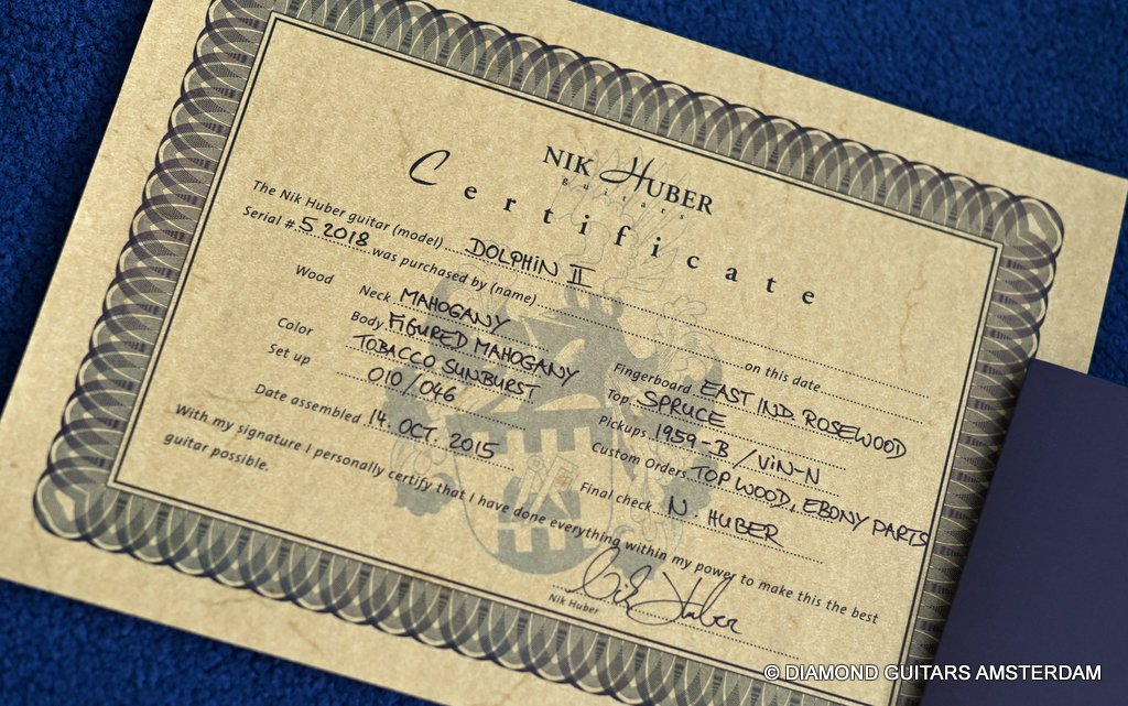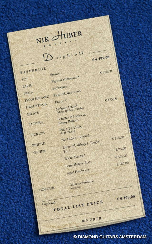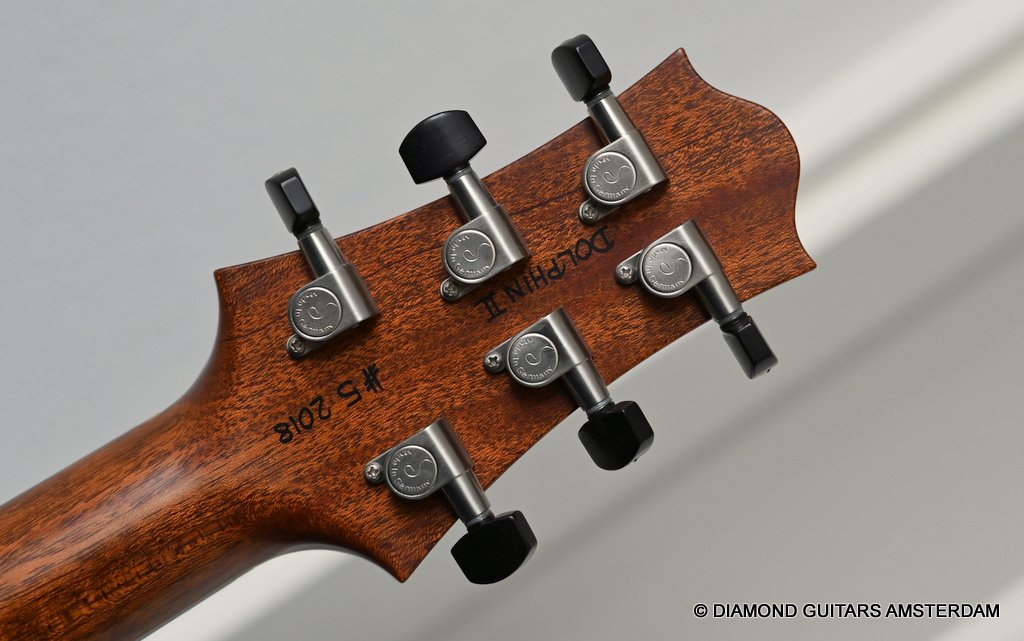 Lightweight Nik Huber Dolphin II, a meticulously crafted guitar that seamlessly merges vintage charm with modern innovation. This instrument is a testament to the marriage of artisanal craftsmanship and cutting-edge technology, making it suitable for any musical stage or showcase.