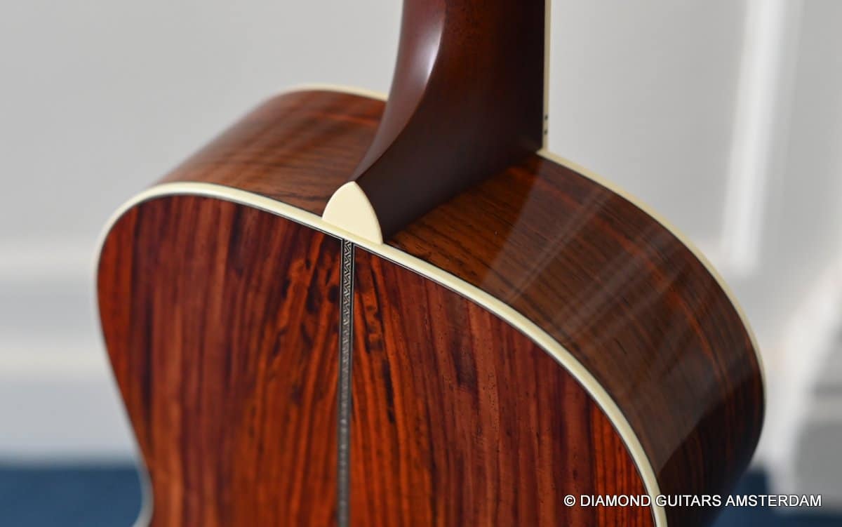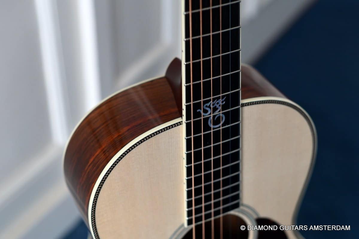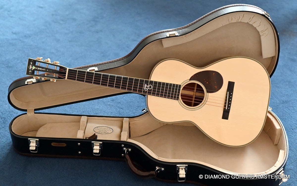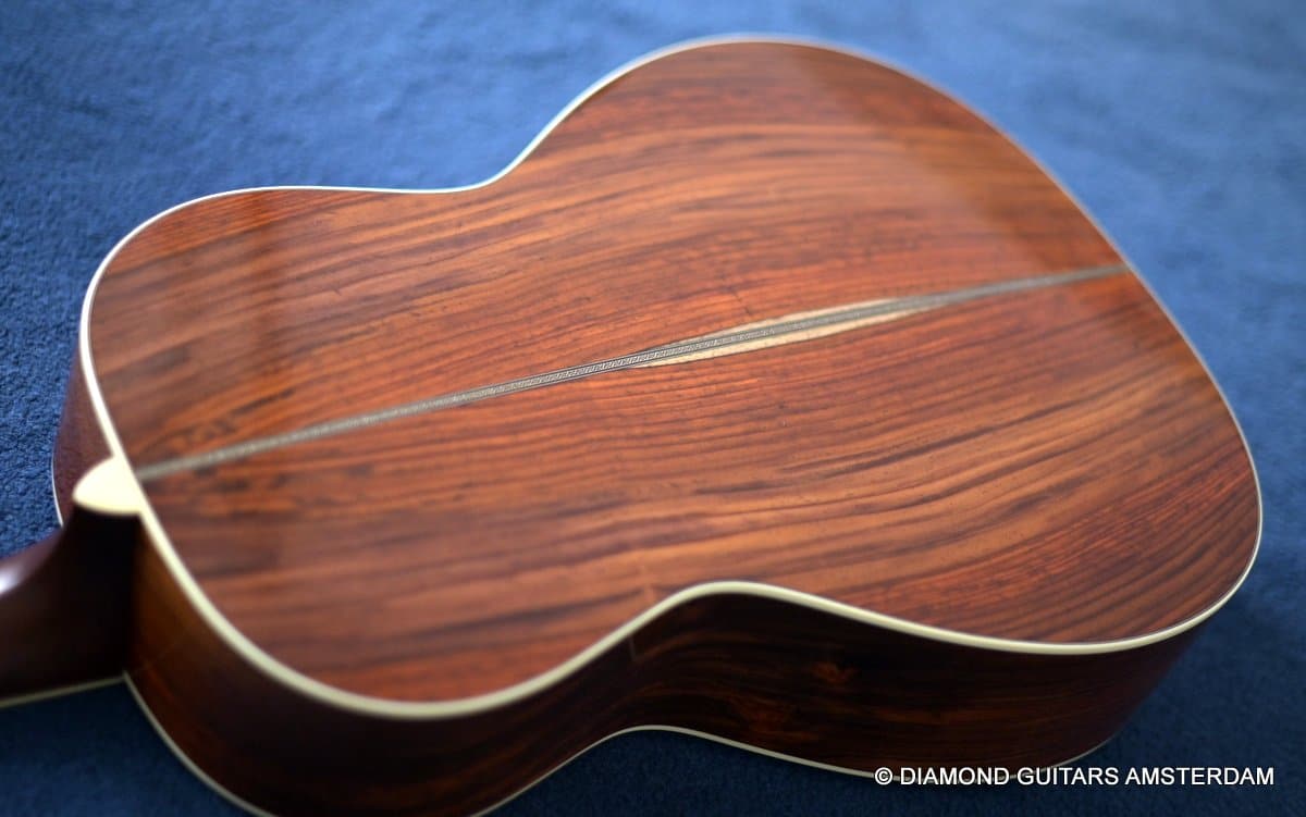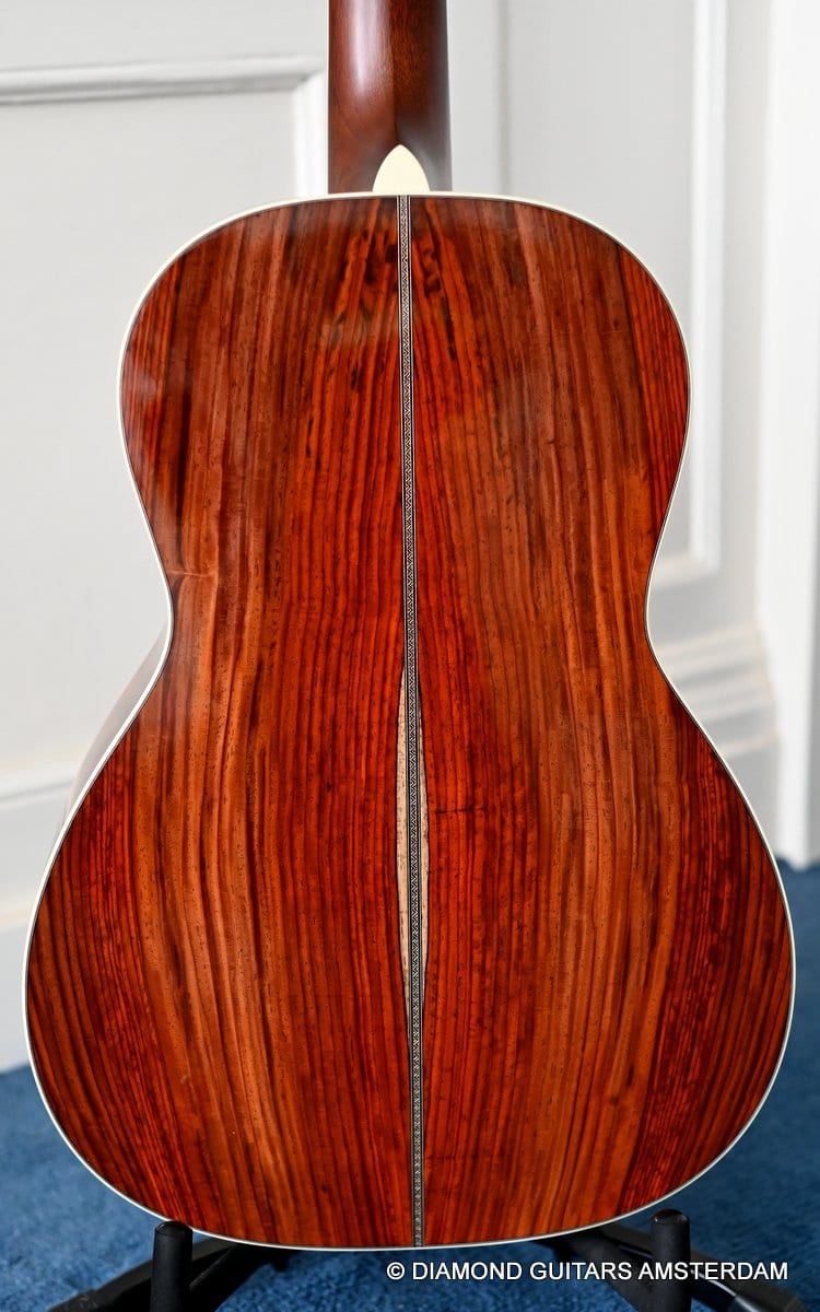This Santa Cruz 00 Custom is built with mastergrade Cocobolo combined with a mastergrade Moon Spruce top, a Honduras Mahogany neck and an Ebony fingerboard. Awesome and bold tone machine.