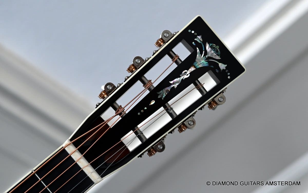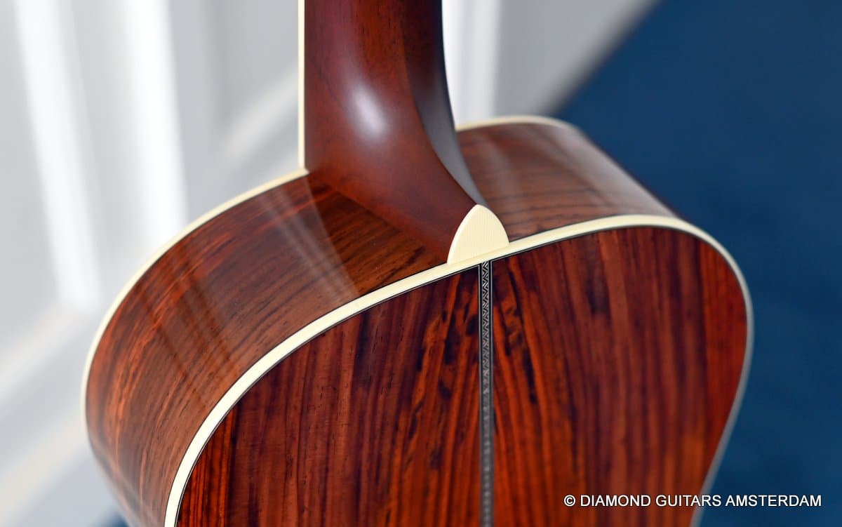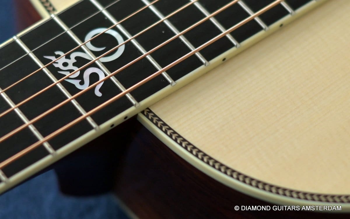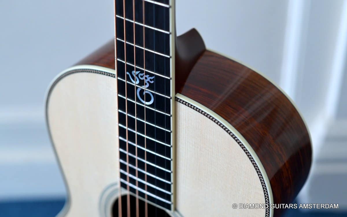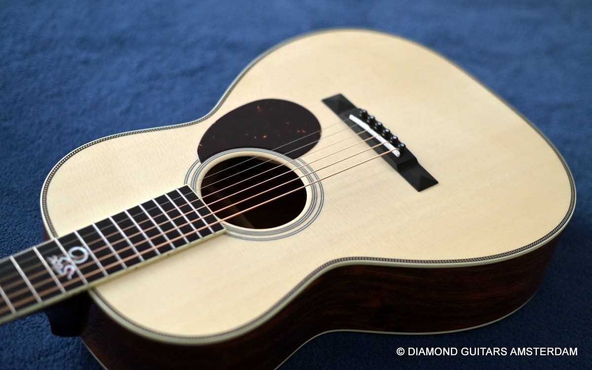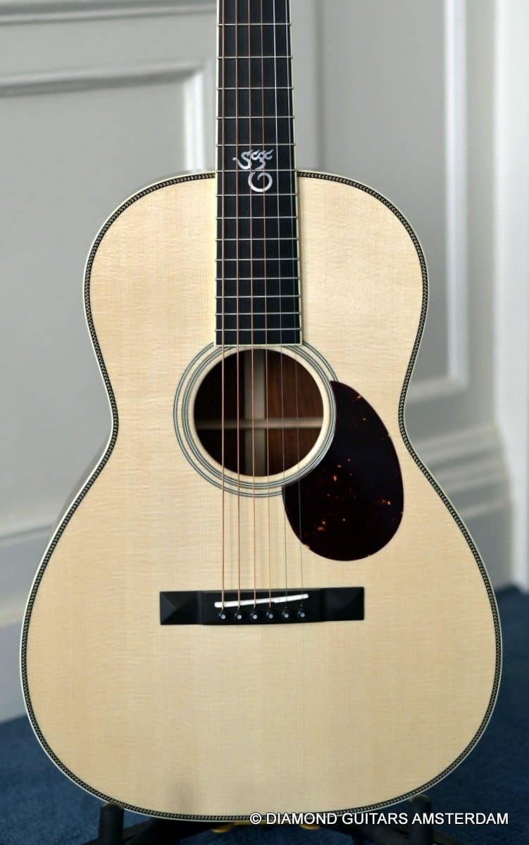 This Santa Cruz 00 Custom is built with mastergrade Cocobolo combined with a mastergrade Moon Spruce top, a Honduras Mahogany neck and an Ebony fingerboard. Awesome and bold tone machine.