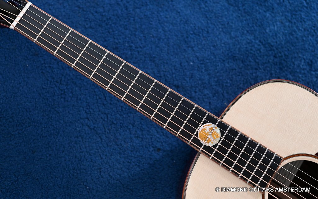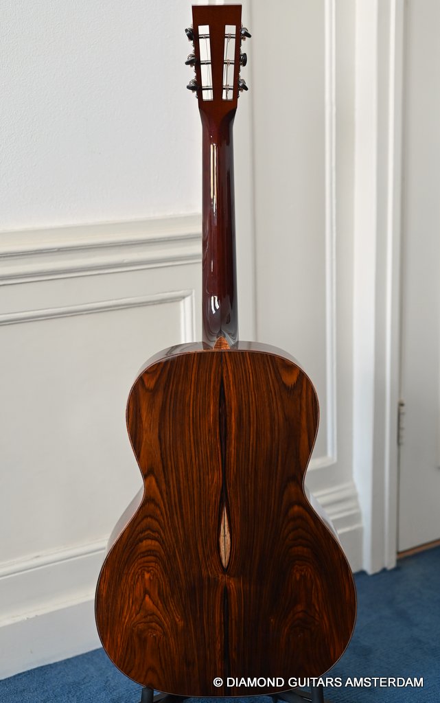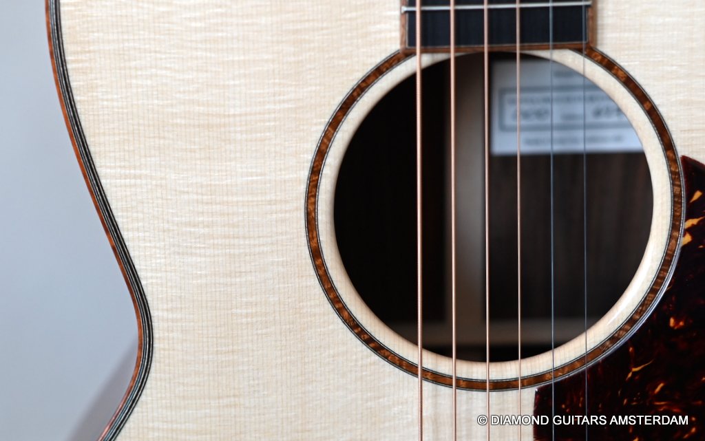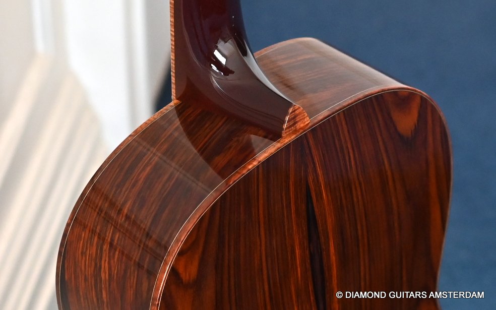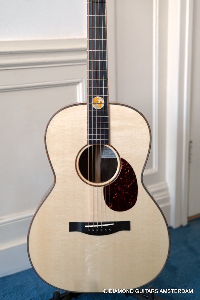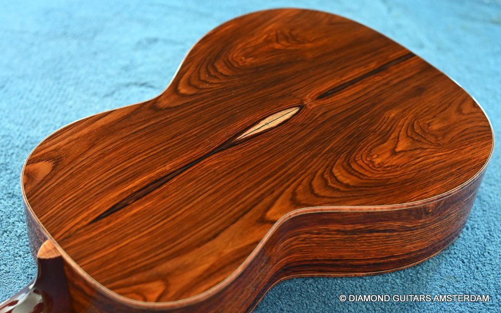 Stunning Santa Cruz 000 Custom build with mastergrade Cocobolo Moon Spruce. This time-tested 12-fret design ensures large bass response and overall volume. Ideal finger picker guitar!
