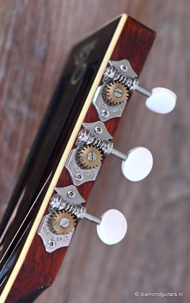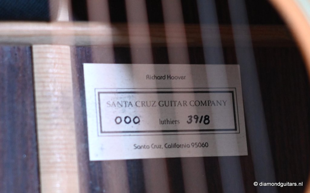 This Santa Cruz 000 12-fret is a beguiling guitar. This twelve-fret 000 concepts has a rich and complex voice, colored with beautiful overtones and expressive subtleties. It’s had a few years to open up and mature, and has become a remarkable sounding instrument with a glorious sustain and a piano-like clarity. The OOO is the 12-fret predecessor of the OM. If access past the 12th fret is of no concern, the OOO adds some distinct advantages tonally and cosmetically. The extension of the body to the 12th fret adds additional airspace, which translates into increased sound volume and a more predominate bass in the EQ. The slotted peghead is a standard feature that adds classic styling. The peghead reduces mass and accentuates the guitar’s open, airy ambiance, making it a fingerstyle favorite.