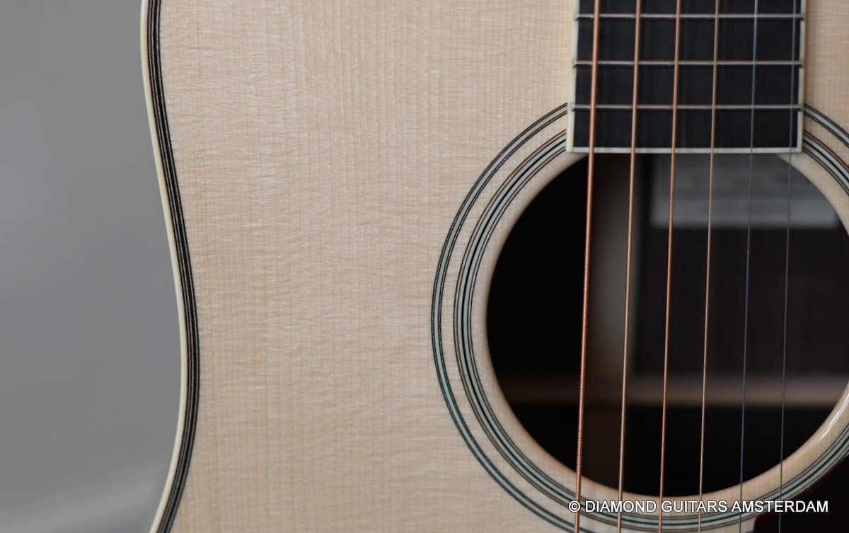 Bold Santa Cruz D Custom with a unique tapered bracing in order to emphasize the mid-range and treble. The result is a more balanced and open dreadnought guitar with equal volume and response across the strings.
