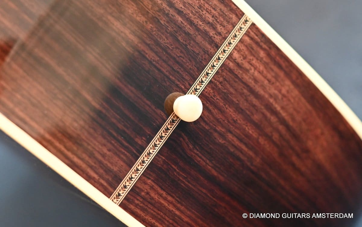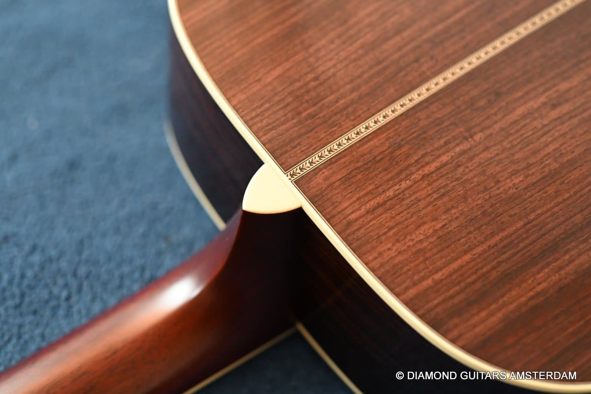 This Santa Cruz D is build with mastergrade East Indian Rosewood and Adirondack Red Spruce for the top. The Santa Cruz D Model has a unique tapered bracing, voiced to enhance the midrange and treble without compromising the bass volume. While this body size has always been known for its power and bass response, but has rarely been called balanced. Santa Cruz set out to change that, specifically designing their bracing to enhance treble and mids while still maintaining the bass response players rely on. This voicing gives this bold D a more even balance and a greater versatility than traditionally braced dreadnoughts. The SCGC D was carefully conceived to accommodate the modern player’s need for sophisticated balance with more substance in midrange and treble.