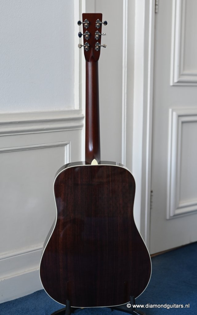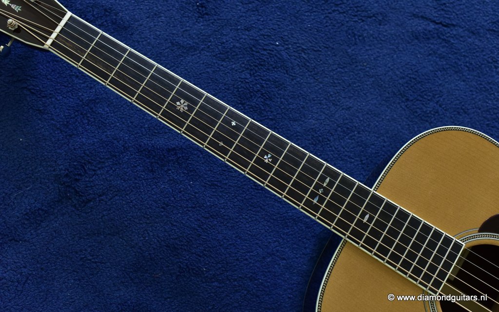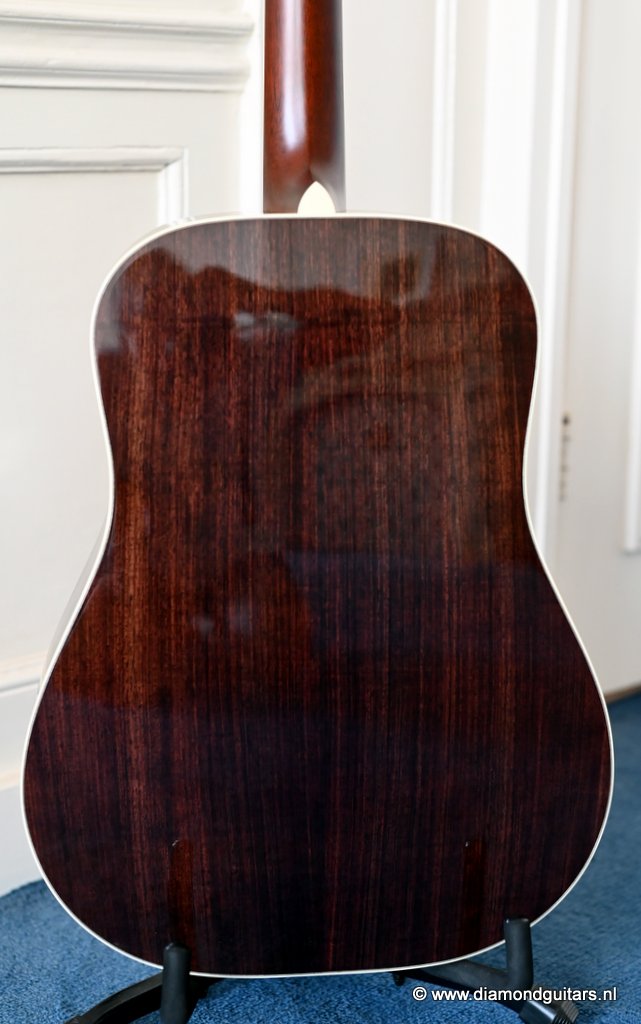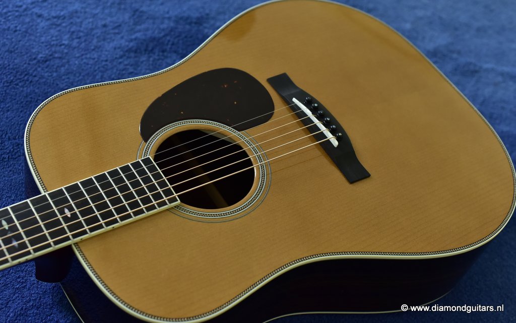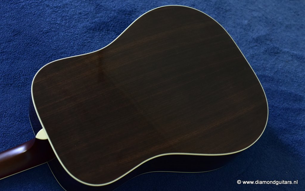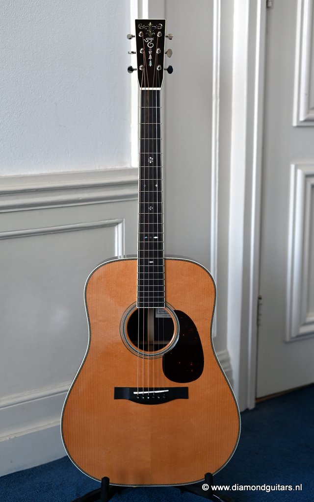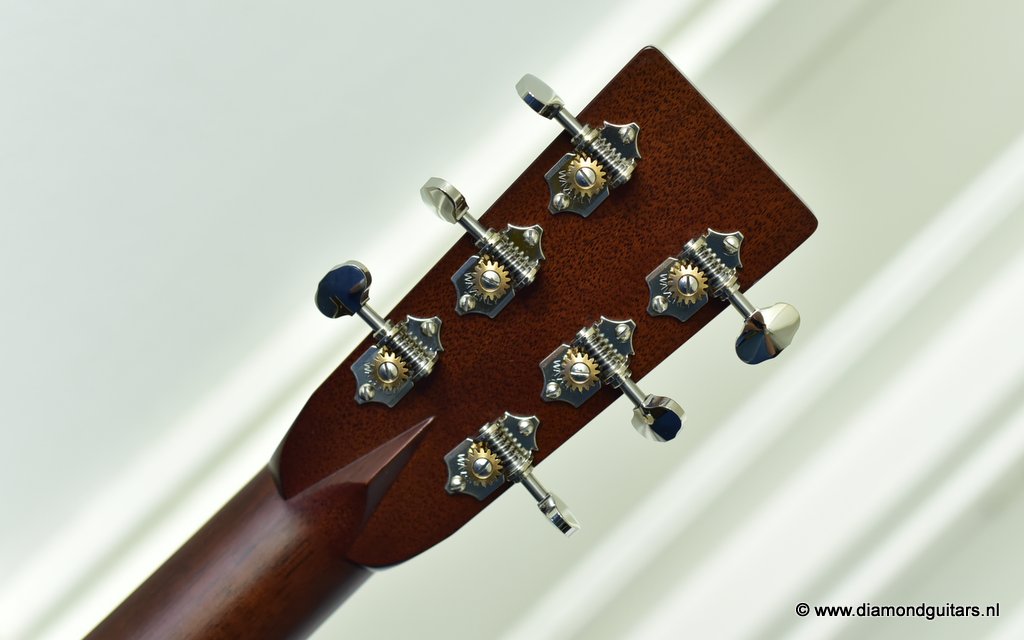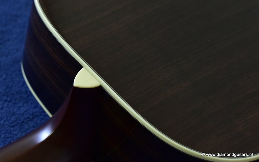 This Santa Cruz D/PW is build with mastergrade East Indian Rosewood and Adirondack Red Spruce for the top. She presents tasty appointments to emphasize master grade quality materials, tone and workmanship. Everything in this guitar is focused on to ton, tone and then some more tone. We also felt it is justified to add two classic pre war design options: the abalone torch on hte headstock and the style 42 fingerboard inlay. Because I could and I love the craftsmanship and the looks. You?