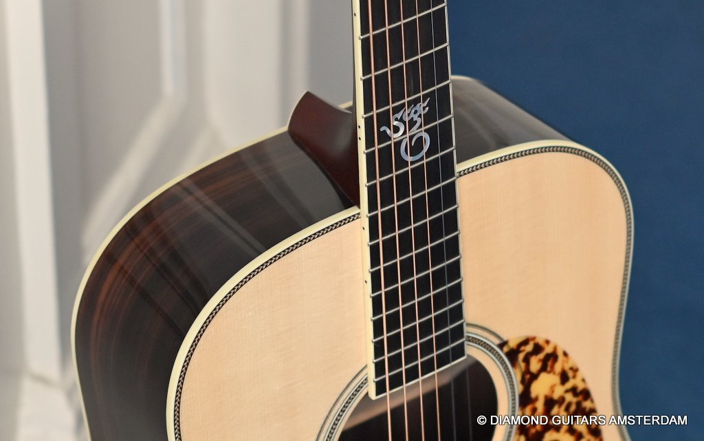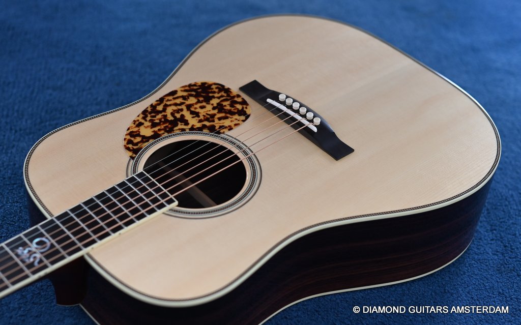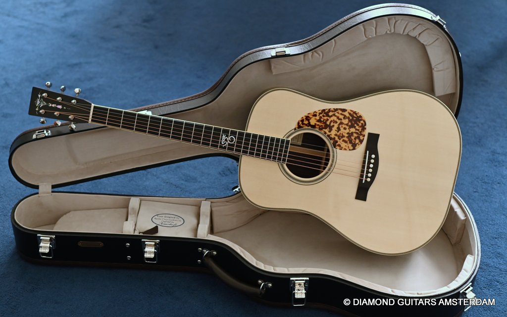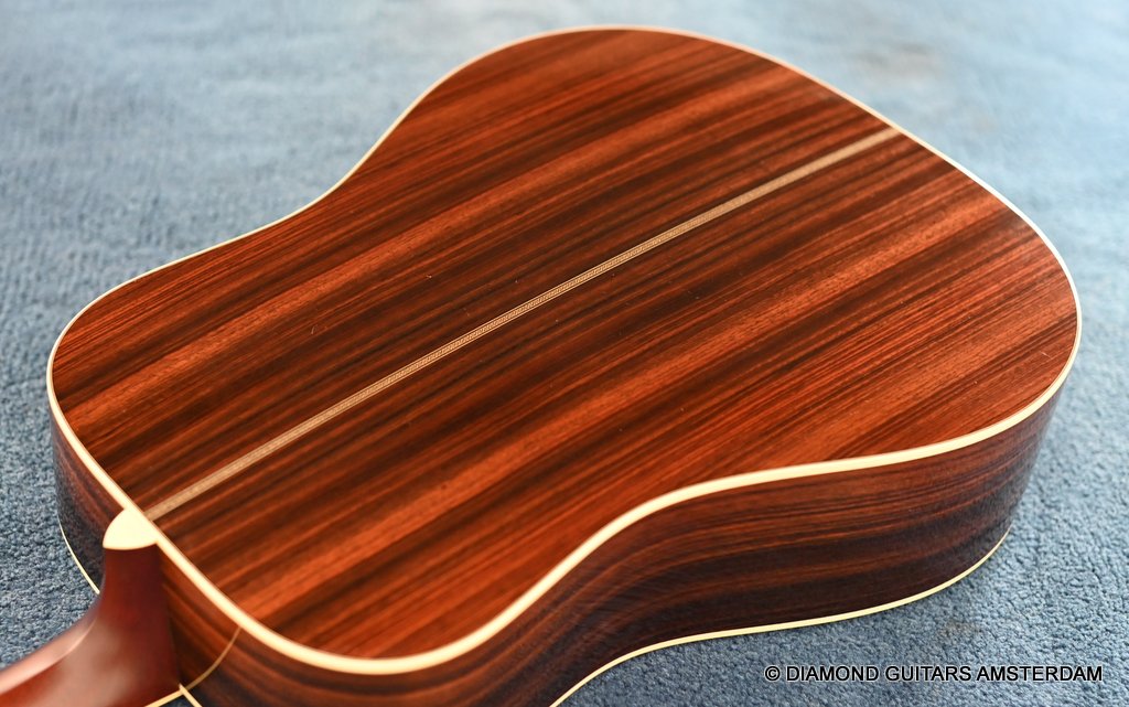 Bold Santa Cruz D Tony Rice Signature build with Indian Rosewood and mastergrade European Red Spruce. The ultimate D for the contemporary flatpicking artist.