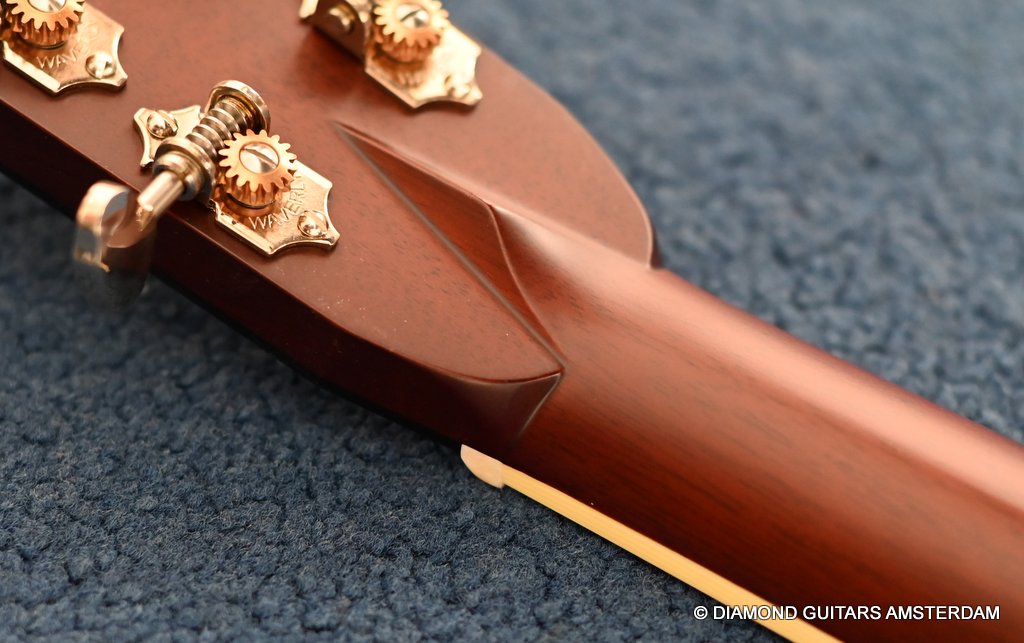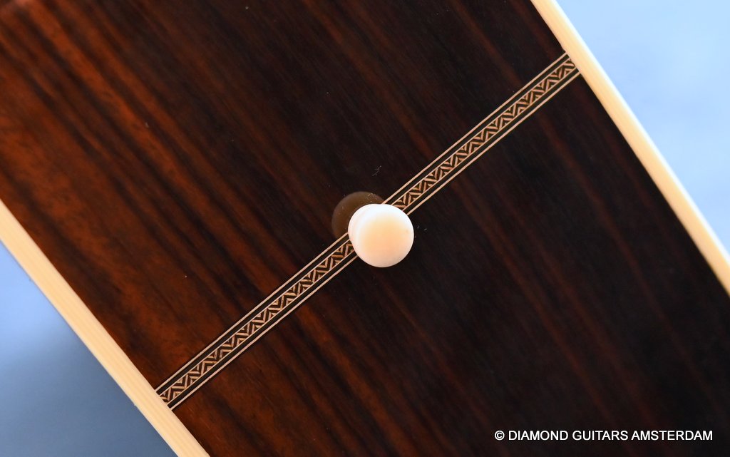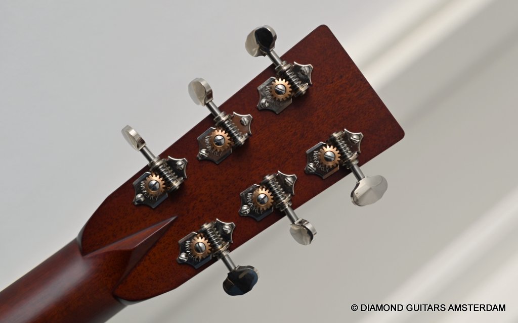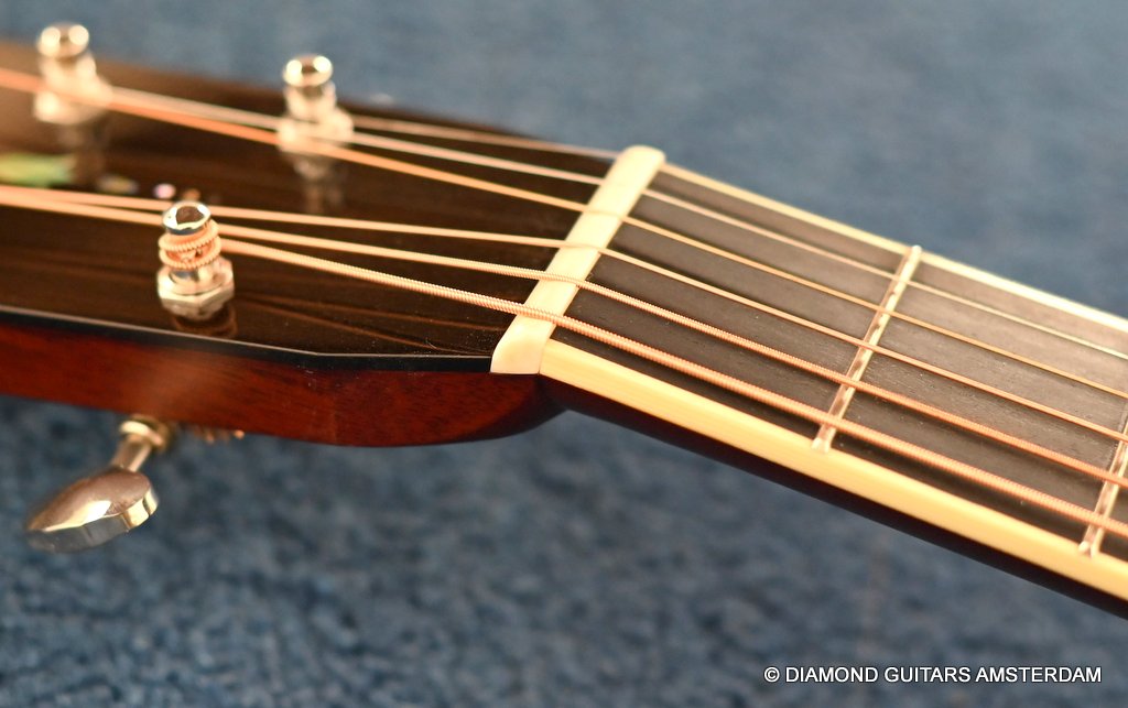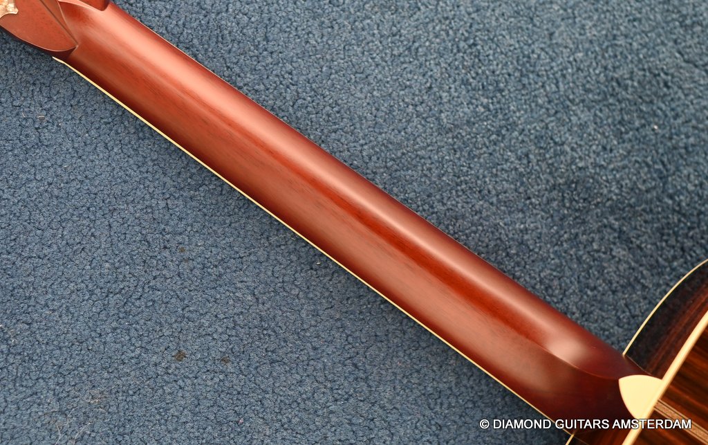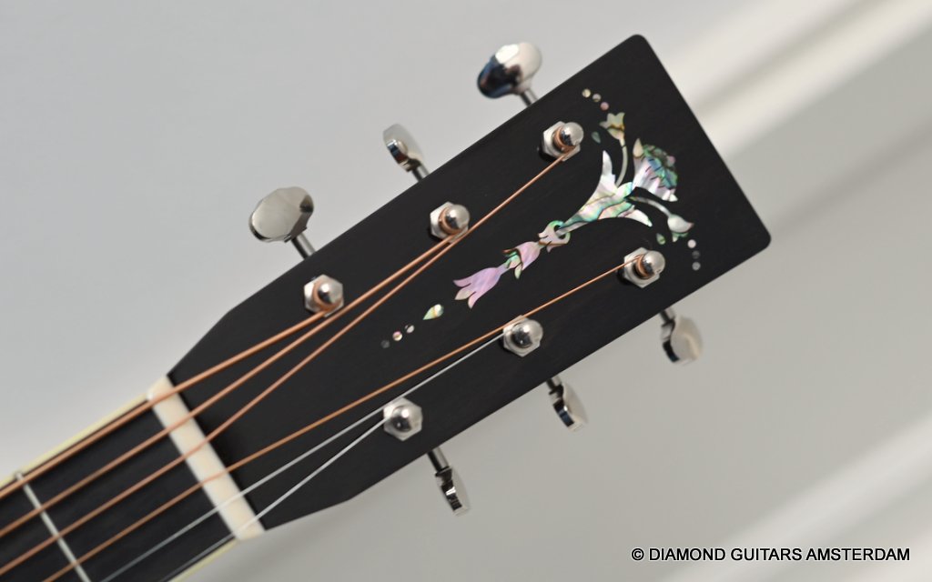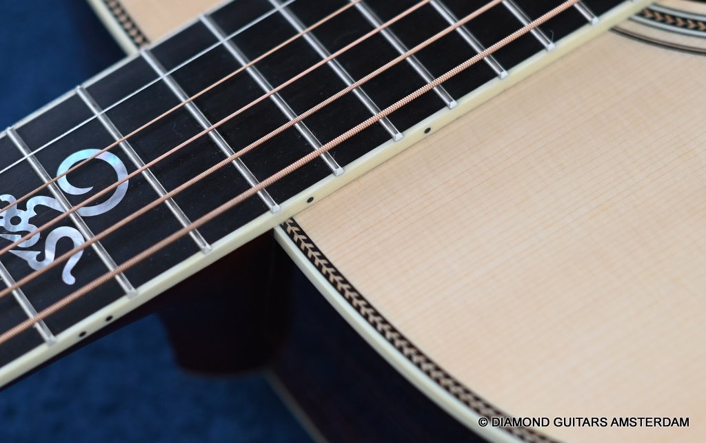 Upgraded with an Abalone torch in the headstock and an enlarged soundhole, this D stands out! Never intended to be a copy of Mr. Rice’s iconic 1935 Martin D-28, the TR Model is voiced to showcase his stellar lead work, with influences from Clarence White to John Coltrane. This guitar delivers exactly what the contemporary flatpicking artist needs: substantial treble and midrange for rapid single-line lead, clean note separation for definition and the traditional bass boom without the woofy bottom end of some of the venerable Pre-war dreadnoughts. Master grade Indian Rosewood and old German Spruce give this instrument a professional presence and tone. You might want to watch Molly Tuttle giving an introduction to Tony’s style by explaining his Church Street Blues HERE. She’s in near mint condition. Listen to a sound sample by Manos Ploumidis here: